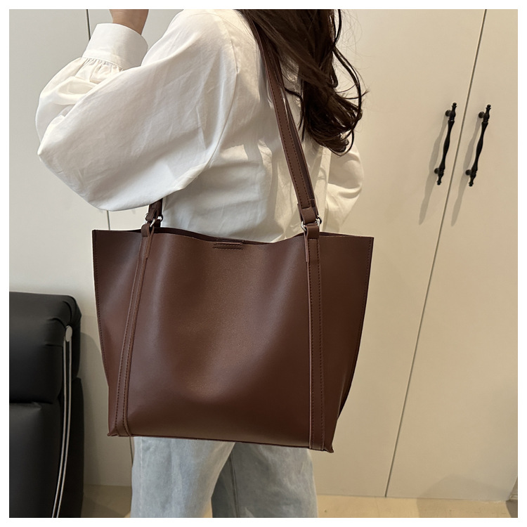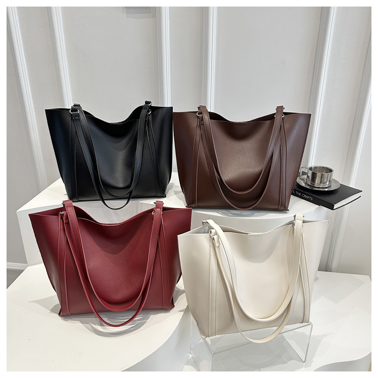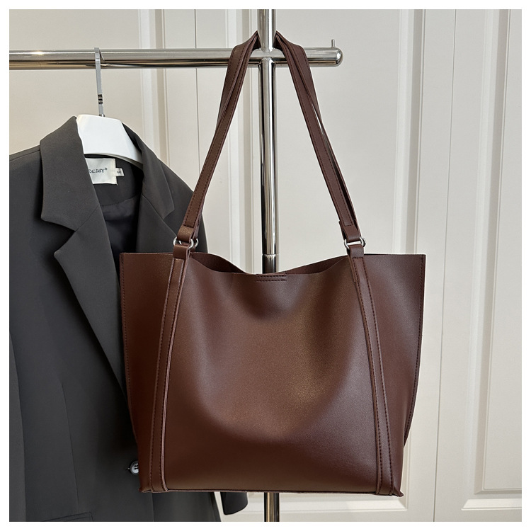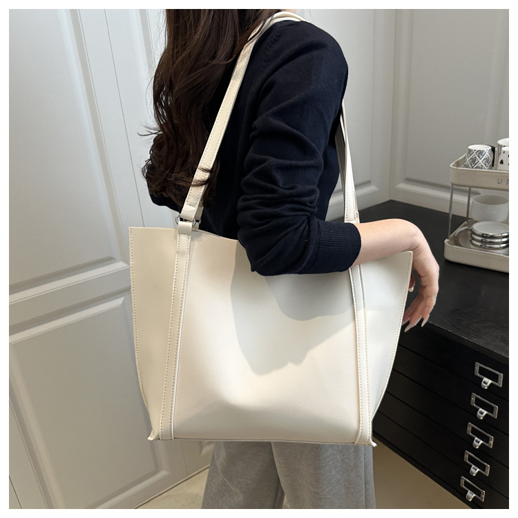 솔리드 컬러 대용량 여성용 토트 백 2025 새로운 패션 레트로 올 매치 매일 출근 어깨 언더암 가방스토어 가기