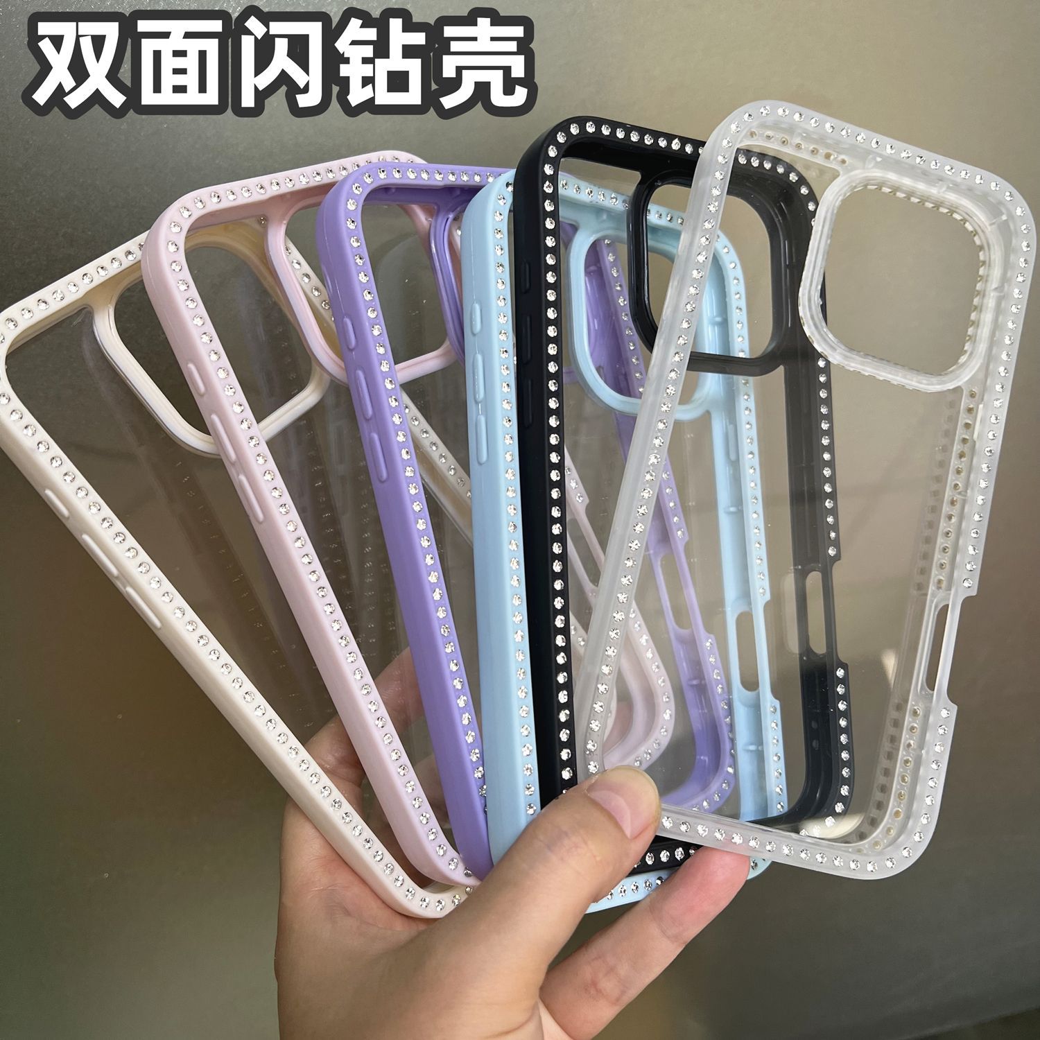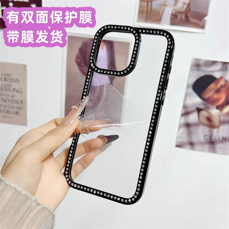 Apple 17promax 양면 스타 다이아몬드 휴대 전화 케이스에 적합 16PRO/15 그루브 케이스 양면 포인트 다이아몬드 케이스 여성용 깨진 다이아몬드스토어 가기