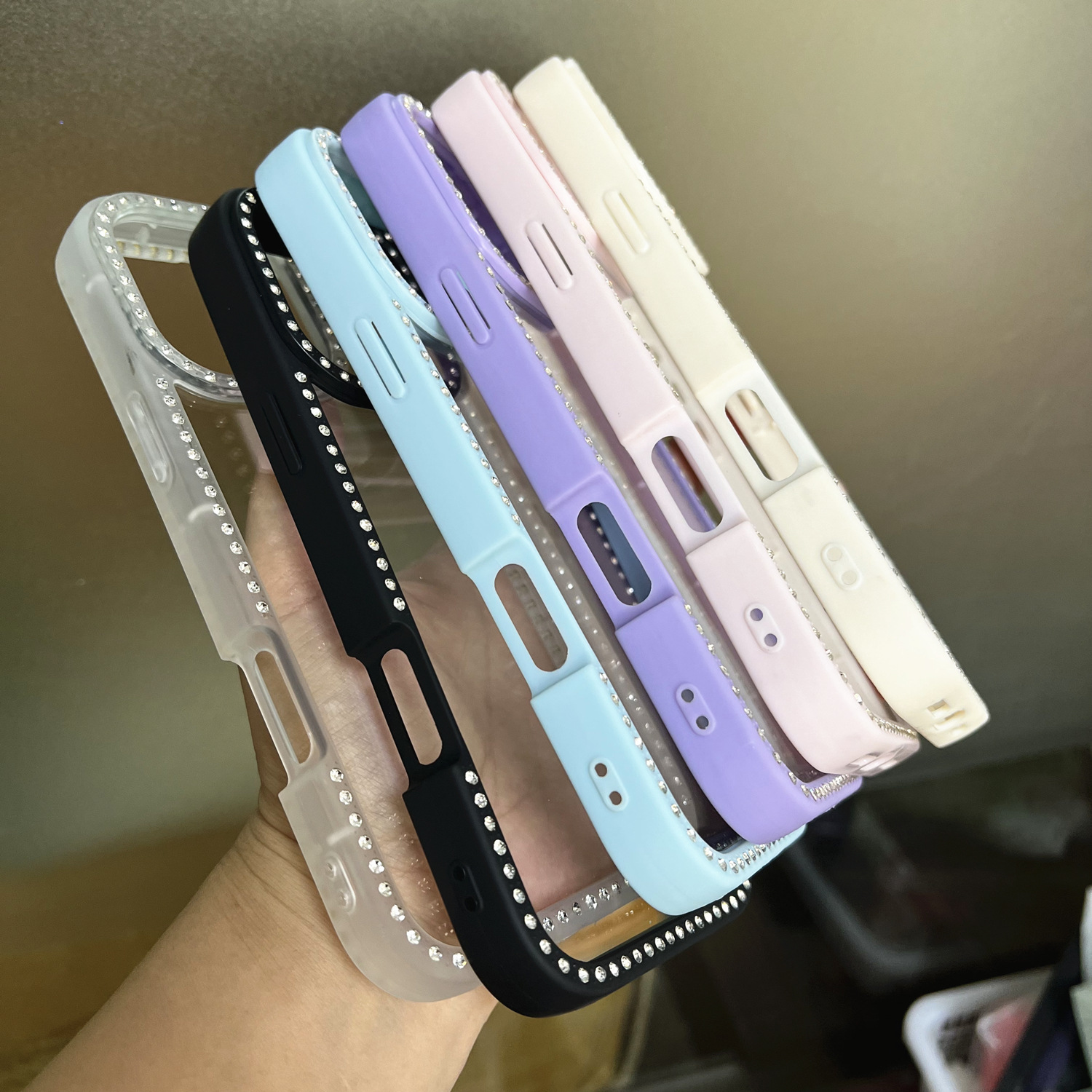 Apple 17promax 양면 스타 다이아몬드 휴대 전화 케이스에 적합 16PRO/15 그루브 케이스 양면 포인트 다이아몬드 케이스 여성용 깨진 다이아몬드