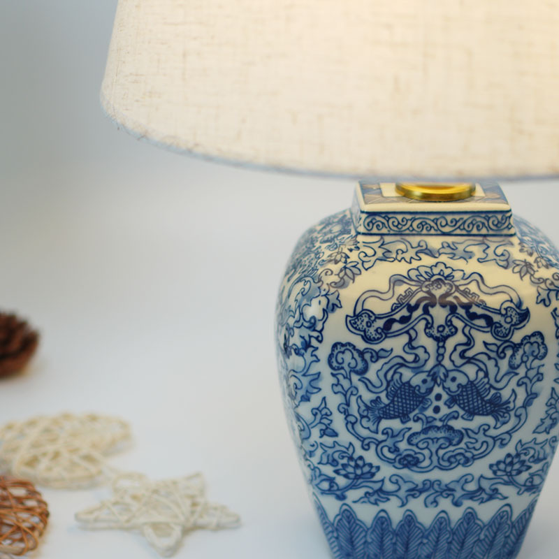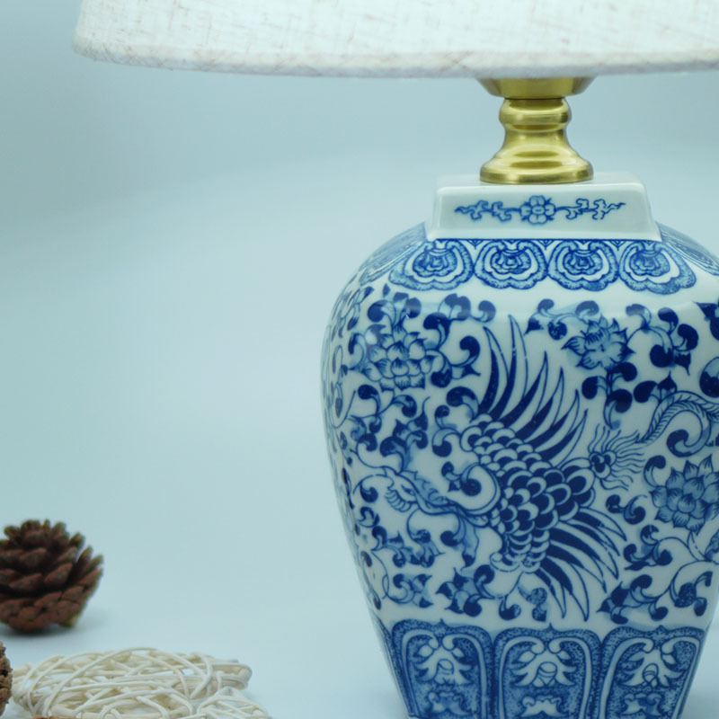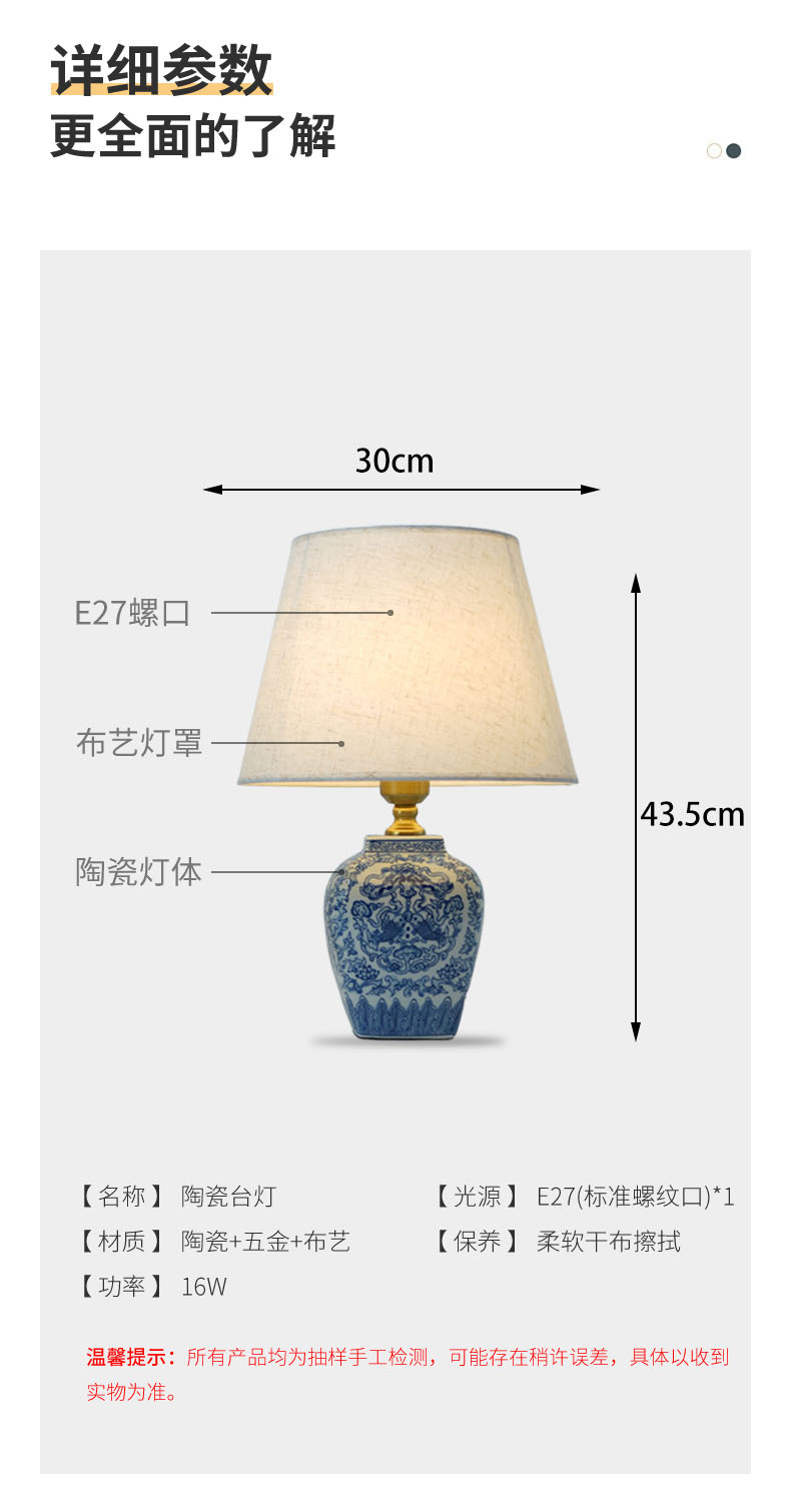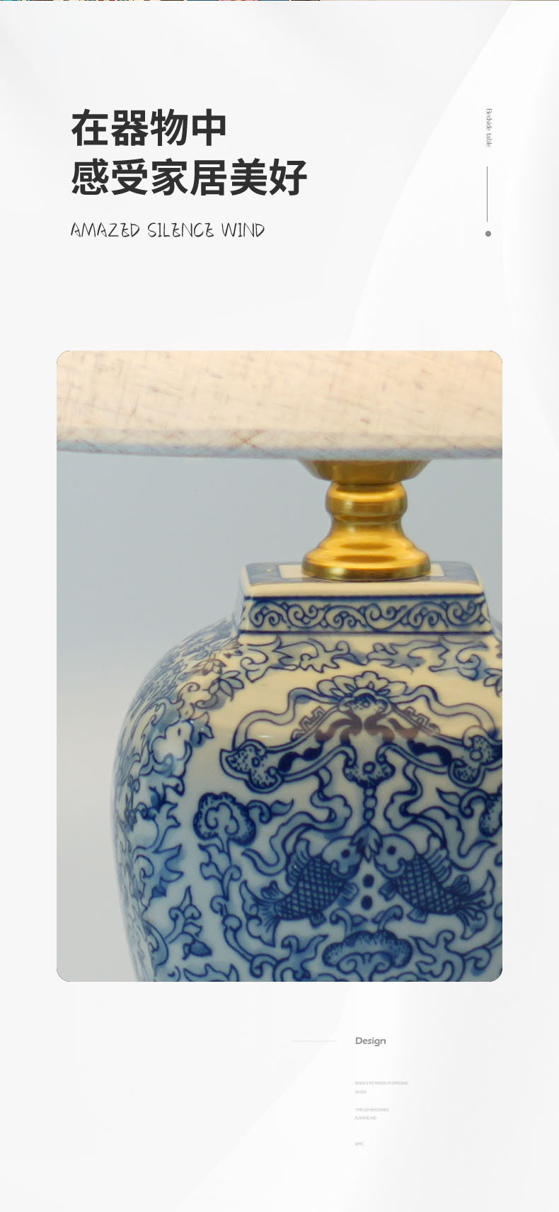 경덕진 세라믹 테이블 램프 파란색과 흰색 도자기 중국 고대 우아한 작은 침실 머리맡 3 색 따뜻한 램프 야간 조명스토어 가기