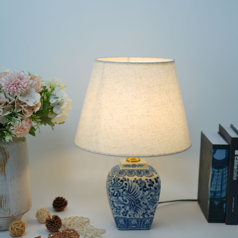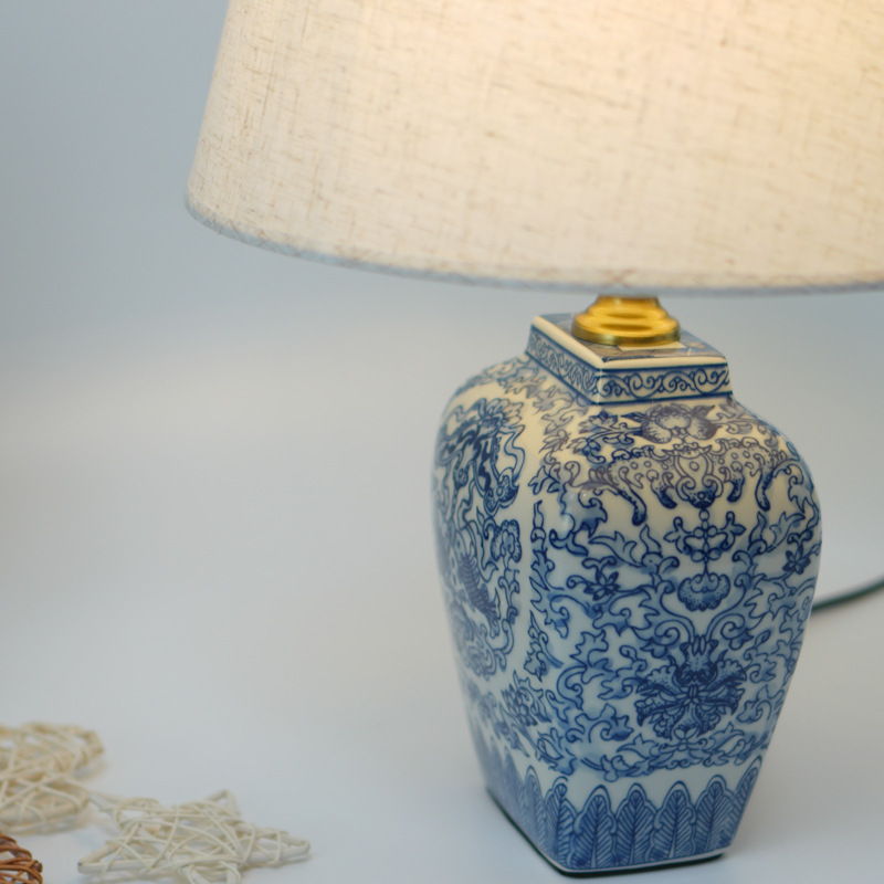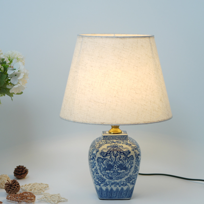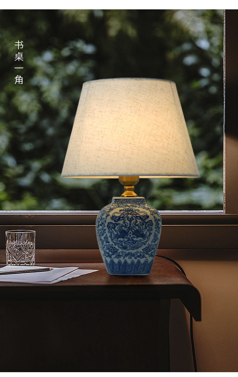경덕진 세라믹 테이블 램프 파란색과 흰색 도자기 중국 고대 우아한 작은 침실 머리맡 3 색 따뜻한 램프 야간 조명