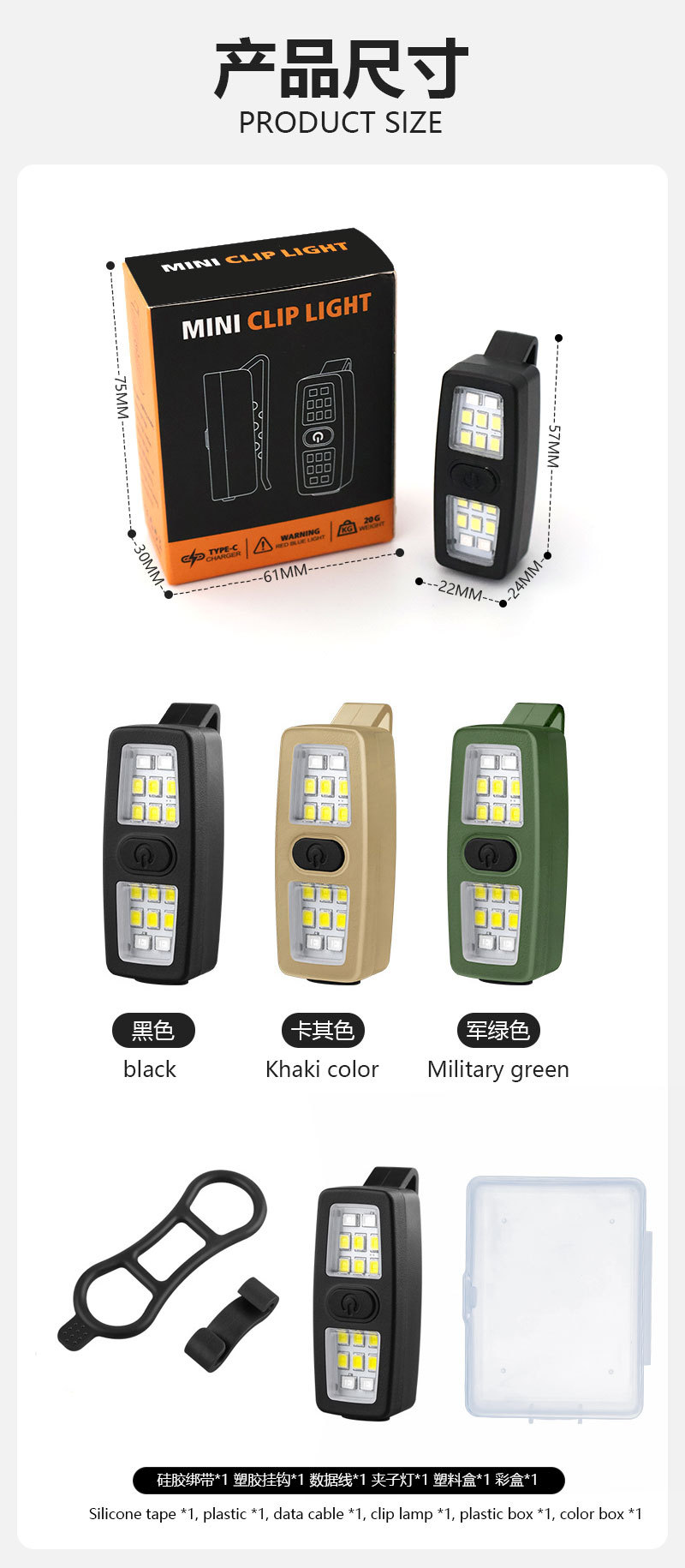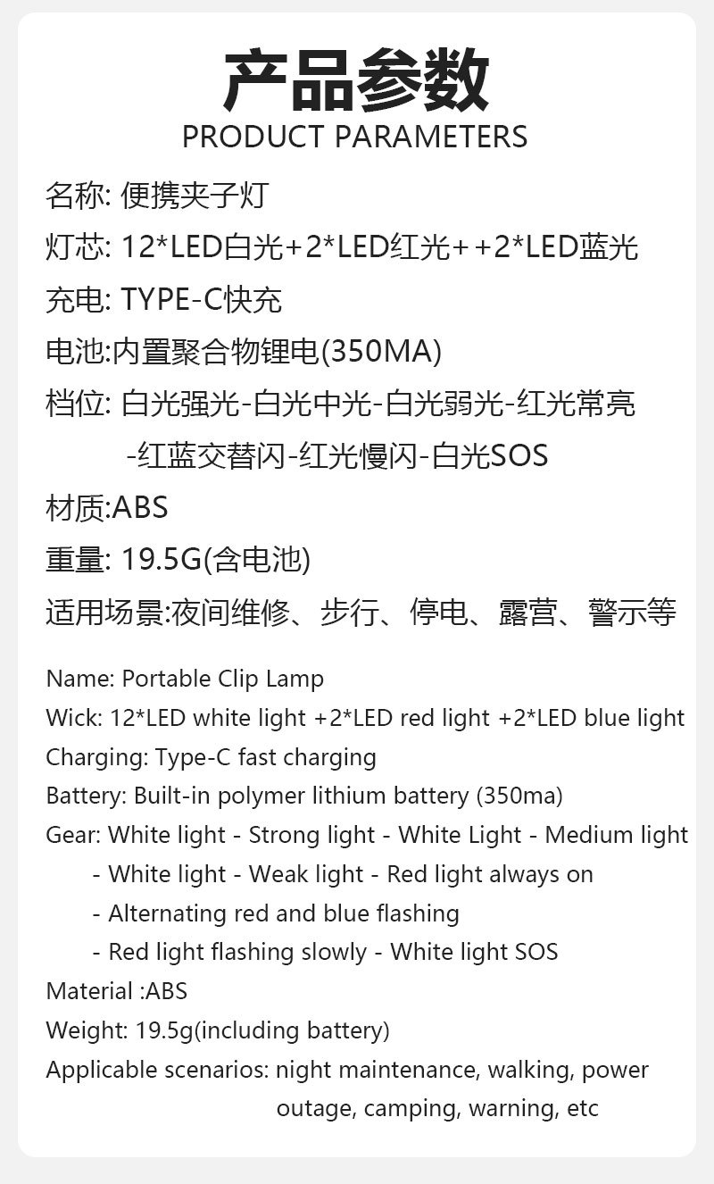새로운 야외 캠핑 라이트, 초경량 경고 안전 LED 플래시 라이트, 야외 휴대용 다기능 클립 라이트