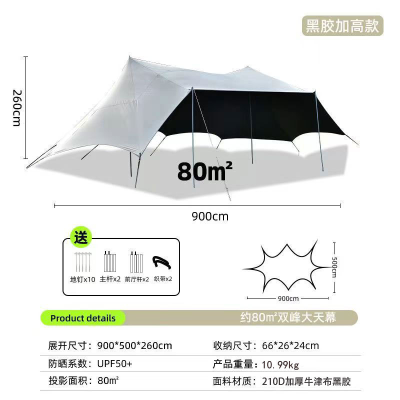 Yuhan 야외 캐노피 캠핑 텐트 검정색 비닐 완전 차광 천막 실버 코팅 태양 보호 및 비 보호 캠핑 세트