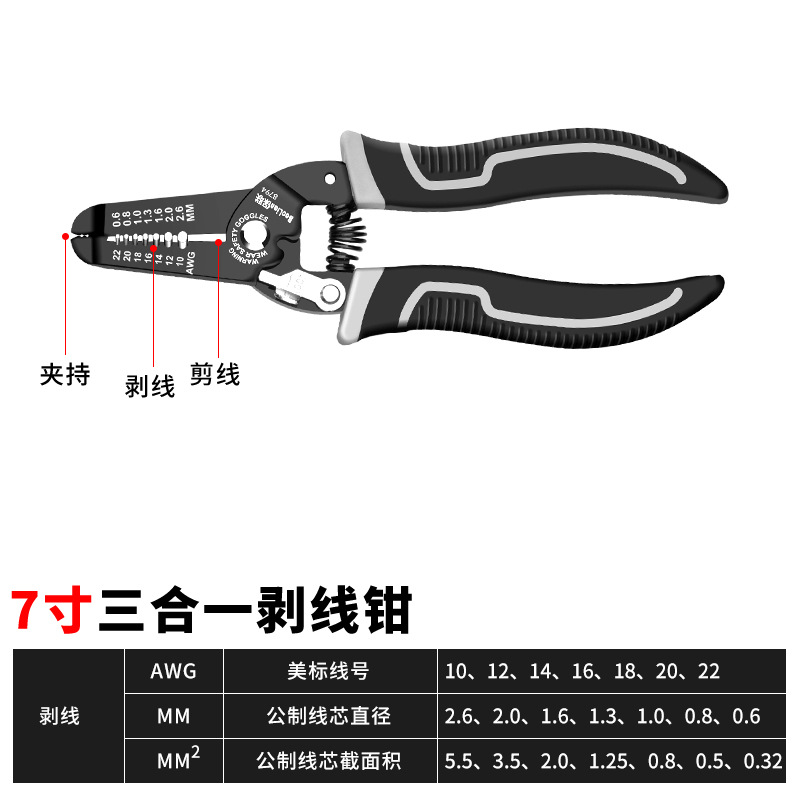 • 다기능 와이어 스트리핑 및 압착 펜치 7inch