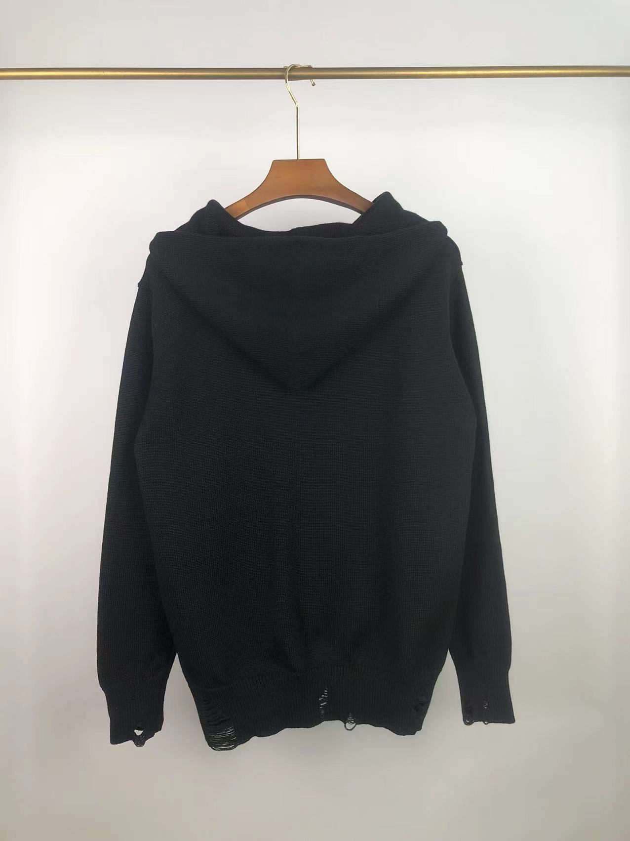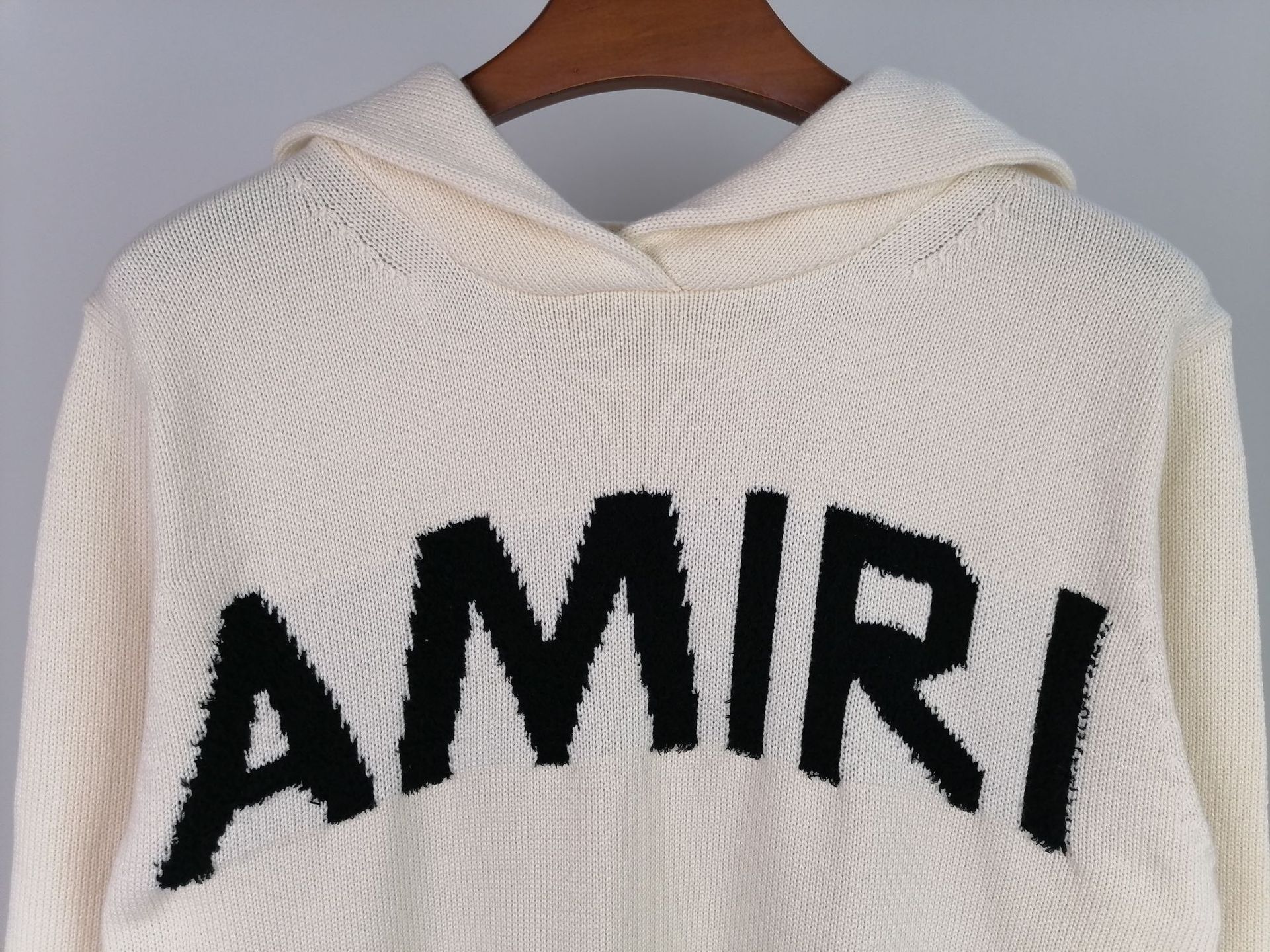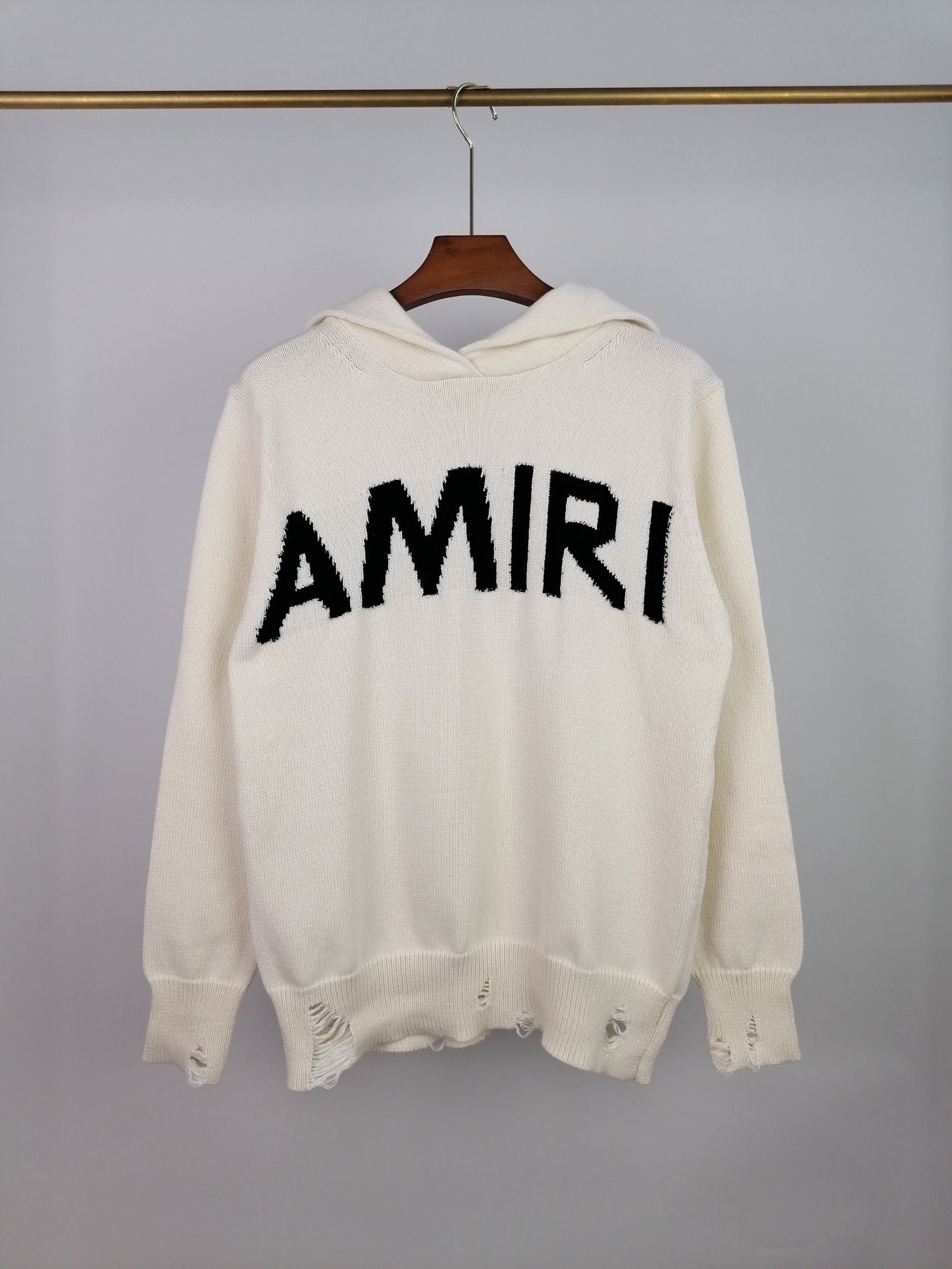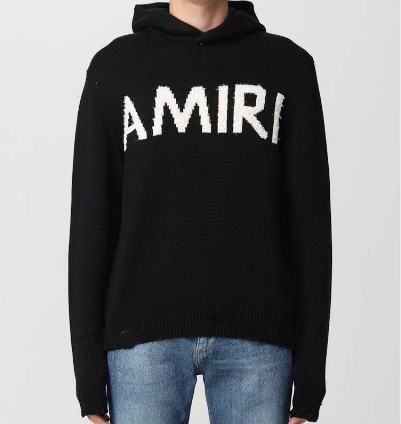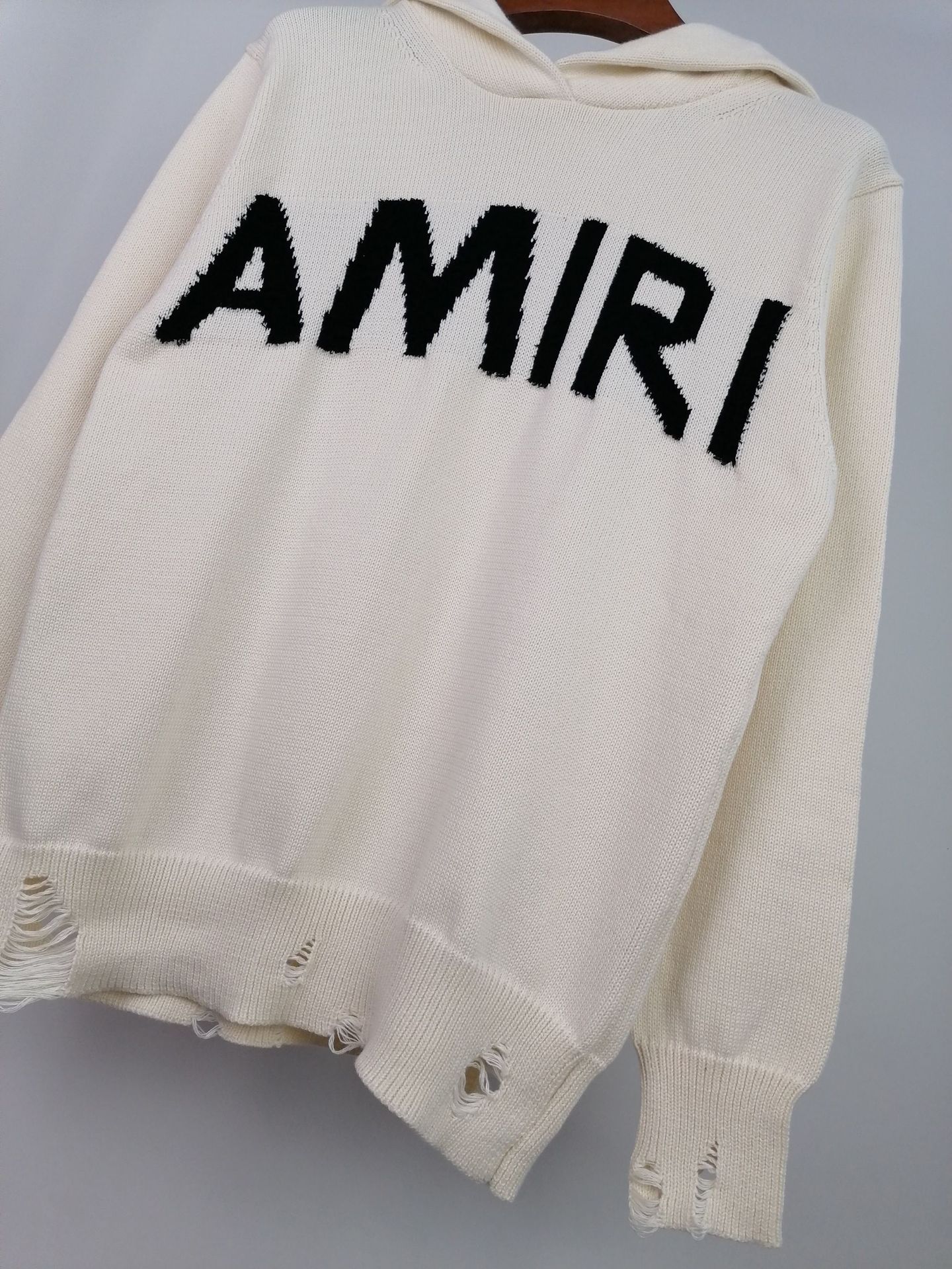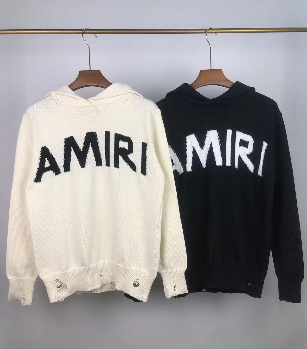 대외 무역 도매 AMIRI 트렌디 레터 로고 자카드 태슬 디스트로이드 루즈 스타일 후드 라운드 넥 스웨터스토어 가기