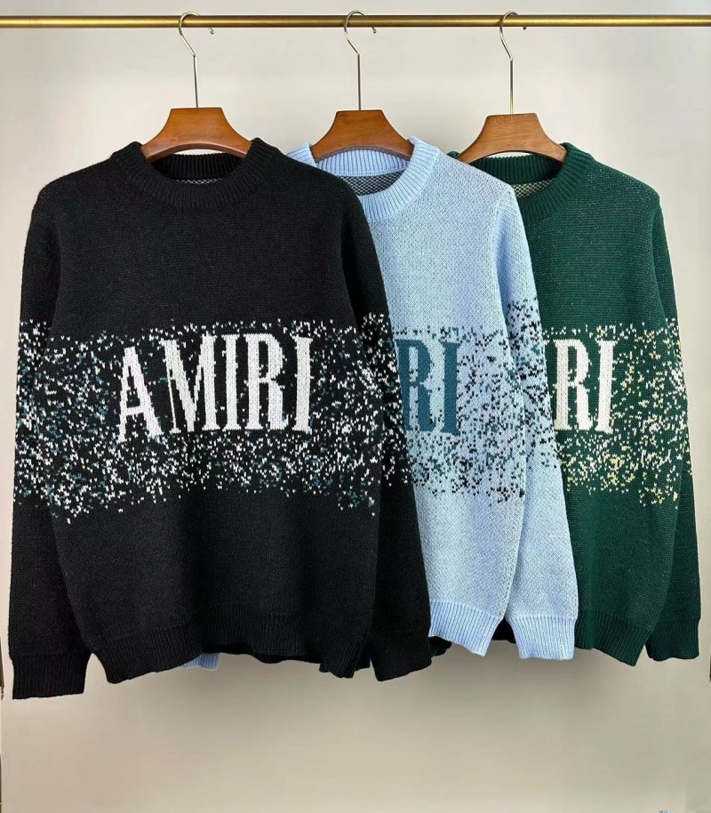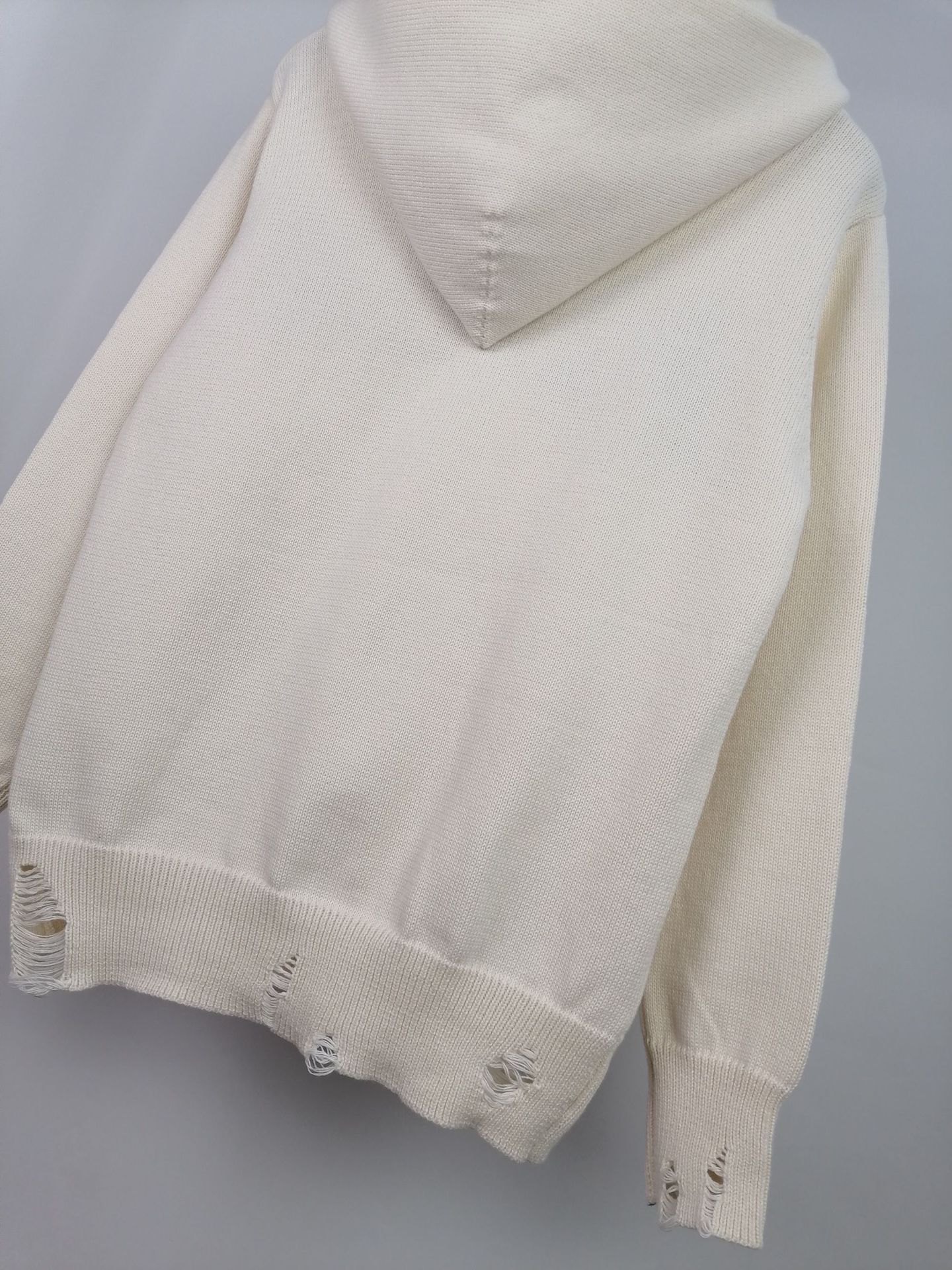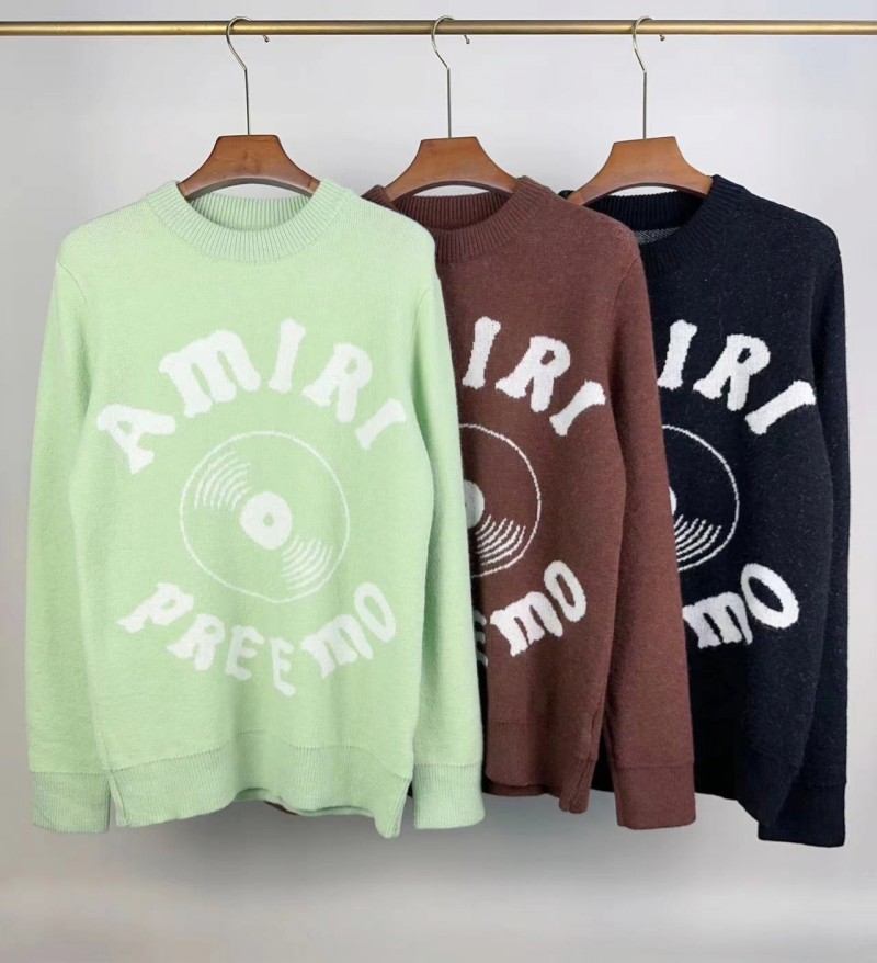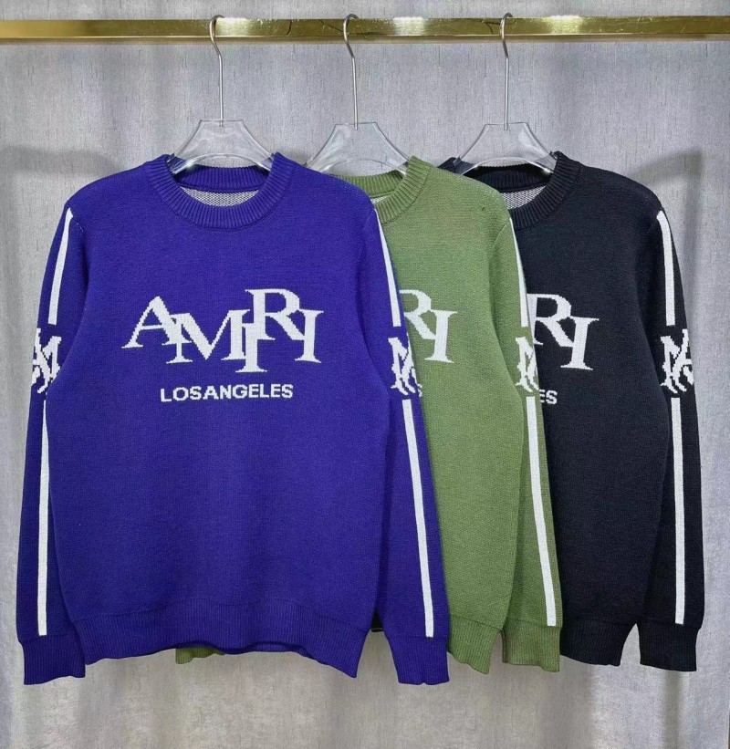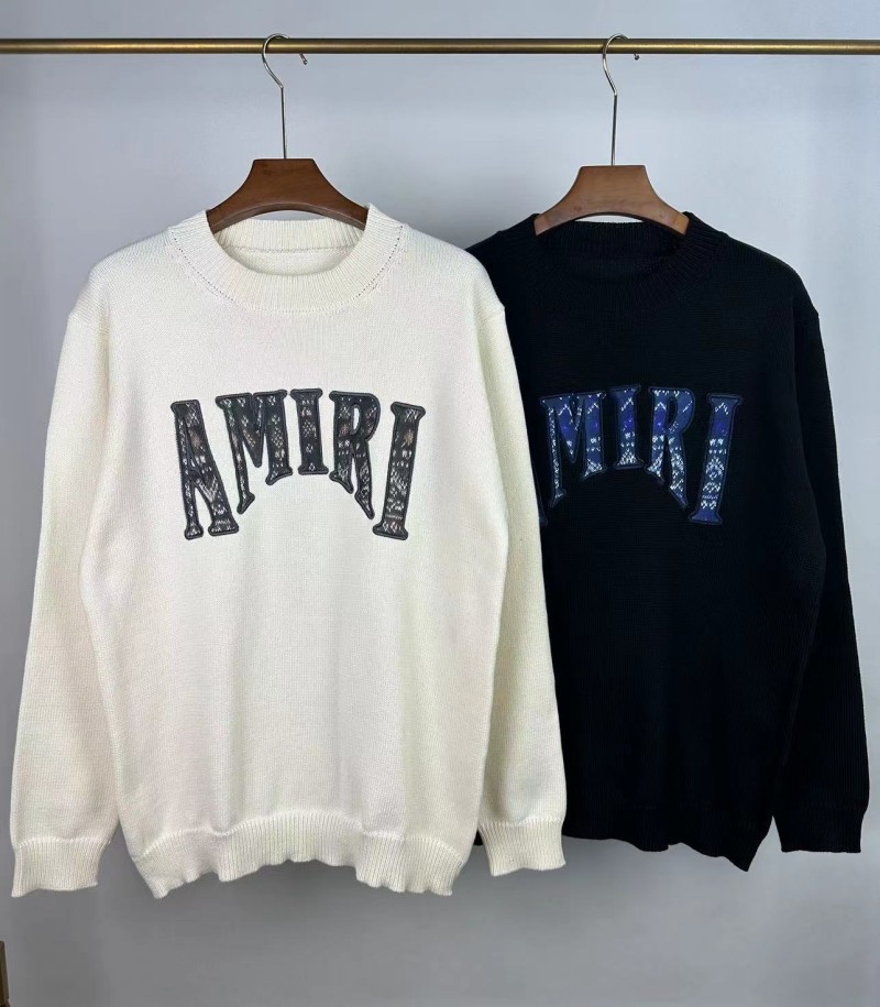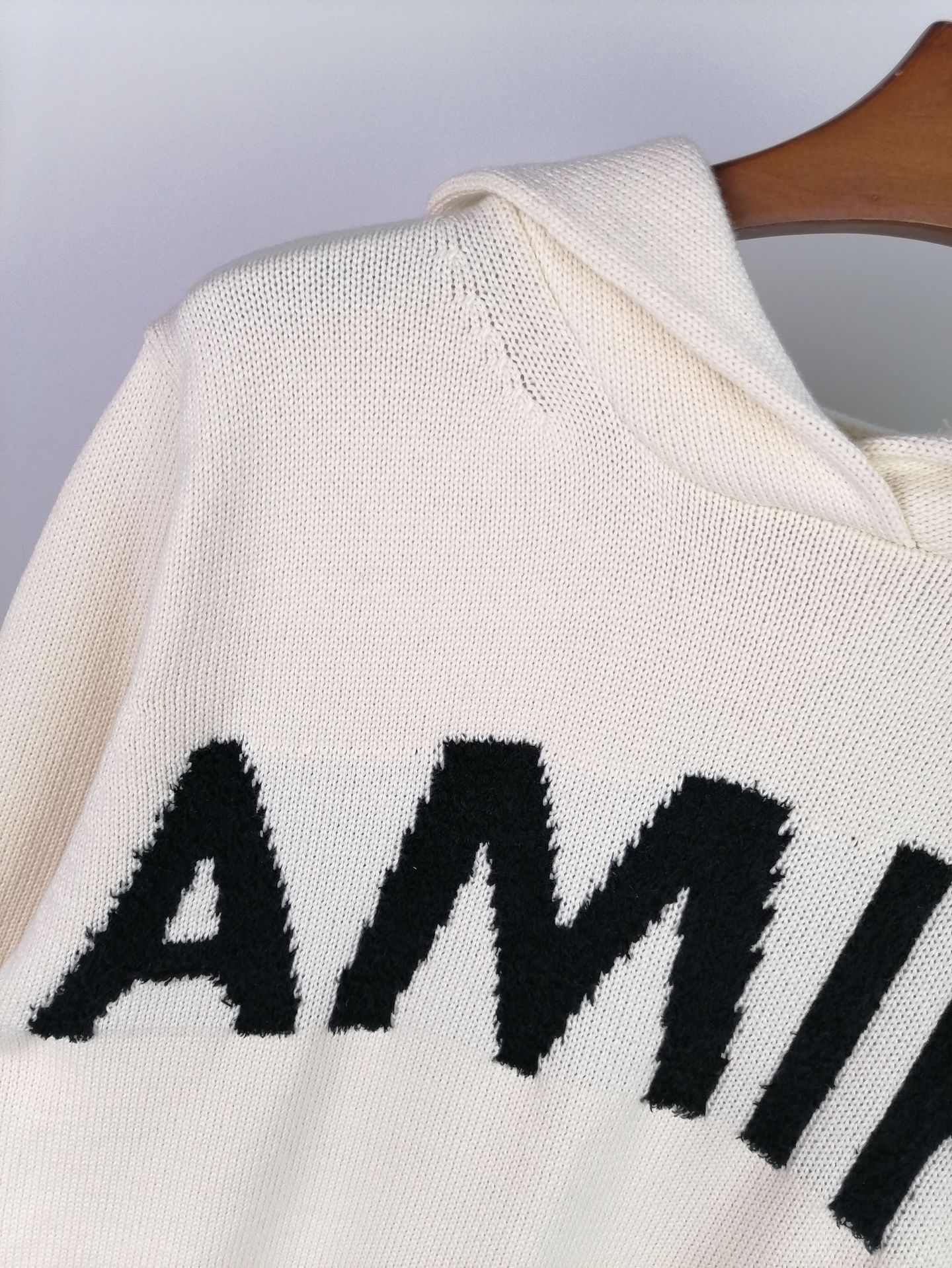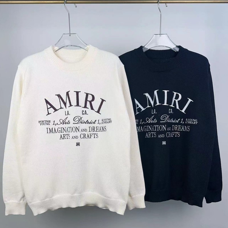 대외 무역 도매 AMIRI 트렌디 레터 로고 자카드 태슬 디스트로이드 루즈 스타일 후드 라운드 넥 스웨터스토어 가기