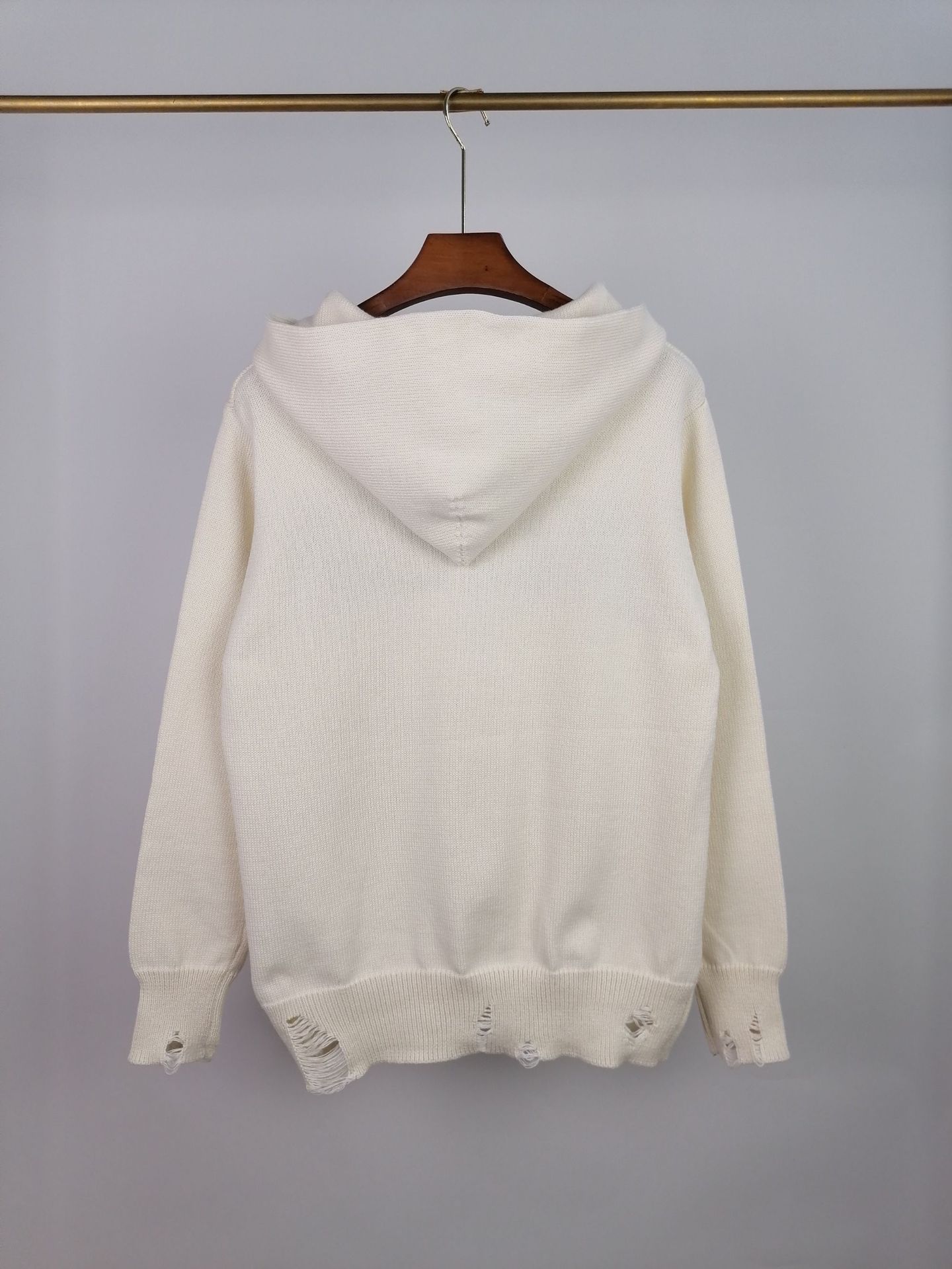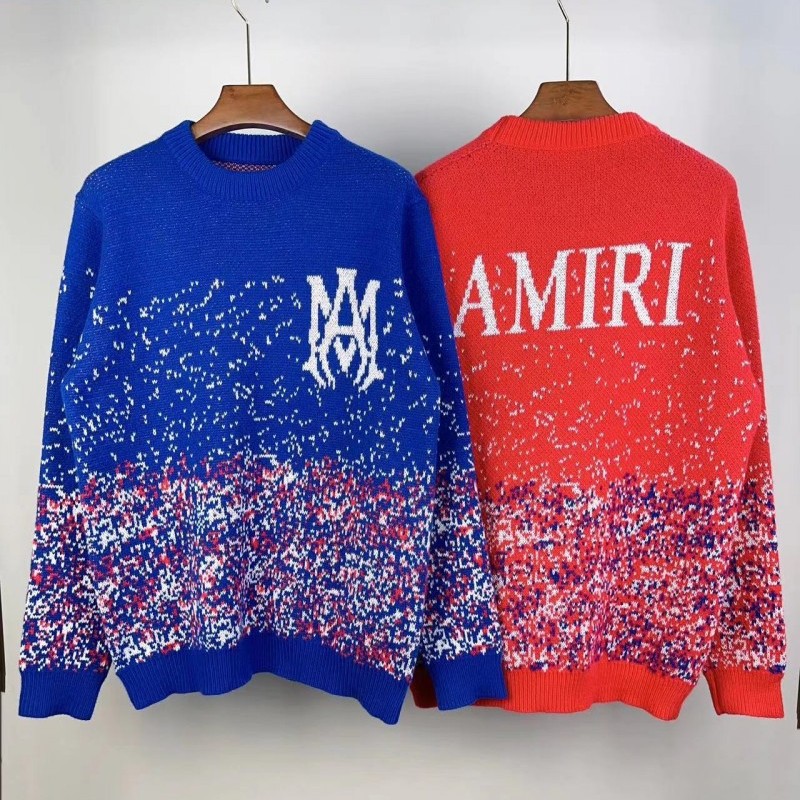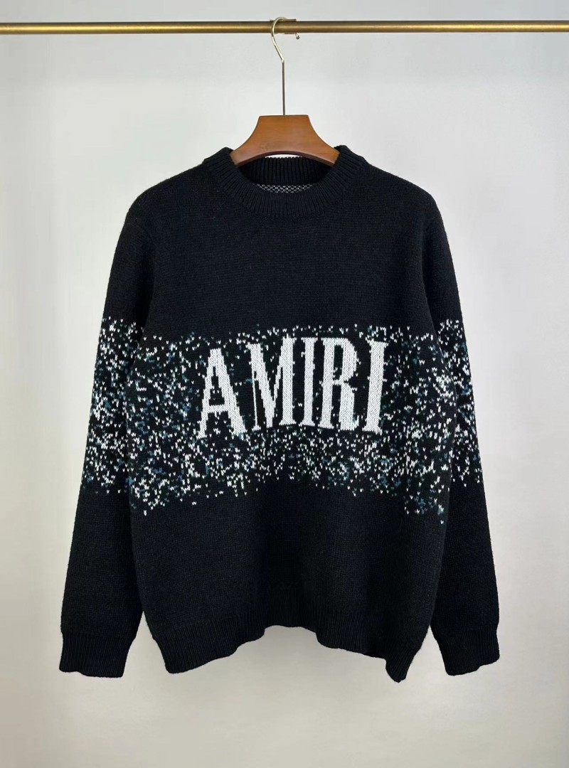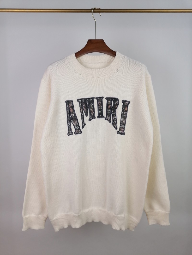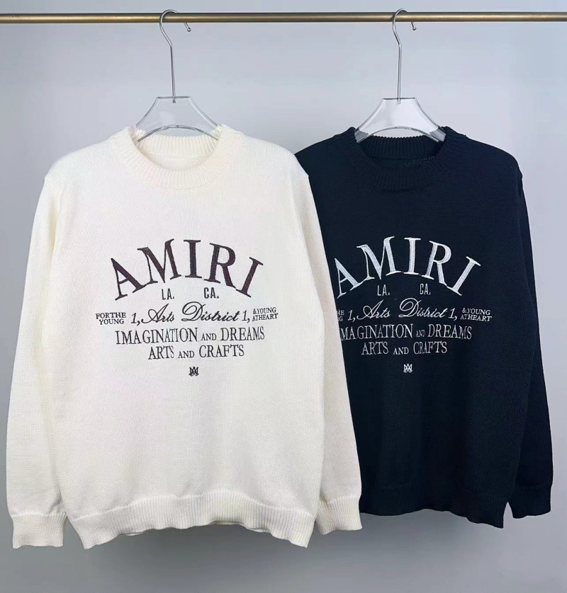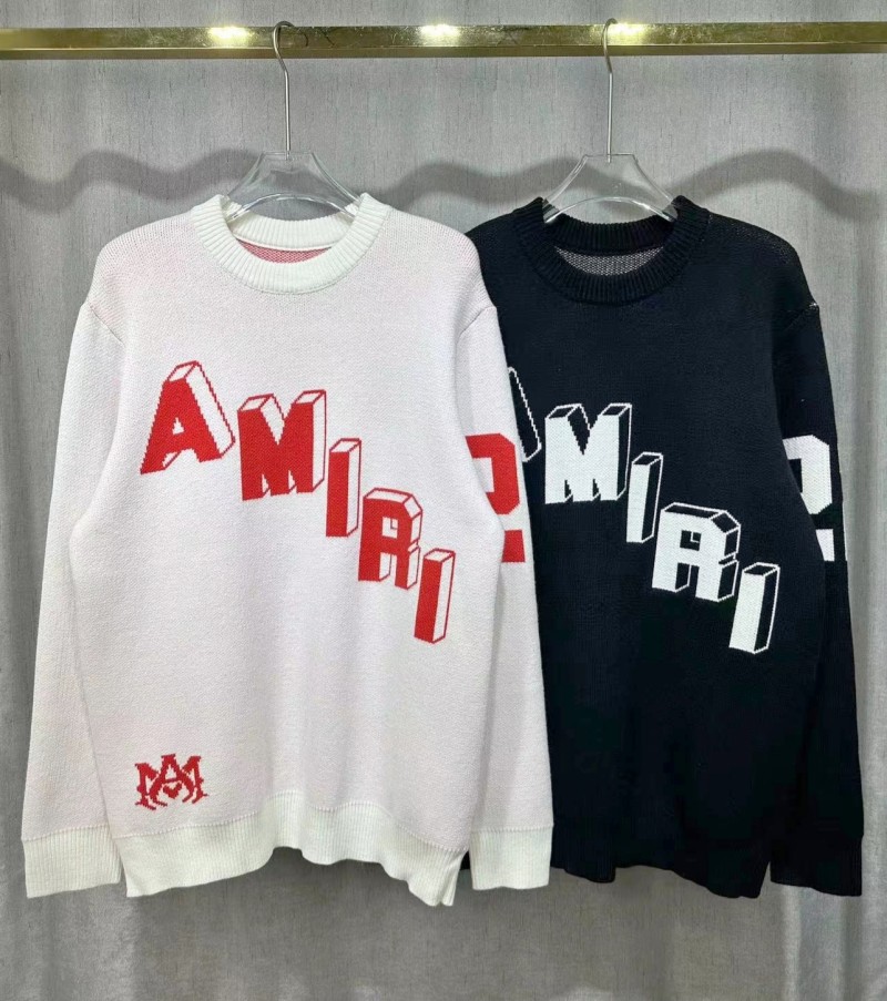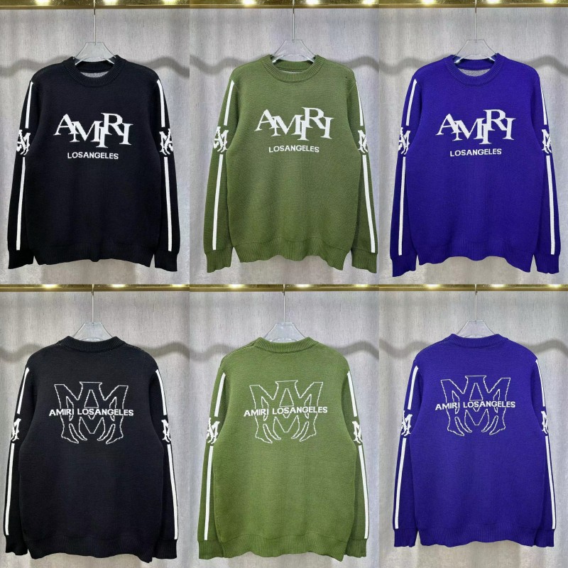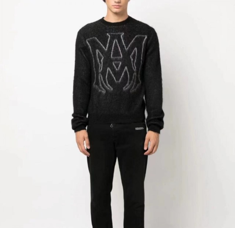 대외 무역 도매 AMIRI 트렌디 레터 로고 자카드 태슬 디스트로이드 루즈 스타일 후드 라운드 넥 스웨터스토어 가기