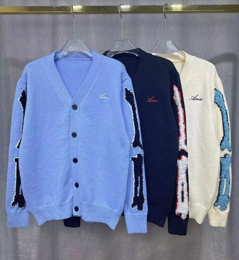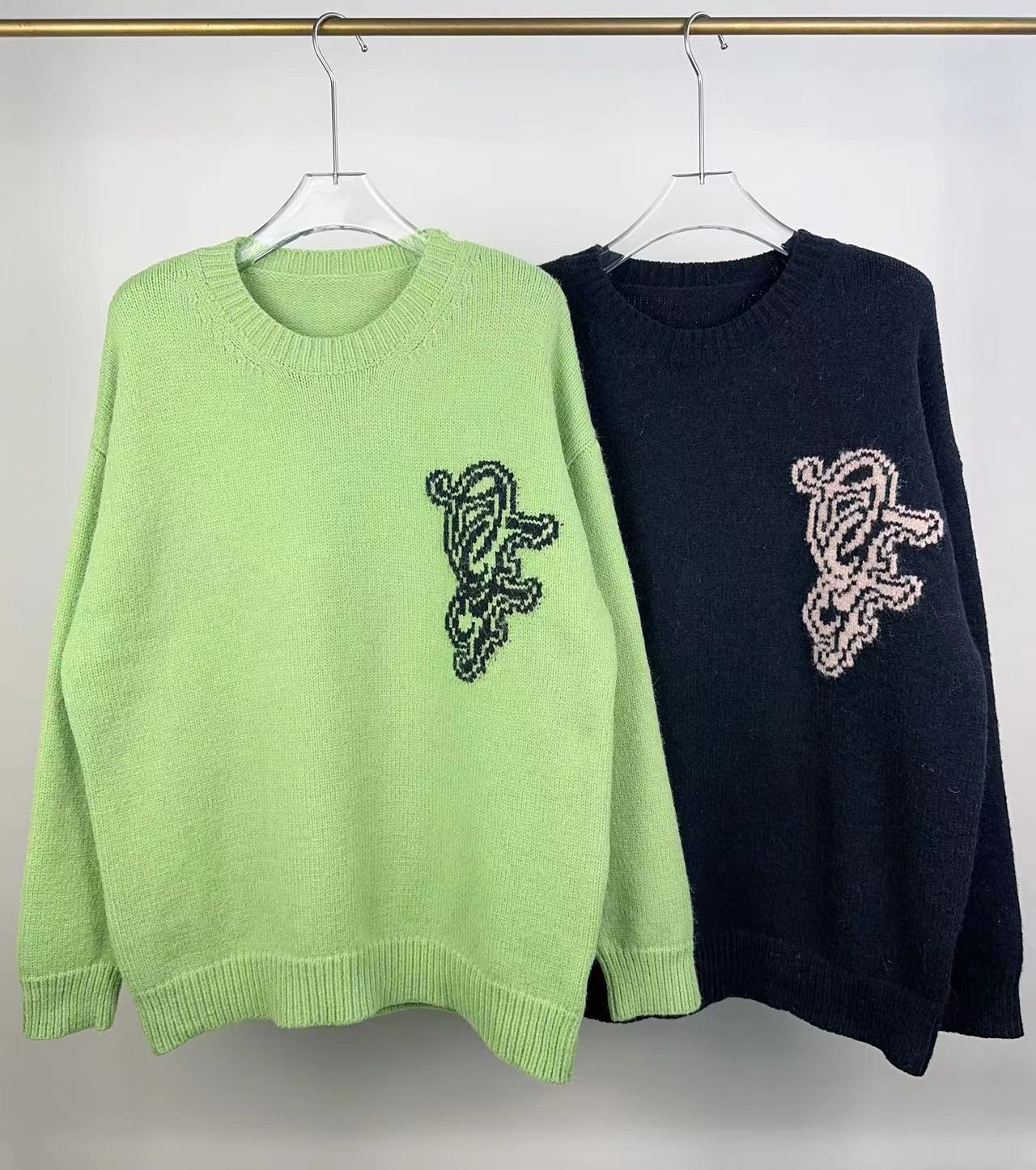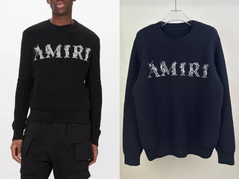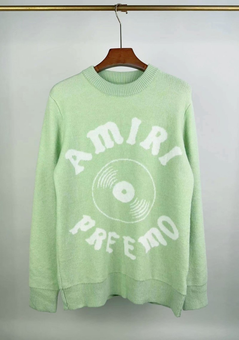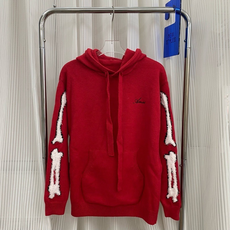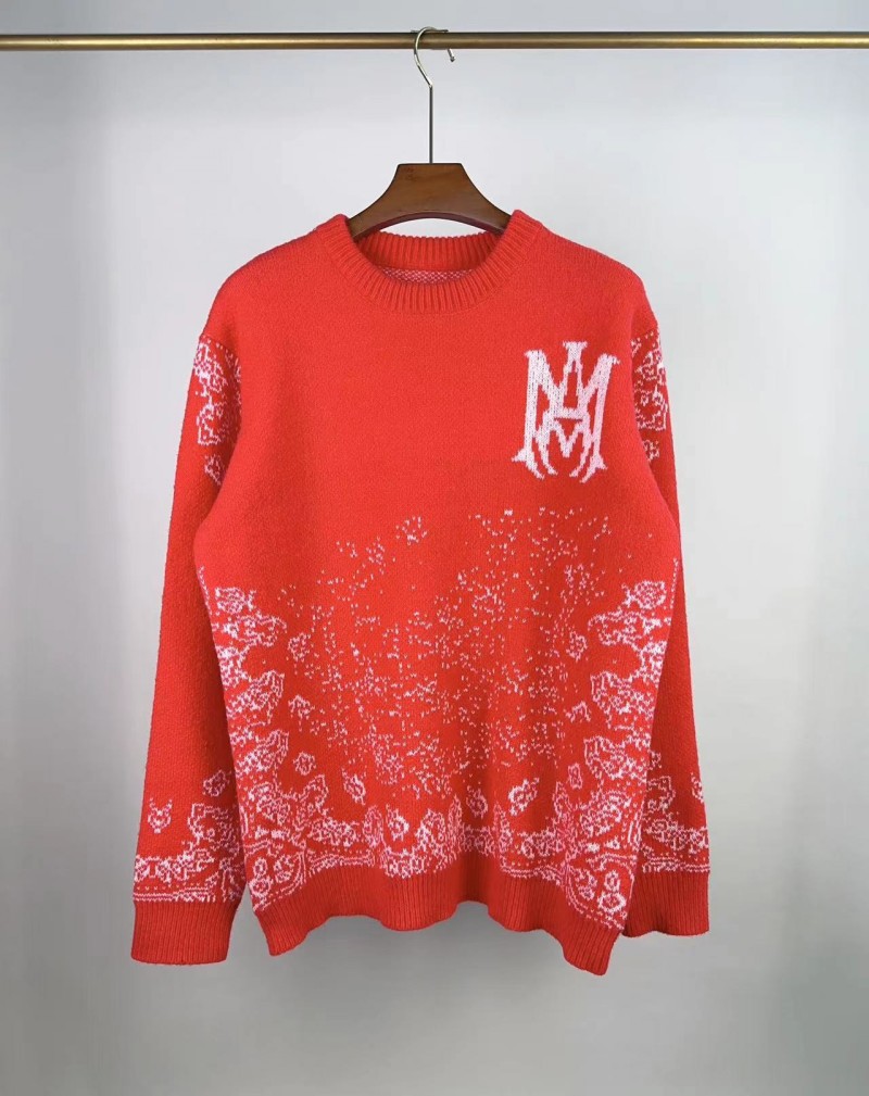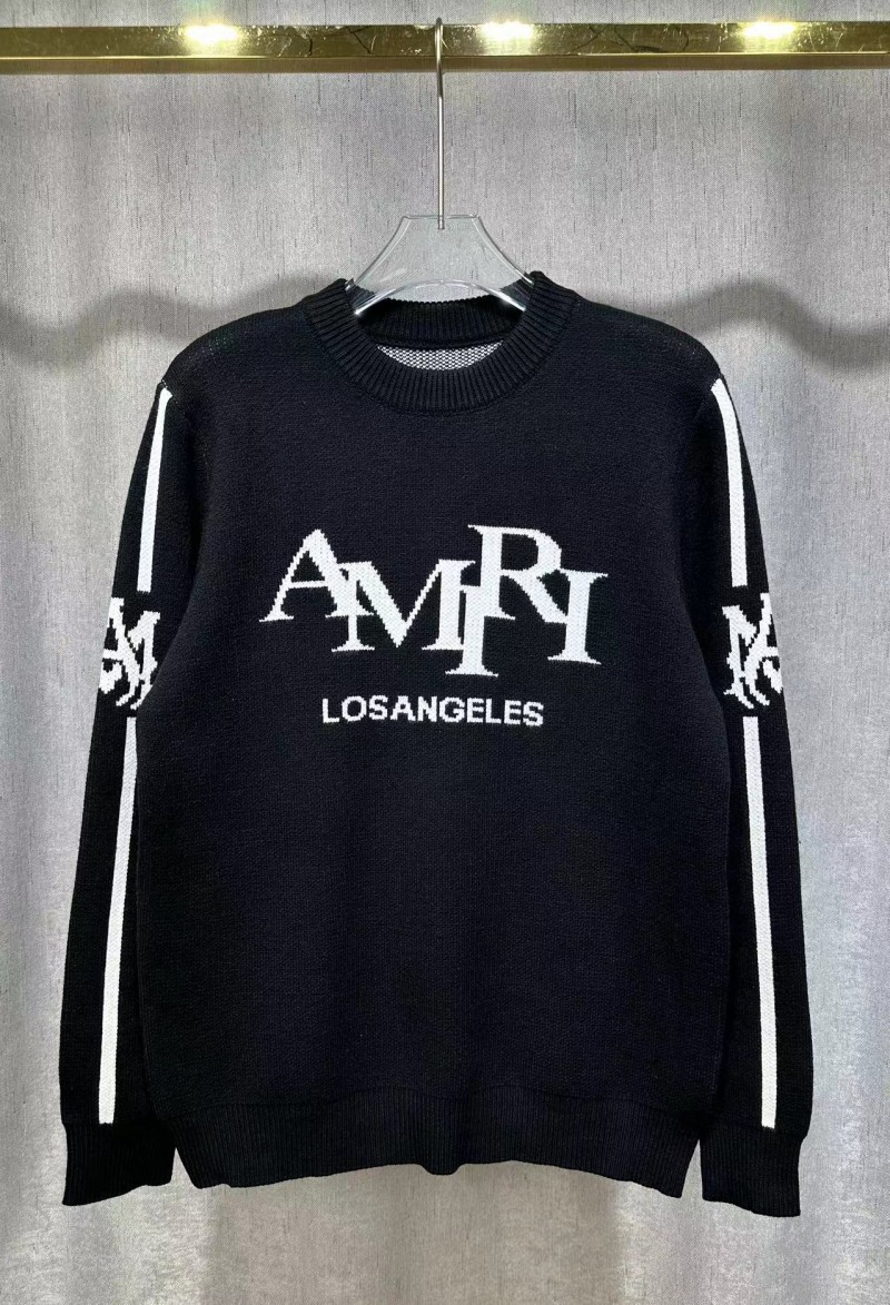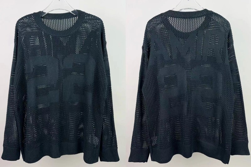 대외 무역 도매 AMIRI 트렌디 레터 로고 자카드 태슬 디스트로이드 루즈 스타일 후드 라운드 넥 스웨터스토어 가기