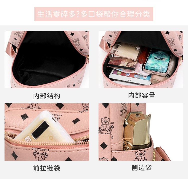 국경 간 여성 가방 2024 새로운 부드러운 가죽 패션 복고풍 곰 인쇄 배낭 대용량 학생 학교 가방스토어 가기