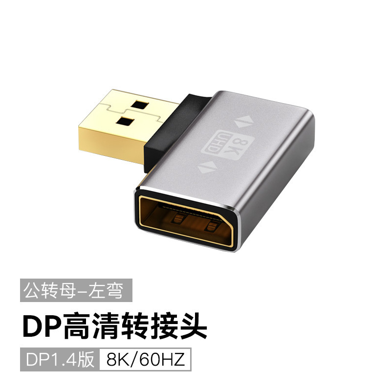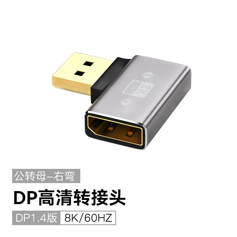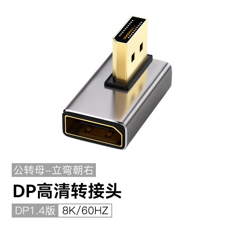 DP 어댑터 표준 DP 위아래 왼쪽 오른쪽 90도 직각 남성-여성 DP-DP 엘보 어댑터 8K60Hz