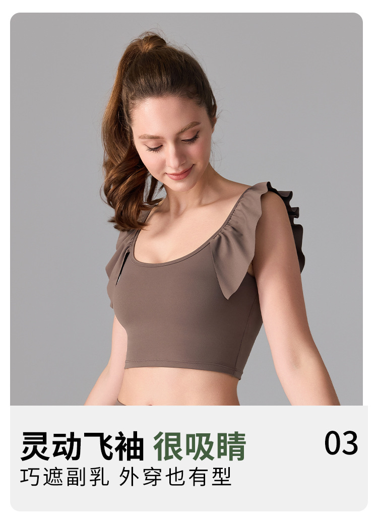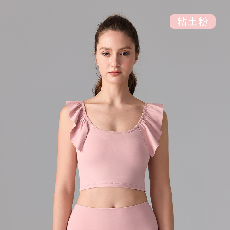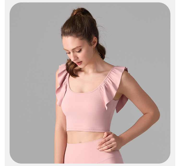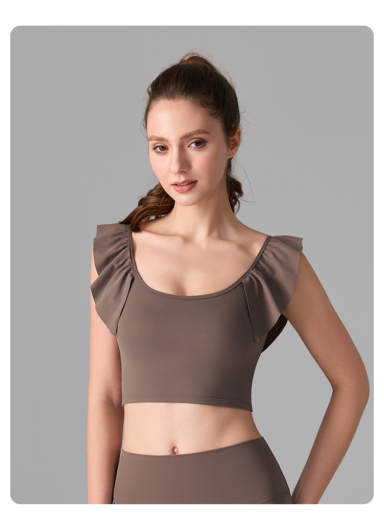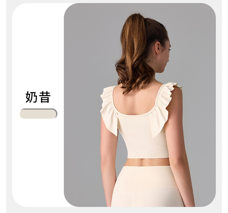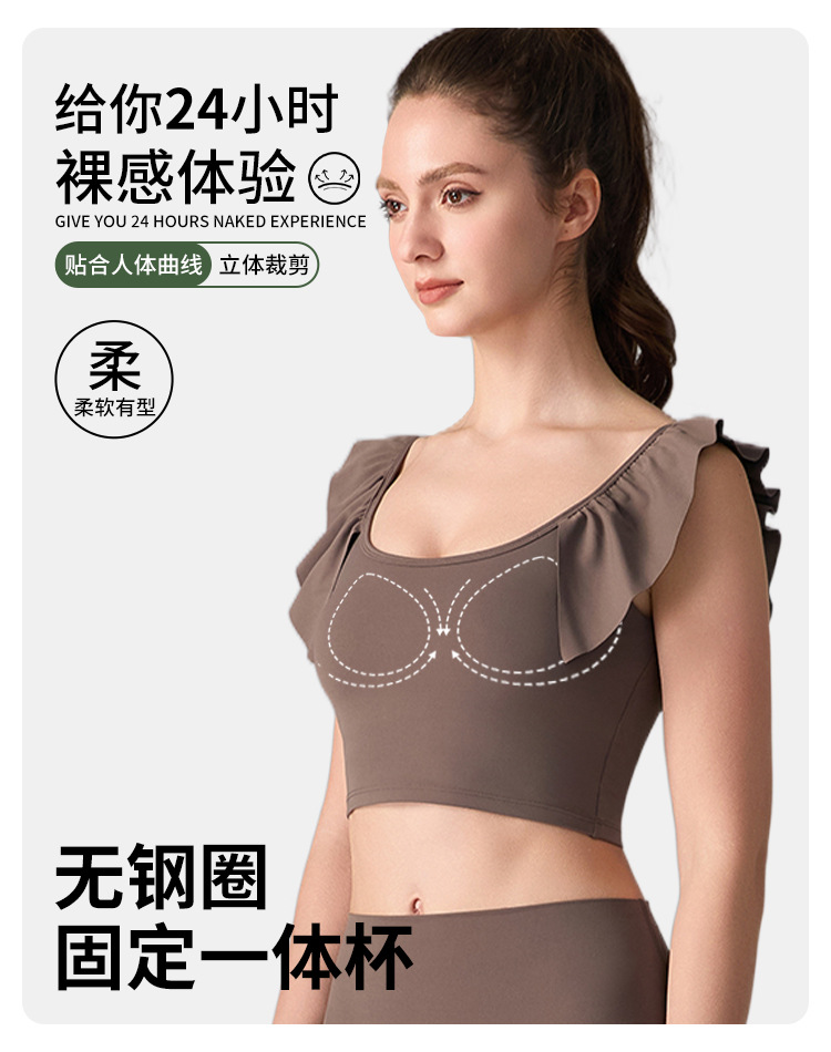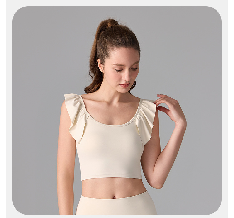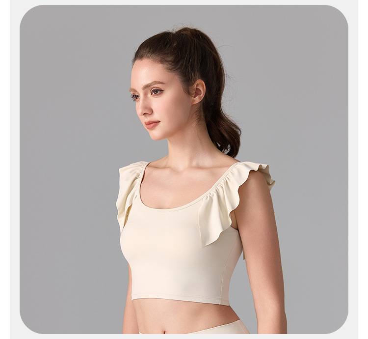 여성을위한 러플 누드 항균 스포츠 속옷 고정 컵 외부 조끼 민소매 요가 U 자형 아름다운 뒤 여름 탑스토어 가기