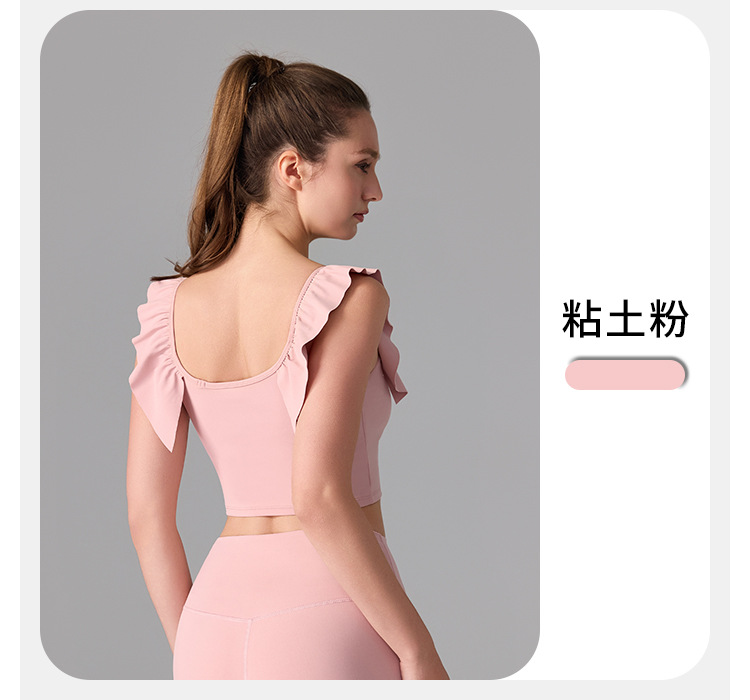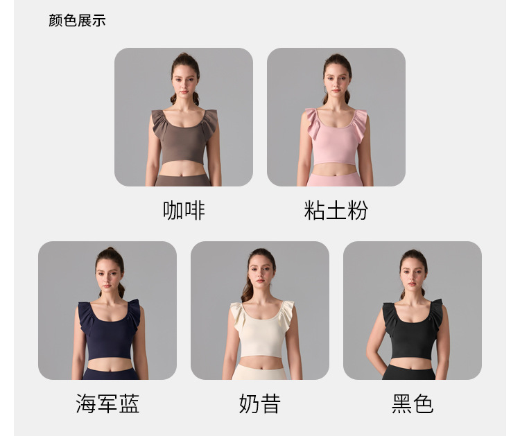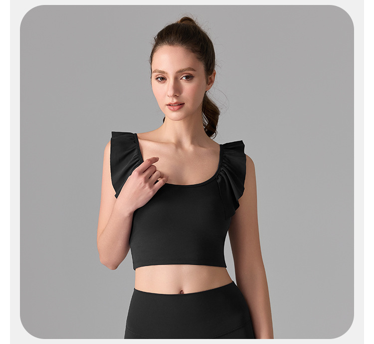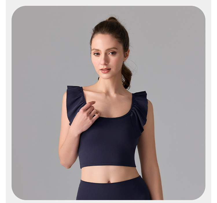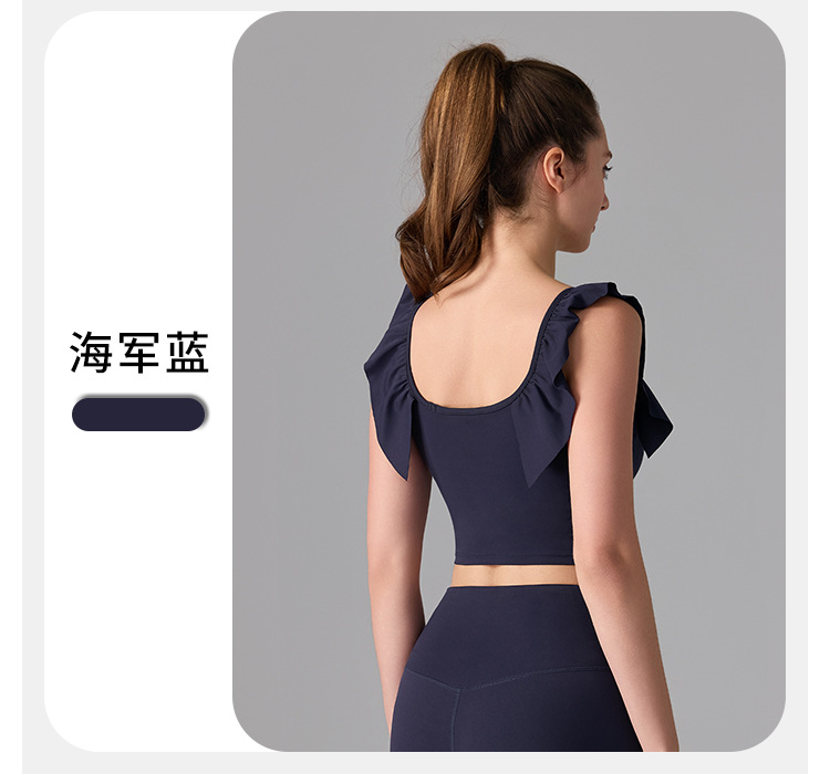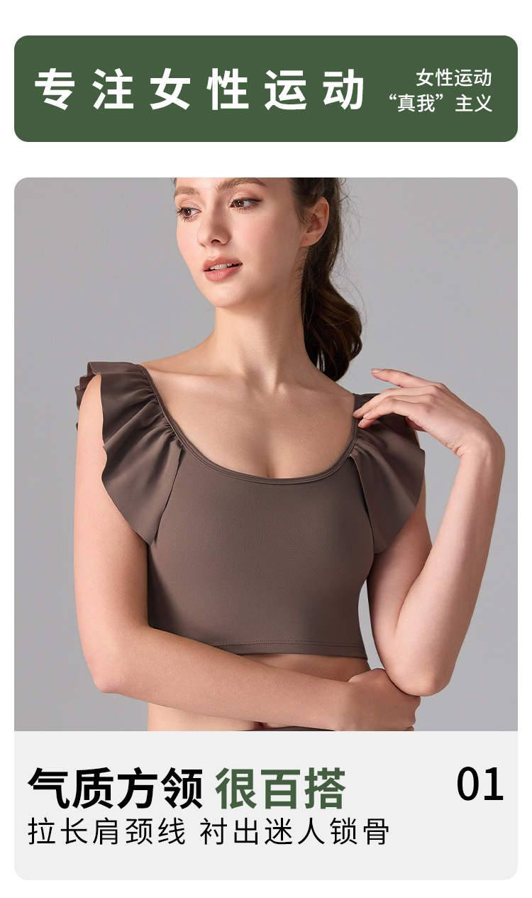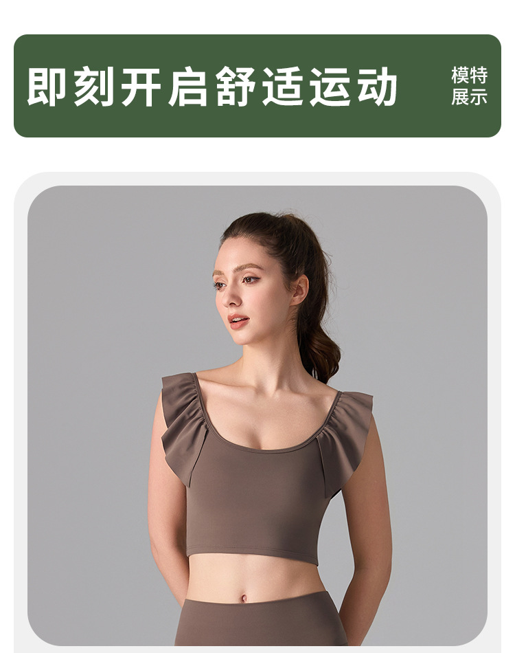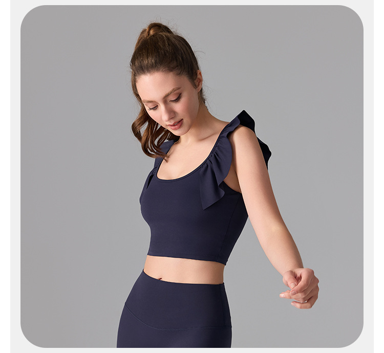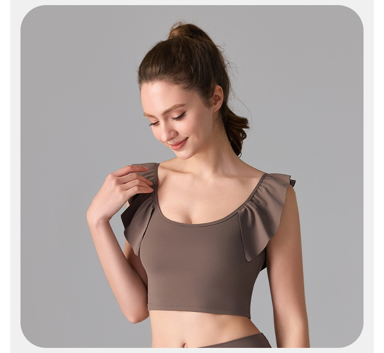 여성을위한 러플 누드 항균 스포츠 속옷 고정 컵 외부 조끼 민소매 요가 U 자형 아름다운 뒤 여름 탑스토어 가기
