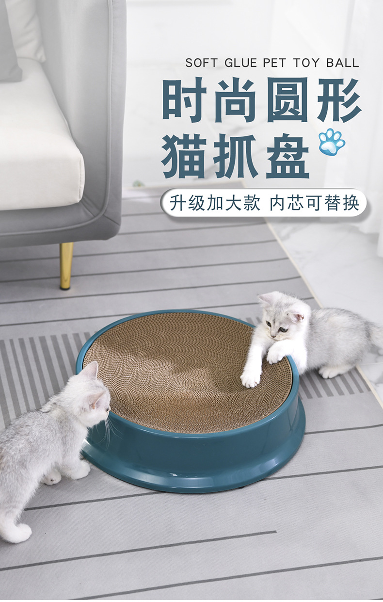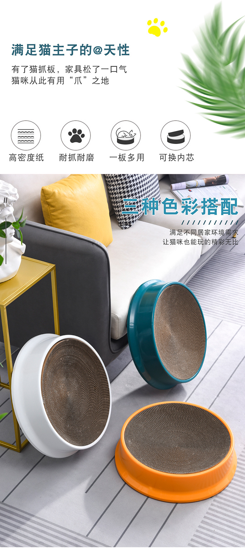 고양이 둥근 고양이 스크래치 상자, 교체 가능한 두껍고 단단한 골판지 고양이 스크래치 보드, 고양이 둥지, 중형 및 대형 고양이 장난감