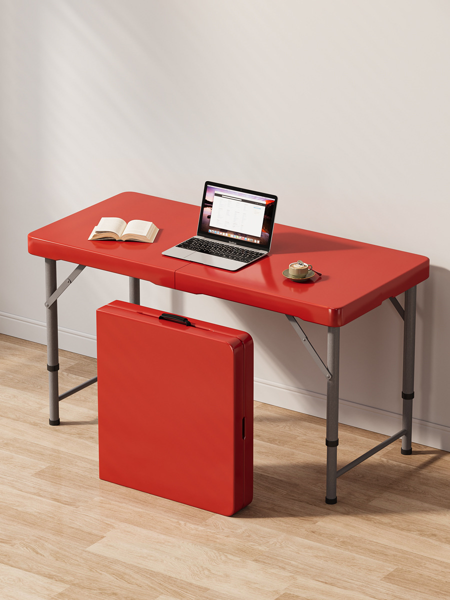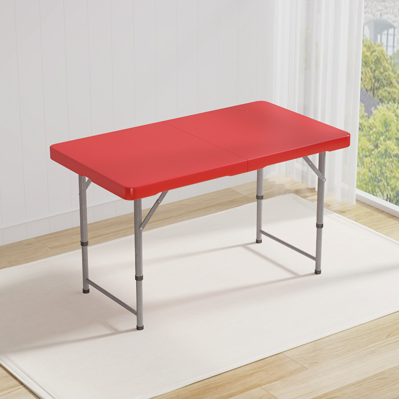 • 【간편한 블로우 성형 상판】 120cm 레드 높이 조절 접이식 테이블