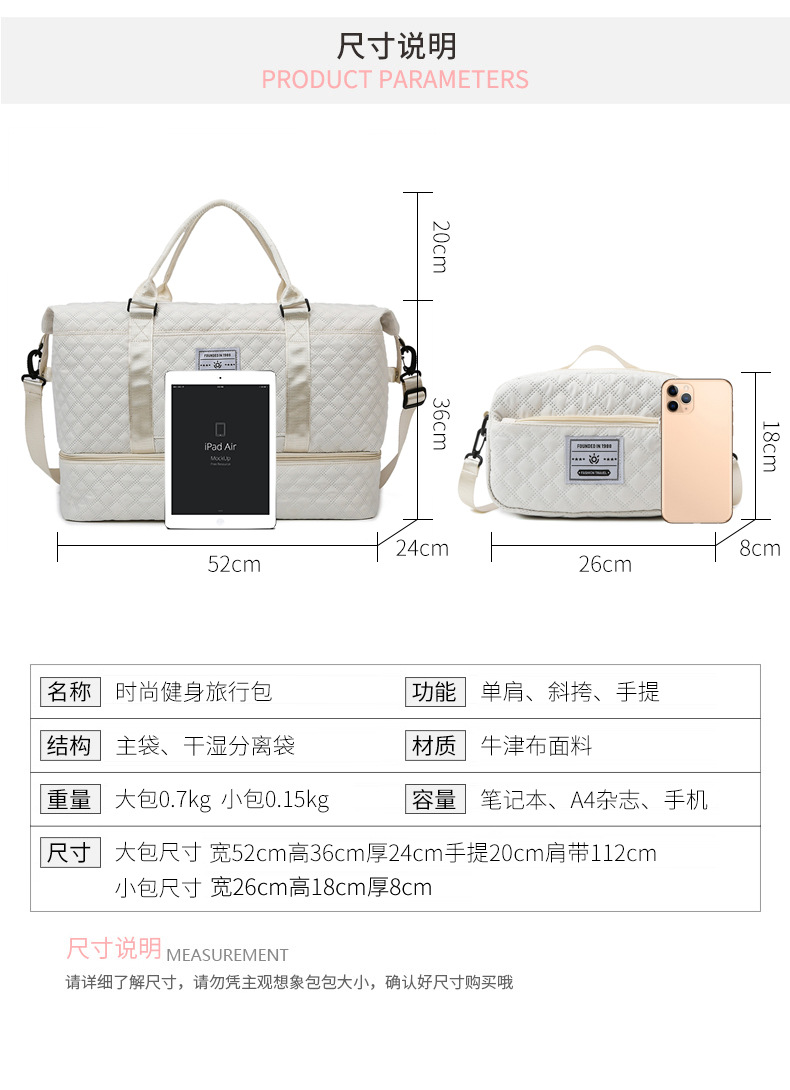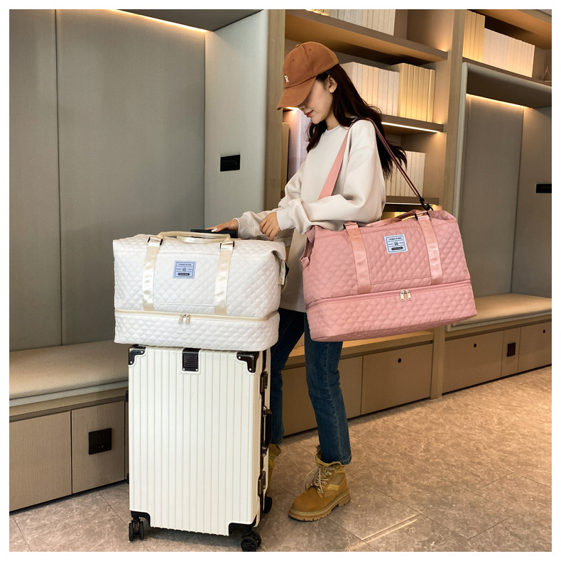 Lingge의 새로운 피트니스 가방 2피스 짧은 여행 수하물 가방 대용량 여행 가방 건식 및 습식 분리 요가 스포츠 가방스토어 가기