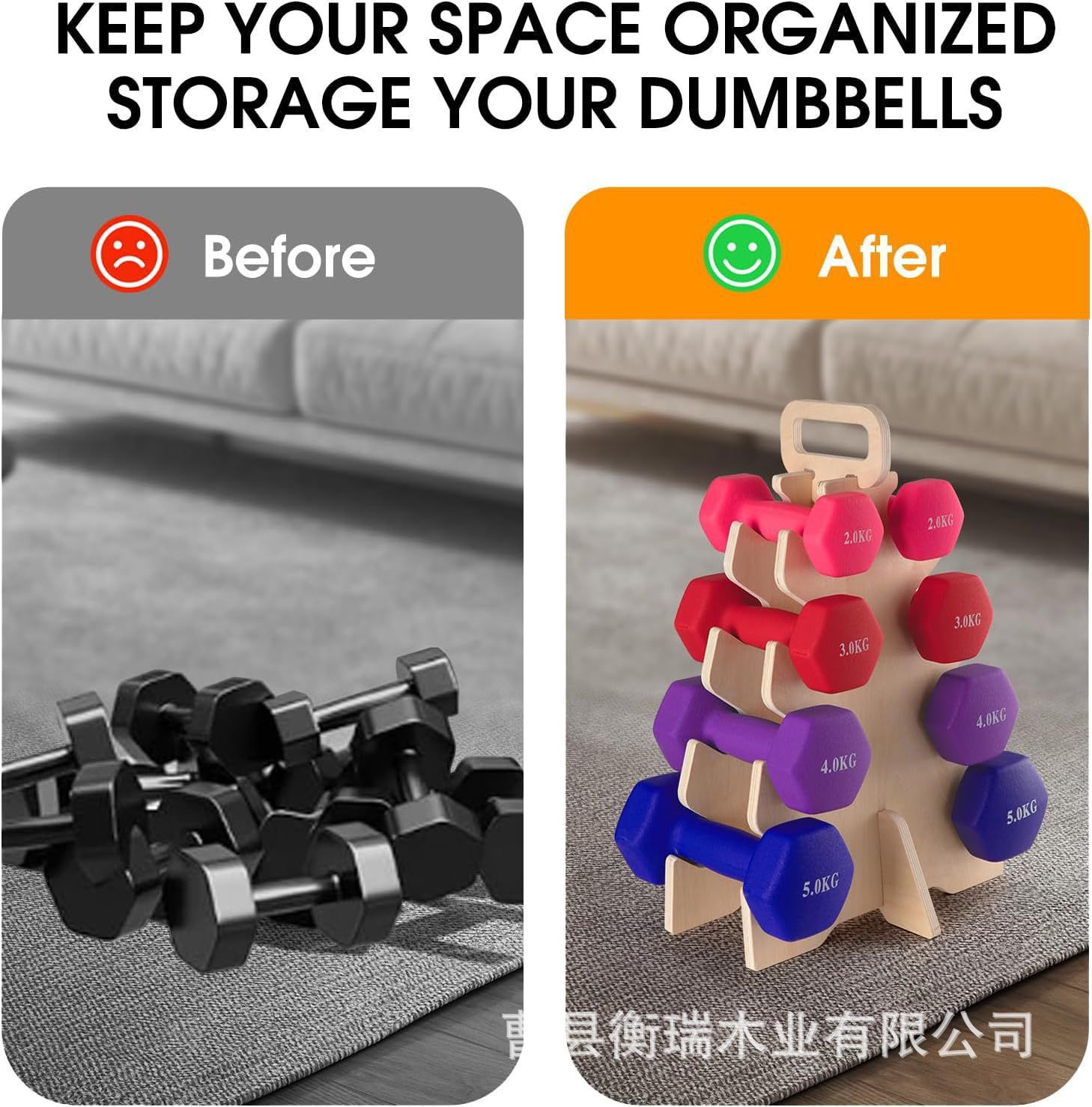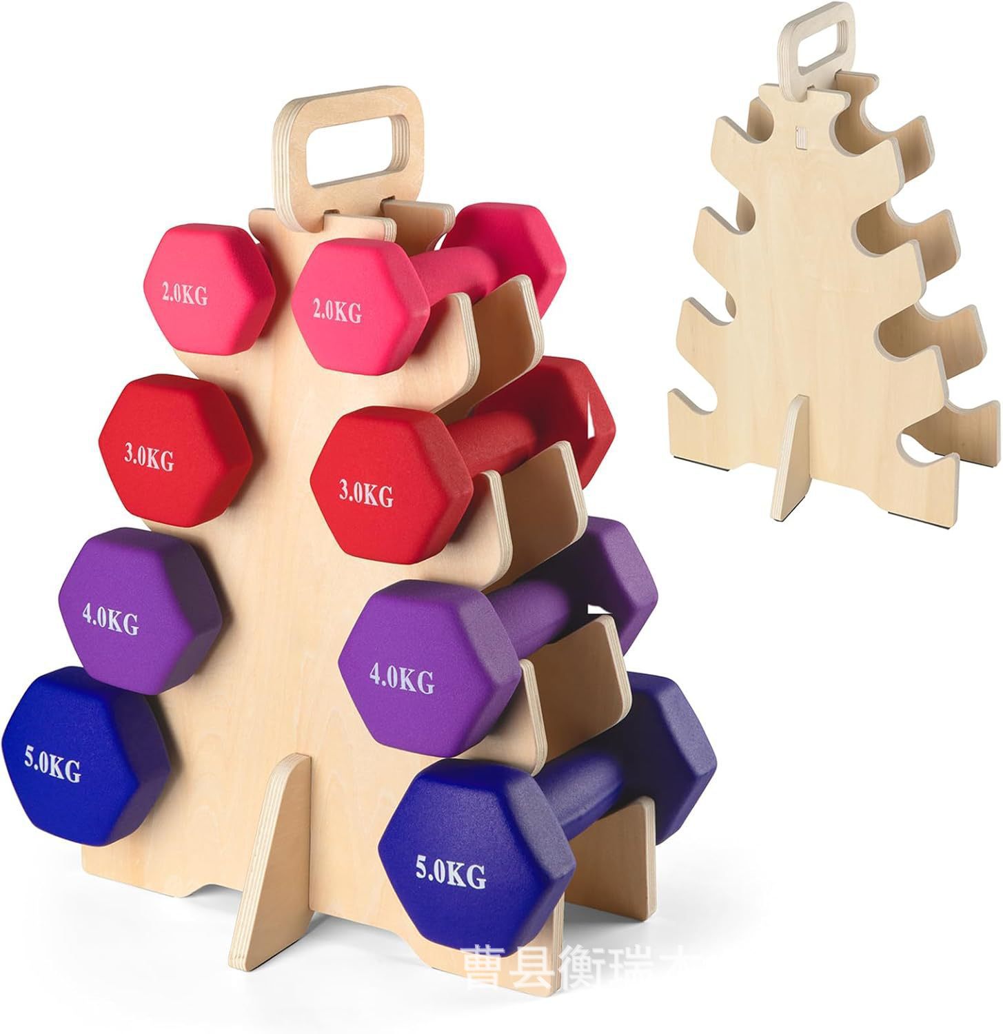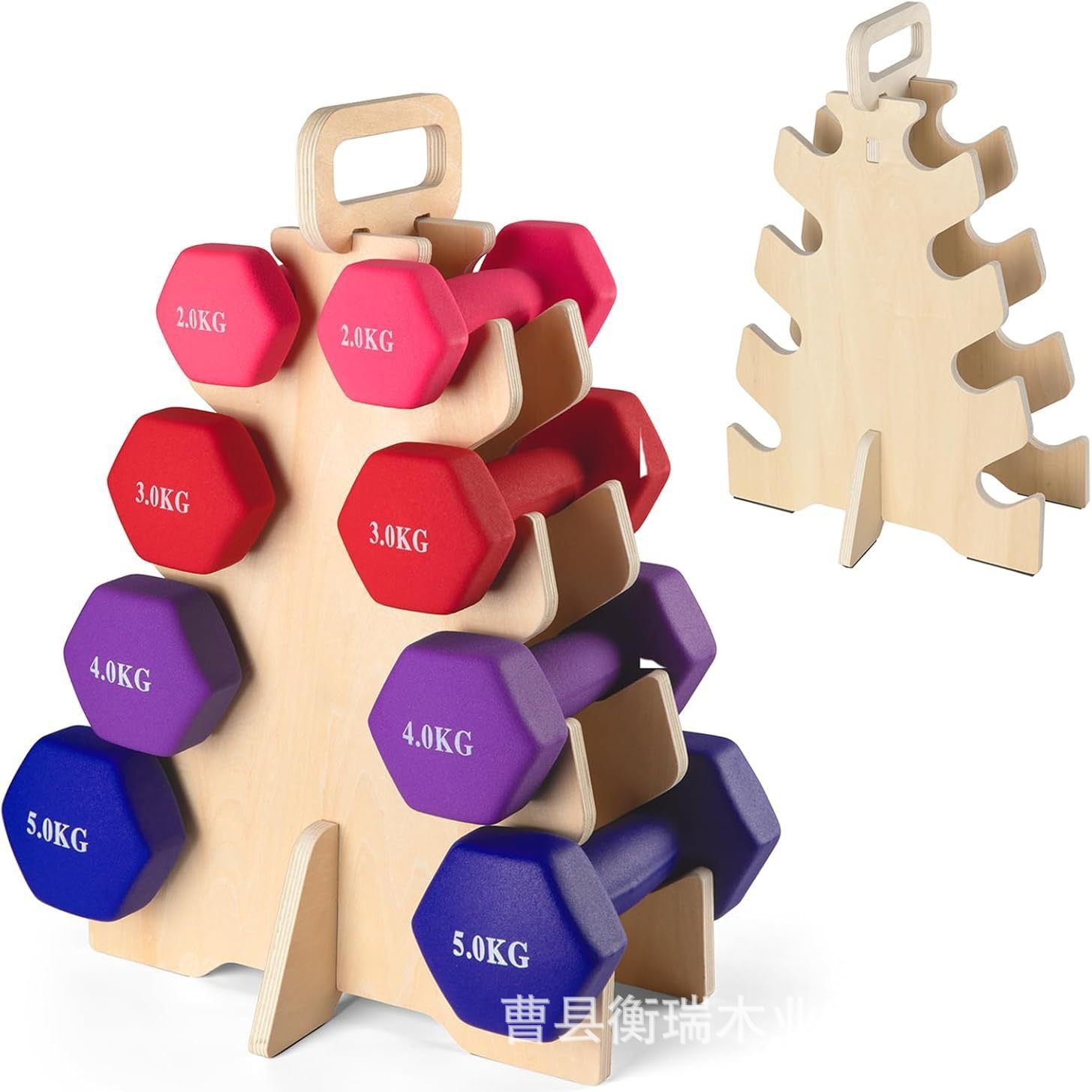 나무 작은 덤벨 랙 손잡이가있는 근력 훈련 덤벨 랙 홈 체육관 운동 나무 보관 랙