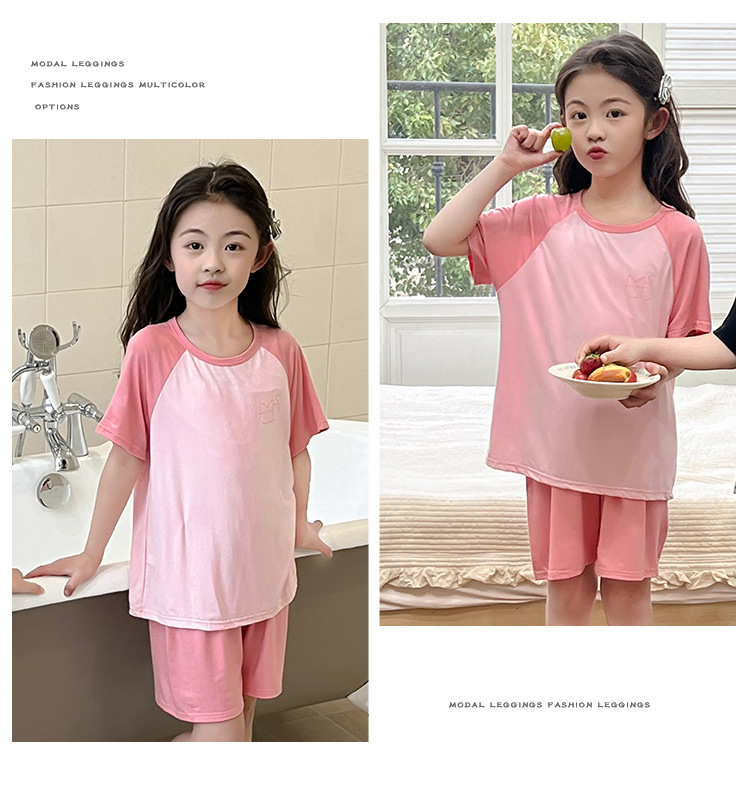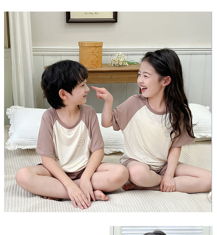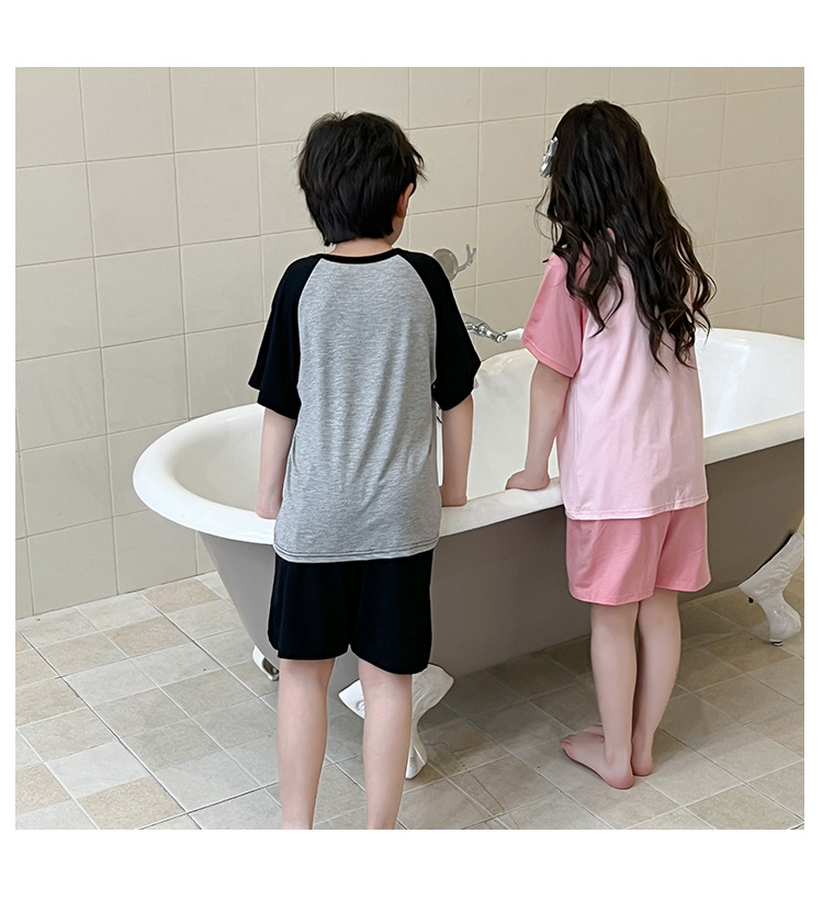 아동용 모달 잠옷, 여아 여름 시원한 에어컨 의류, 남아용 반팔 중대형 아동복 세트스토어 가기