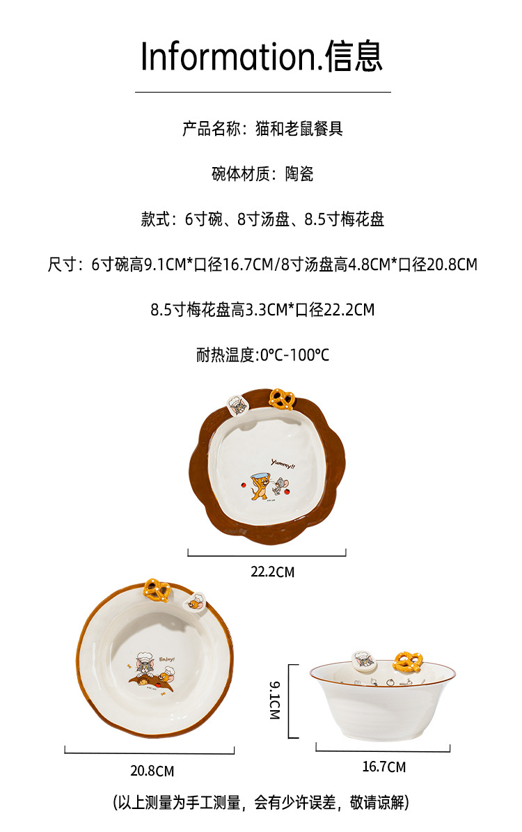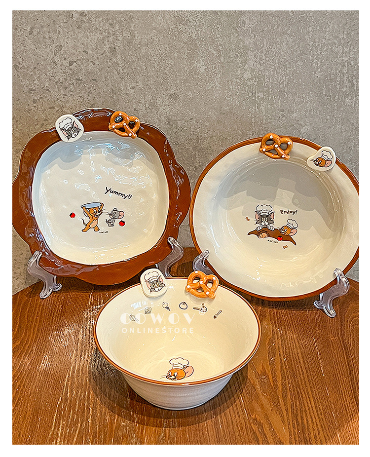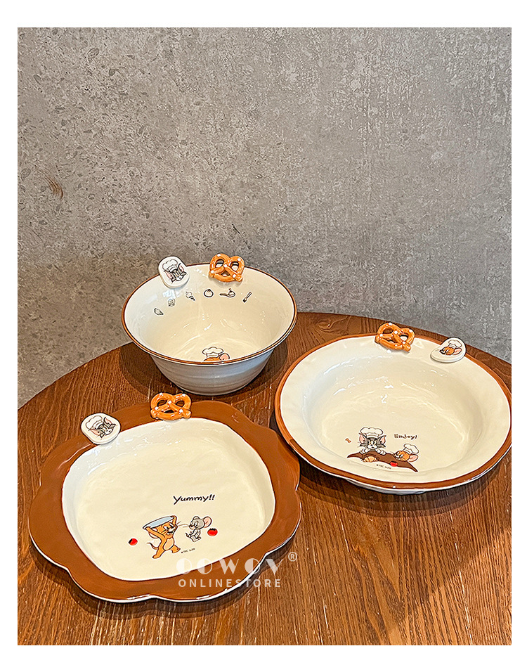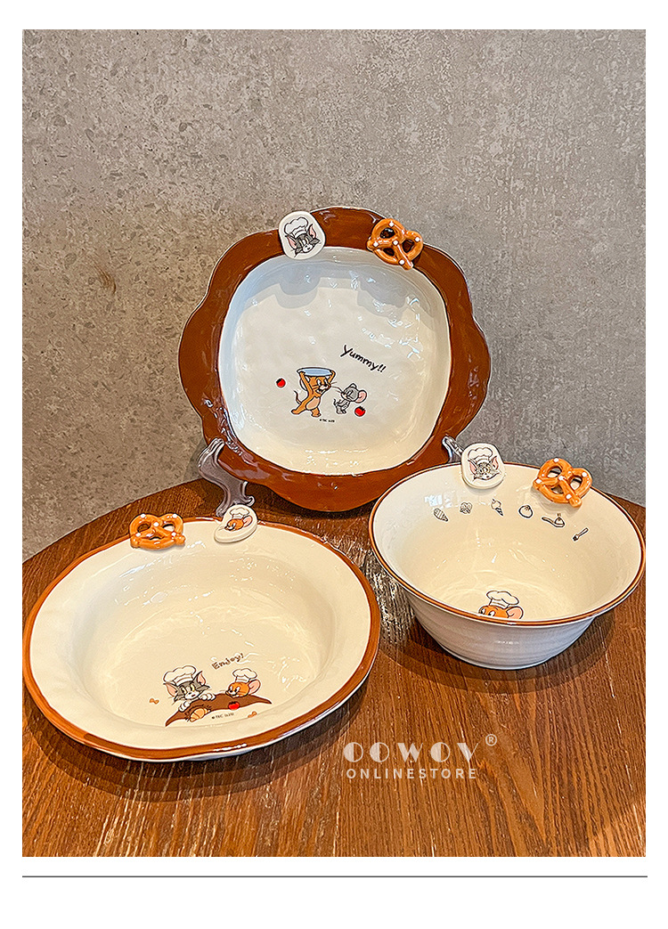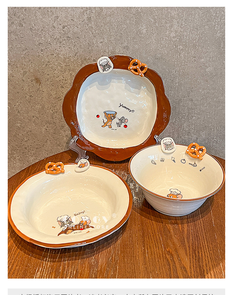 톰과 제리 공동 브랜드 세라믹 식기 2025 새로운 스타일 소녀의 고급스러운 수프 밥 그릇과 접시 홈 생일 선물스토어 가기