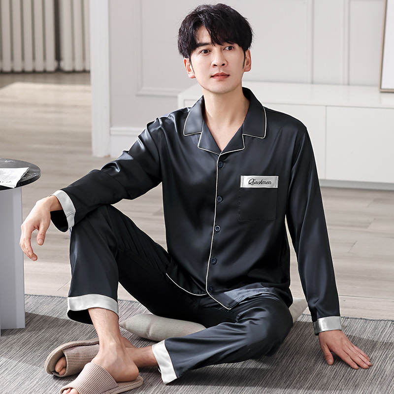남성 잠옷 가을, 겨울 긴팔 얇은 얼음 실크 한국 스타일 플러스 사이즈 청소년 캐주얼 홈웨어 세트스토어 가기