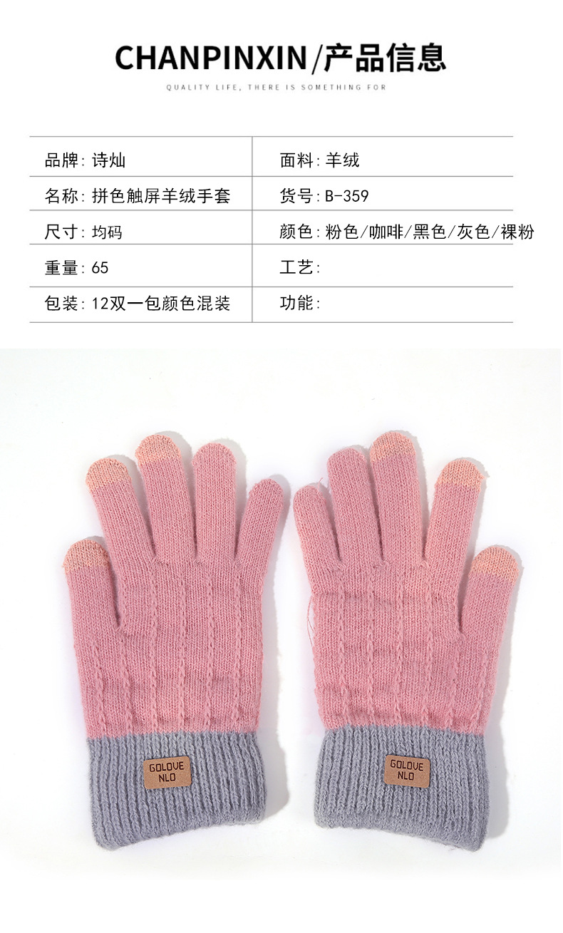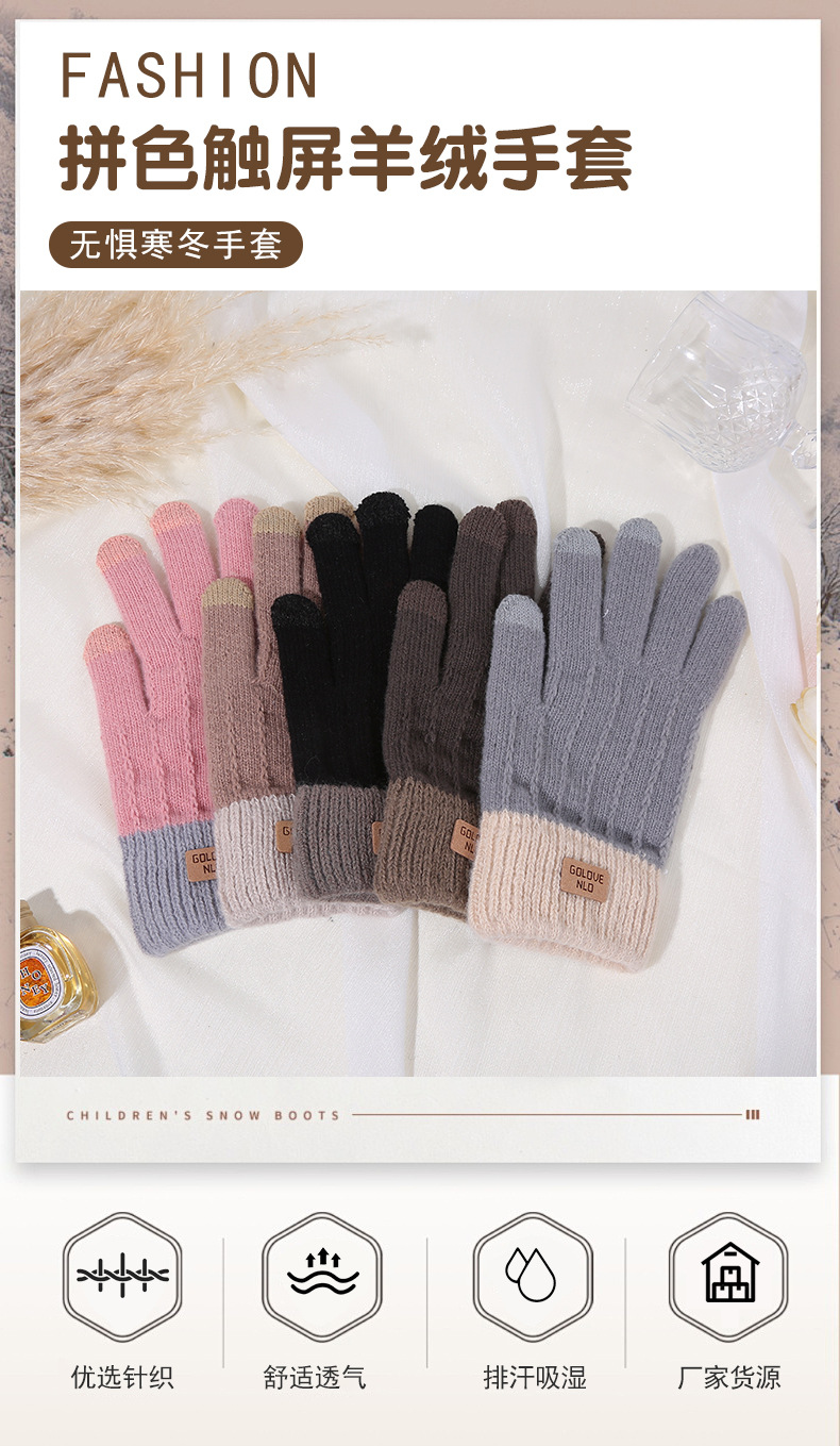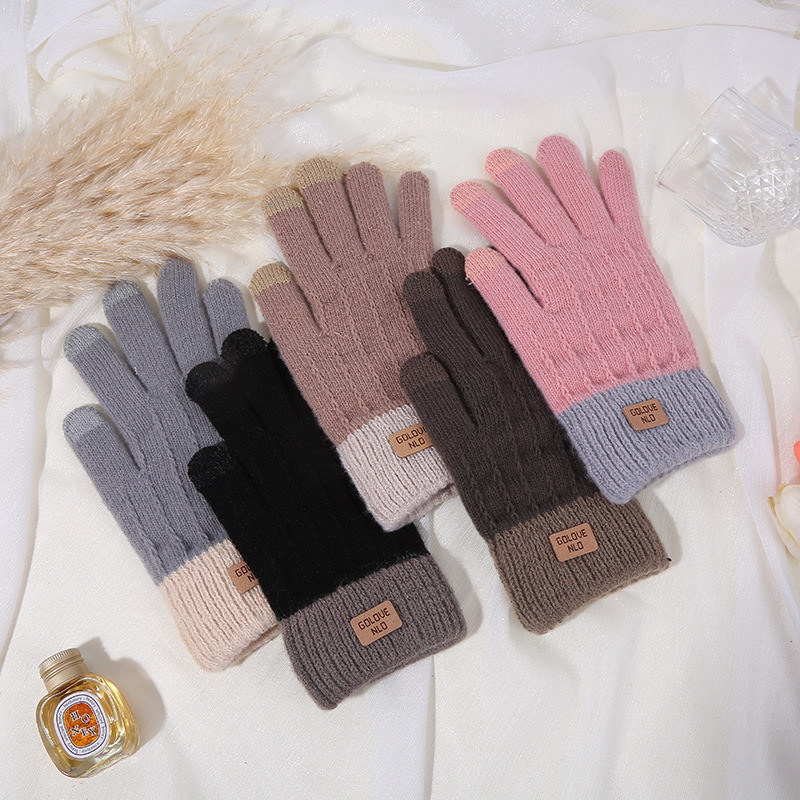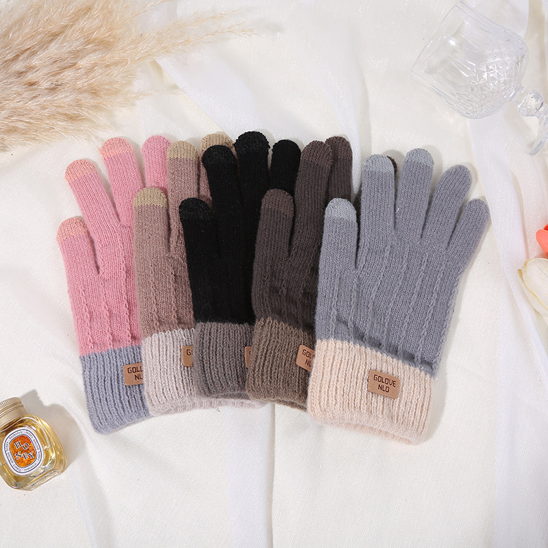 겨울용 보온 장갑, 벨벳 안감, 두꺼운 터치스크린 장갑, 창의적인 방한 사이클링 야외용 캐시미어 다섯 손가락 장갑 제조업체스토어 가기