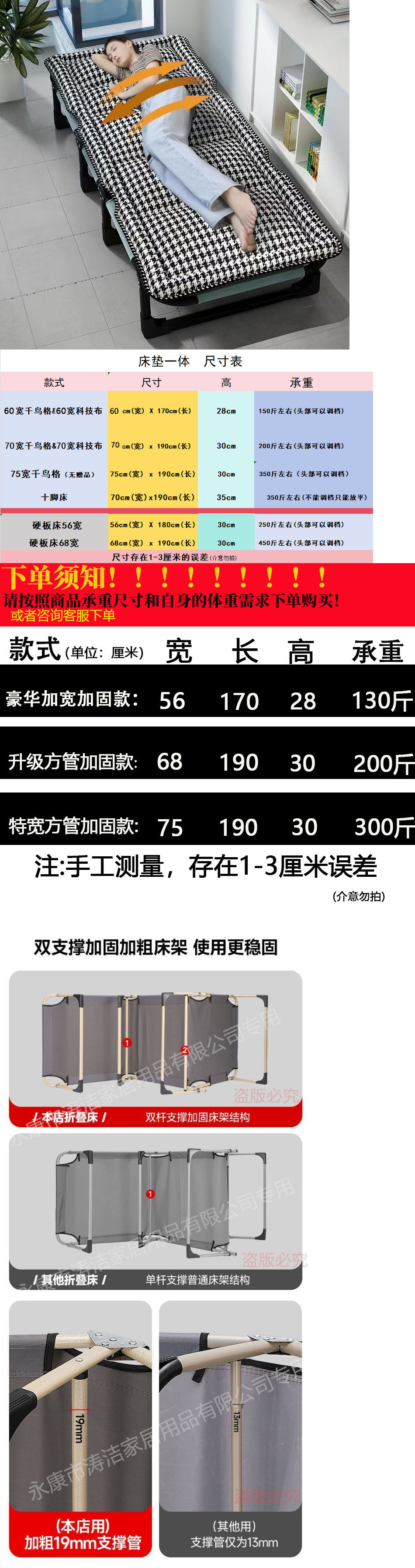 • 특수 확장 75폭 [이중 기둥 지지 침대 프레임] 대형 사이즈 플러스 면