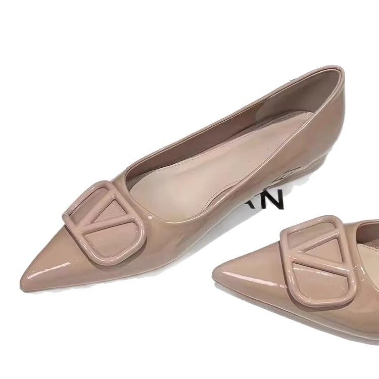 2025 봄 여름 신상 프렌치 스타일 포인티드 토 페이턴트 가죽 플랫 슈즈 여성용 펌프스 내부 높이 증가 누드 컬러 섹시 통근스토어 가기