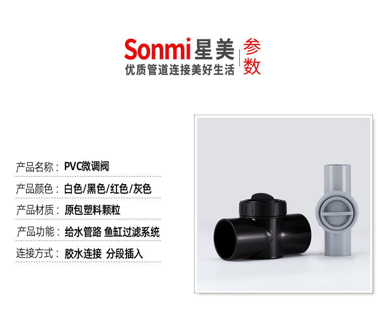PVC 수조 미세 조정 밸브 수도관 상부 및 하부 유량 플라스틱 밸브 조절 밸브 배출구 검정색 25 32 40스토어 가기
