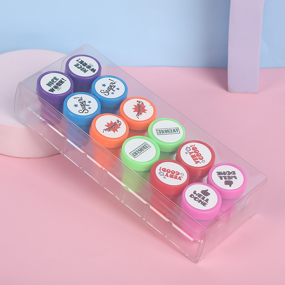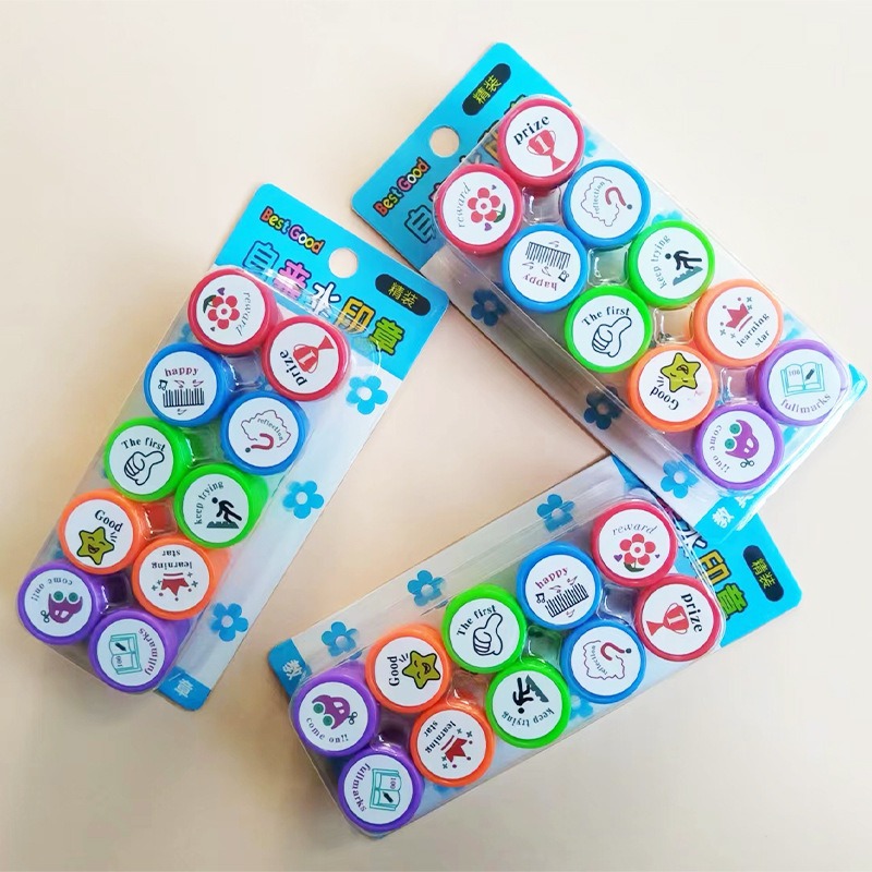 크리 에이 티브 귀여운 만화 스탬프 라운드 빠른 건조 재미있는 어린이 잉크 패드 교사 보상 학생 선물 장난감 스탬프스토어 가기