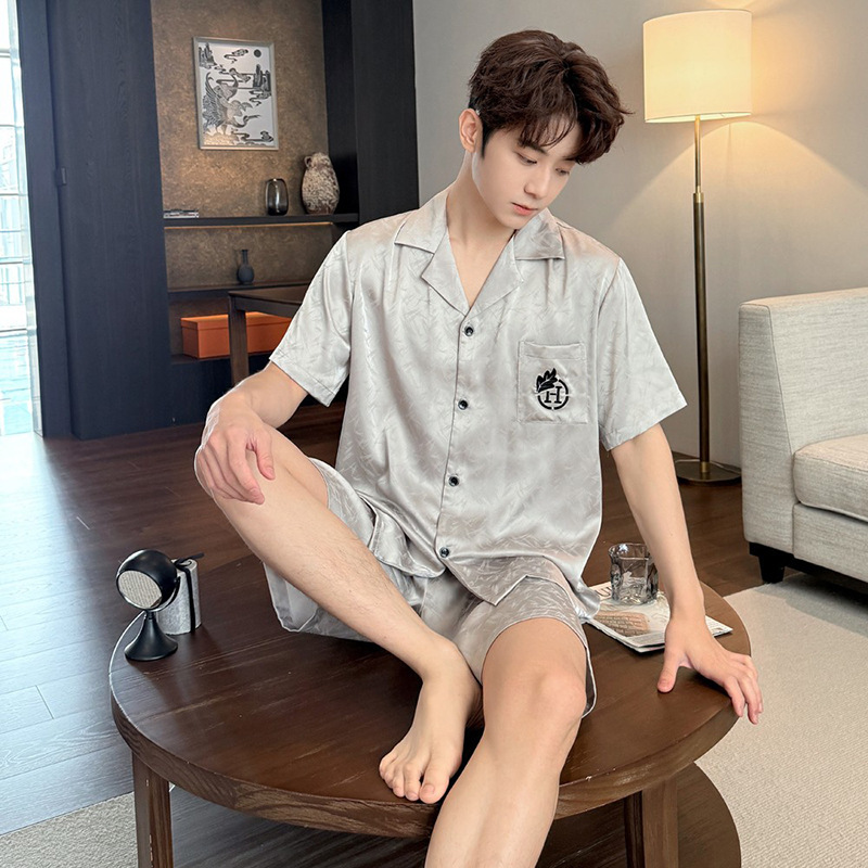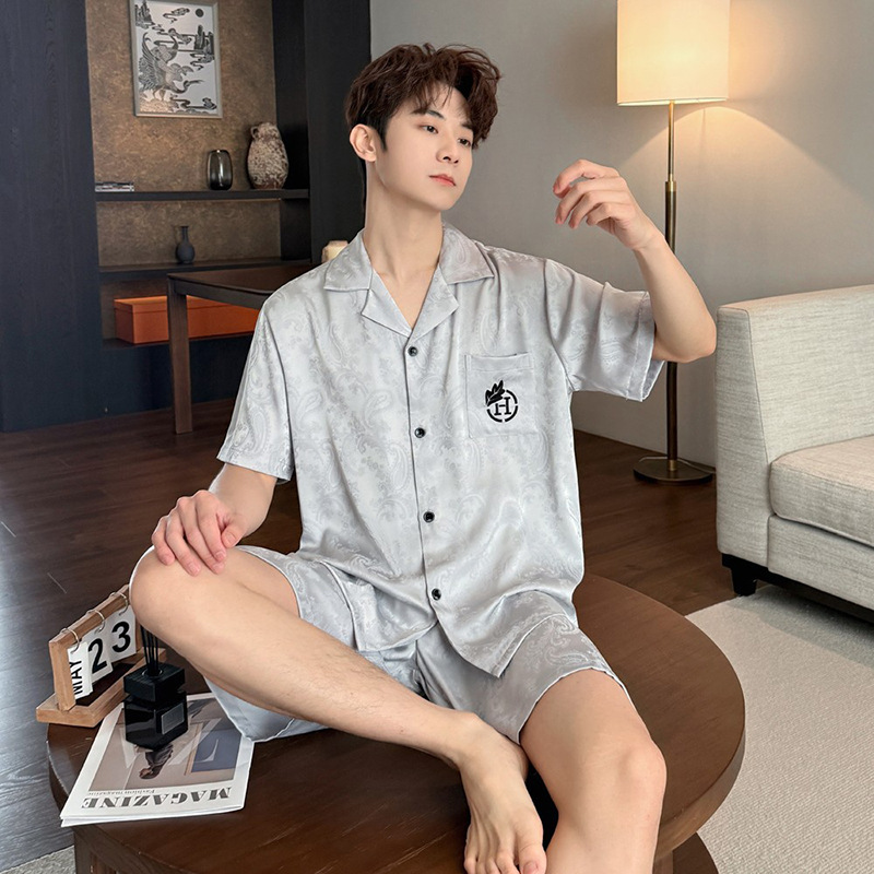 여성을위한 고급 커플 얼음 실크 잠옷 여름 얇은 반팔 반바지 편지 자카드 양복 인터넷 연예인 남성 가정 의류스토어 가기