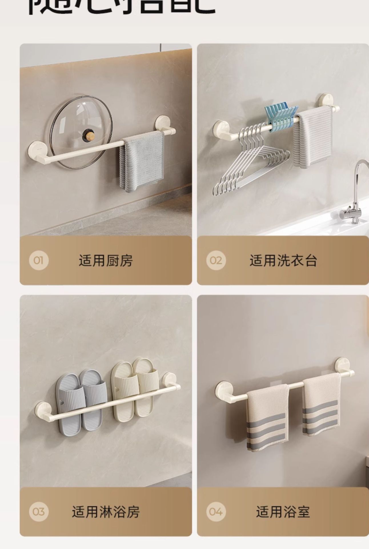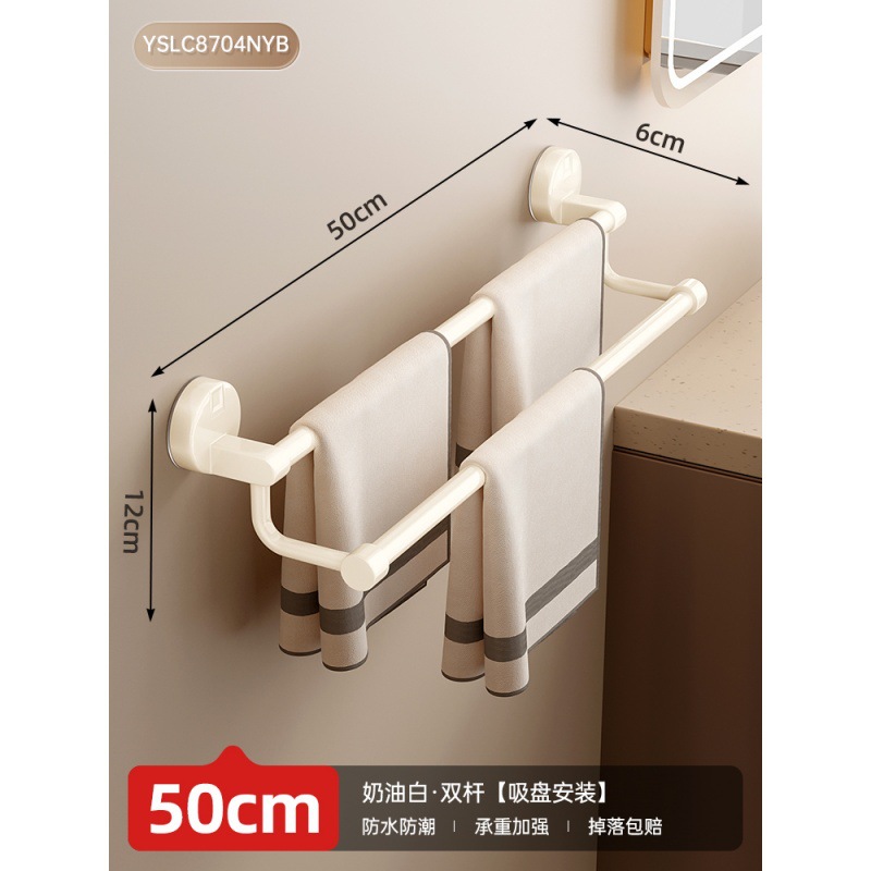 크림 스타일 흡입 컵 수건 걸이 욕실 강력한 펀치없는 욕실 수건 걸이 벽걸이 형 보관 랙 보관 걸이 막대