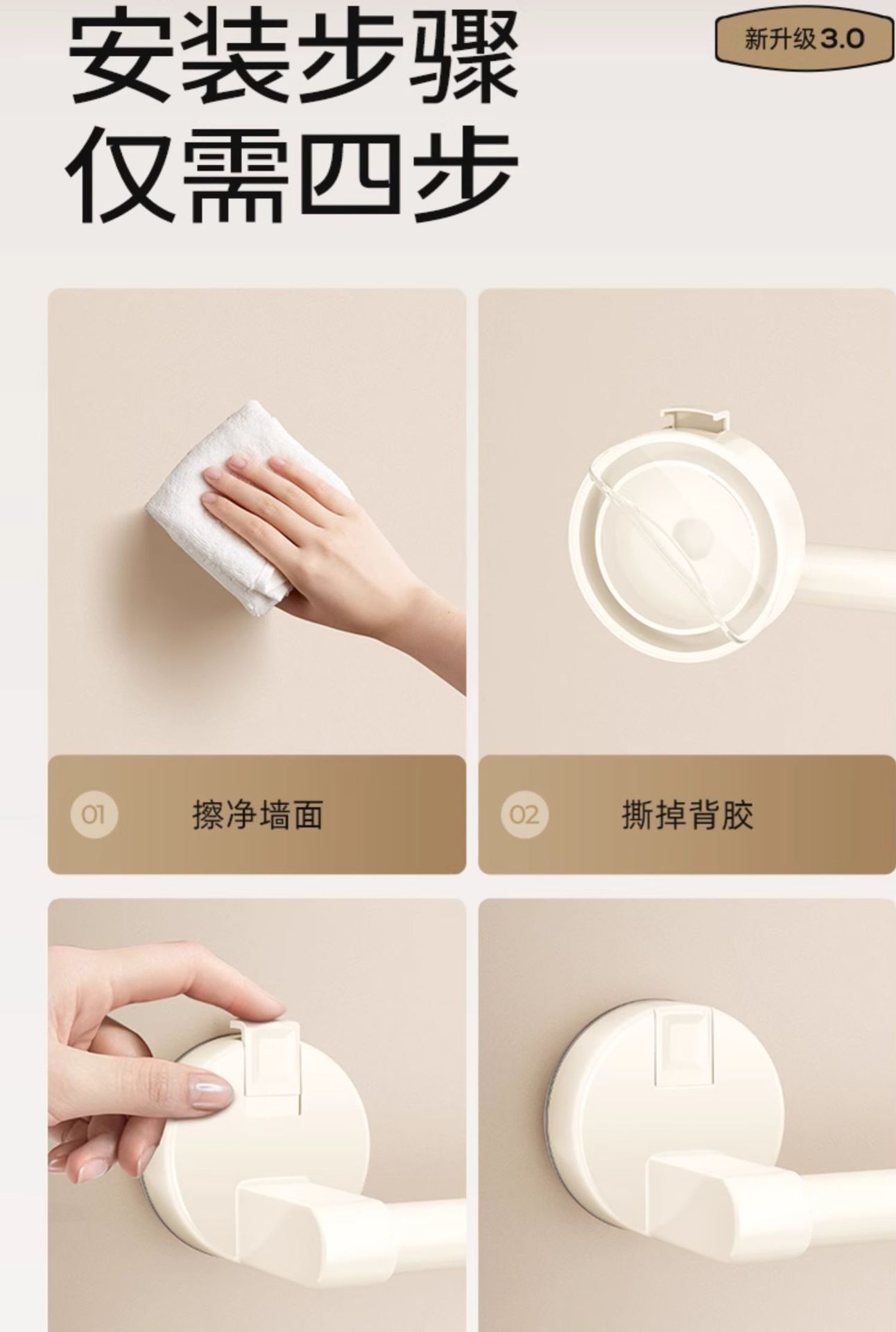 크림 스타일 흡입 컵 수건 걸이 욕실 강력한 펀치없는 욕실 수건 걸이 벽걸이 형 보관 랙 보관 걸이 막대스토어 가기
