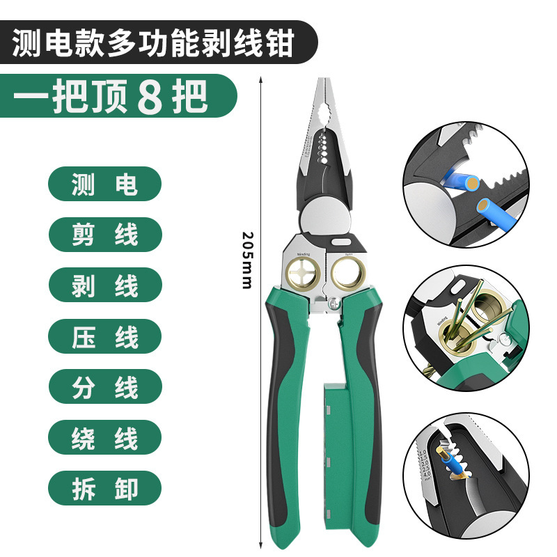 전기 테스트가 가능한 바늘코 펜치 8-in-1 스테인레스 스틸 스트리핑 바늘코 펜치 스트리핑 테스트 펜이 있는 미끄럼 방지 다기능 스트리퍼스토어 가기