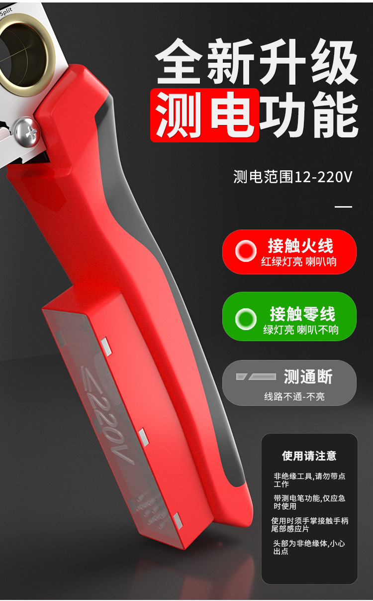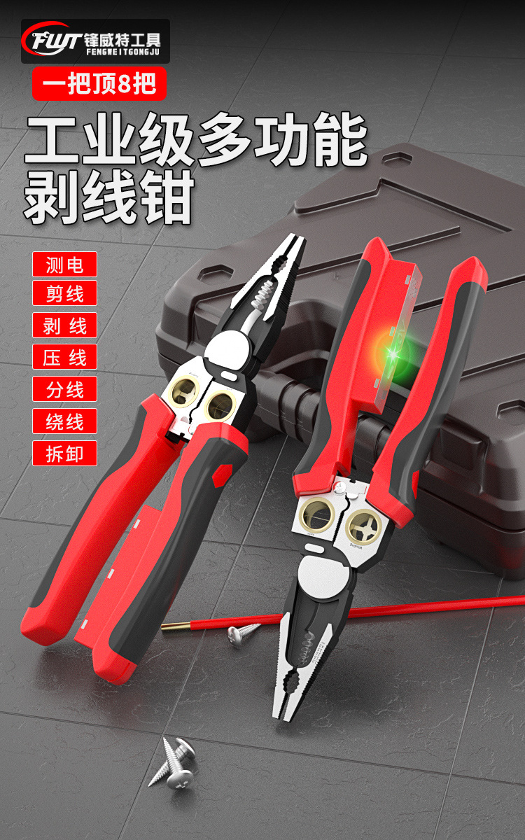 전기 테스트가 가능한 바늘코 펜치 8-in-1 스테인레스 스틸 스트리핑 바늘코 펜치 스트리핑 테스트 펜이 있는 미끄럼 방지 다기능 스트리퍼