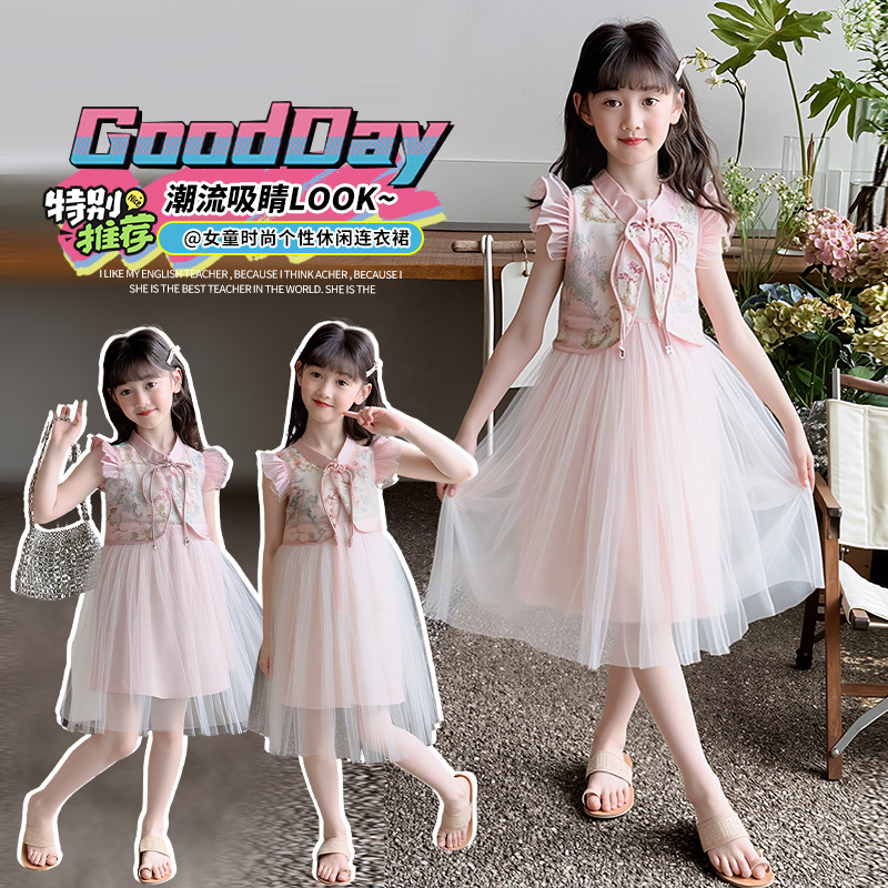 소녀의 원피스 여름 2025 새로운 어린이 서양식 여름 큰 소년 소녀의 새로운 중국 스타일 국가 스타일 청삼 스커트