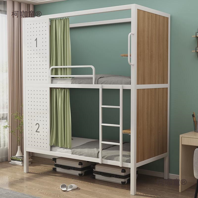 간단한 청소원 이층 침대 철제 프레임 침대 학생 기숙사 아파트 침대 이층 침대 두꺼운 철제 침대 Metabo