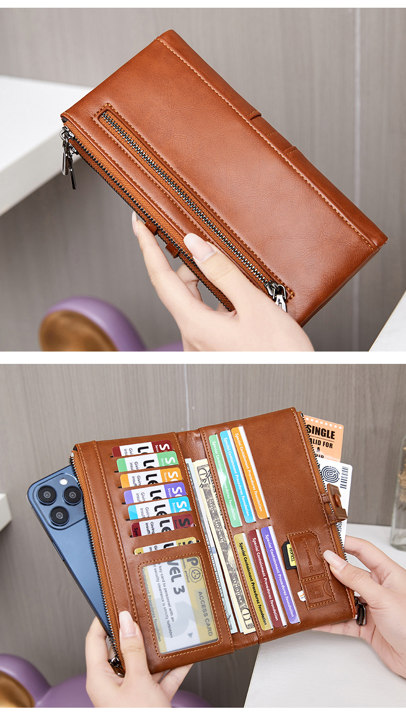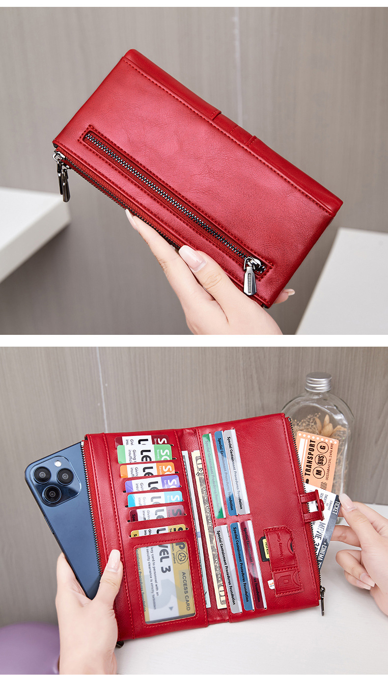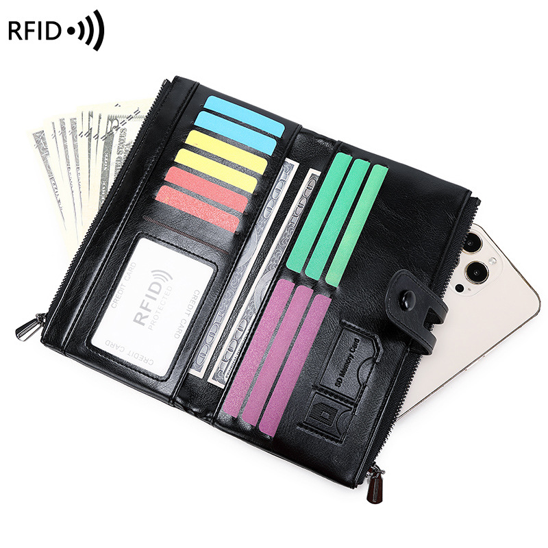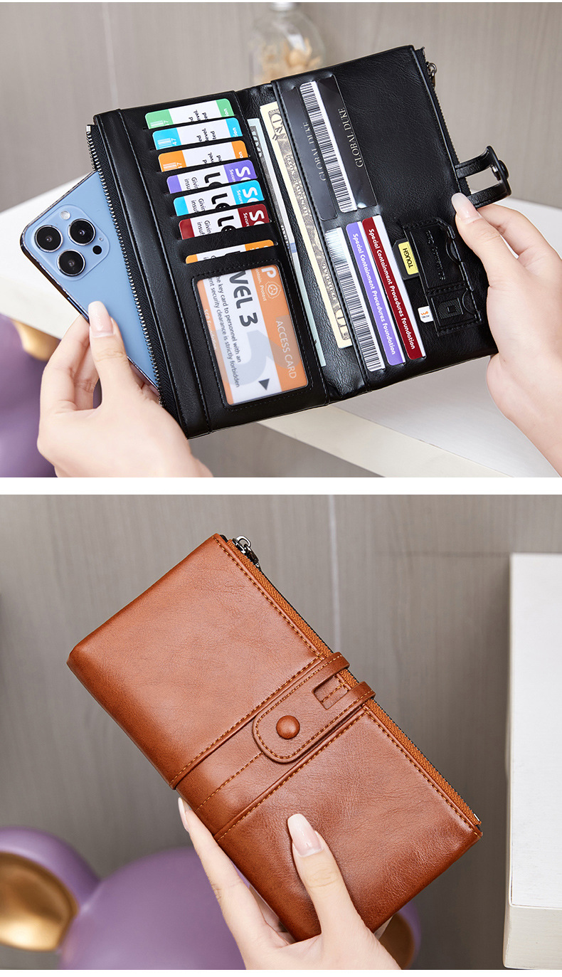 국경 간 수출 지갑 대용량 멀티 카드 버클 코인 지갑 복고풍 간단한 긴 지갑 여성용 RFID 핸드백스토어 가기