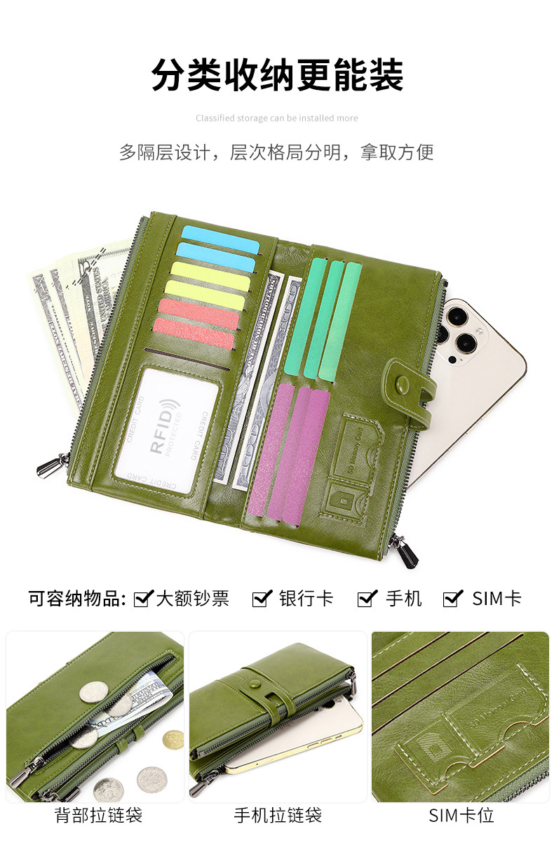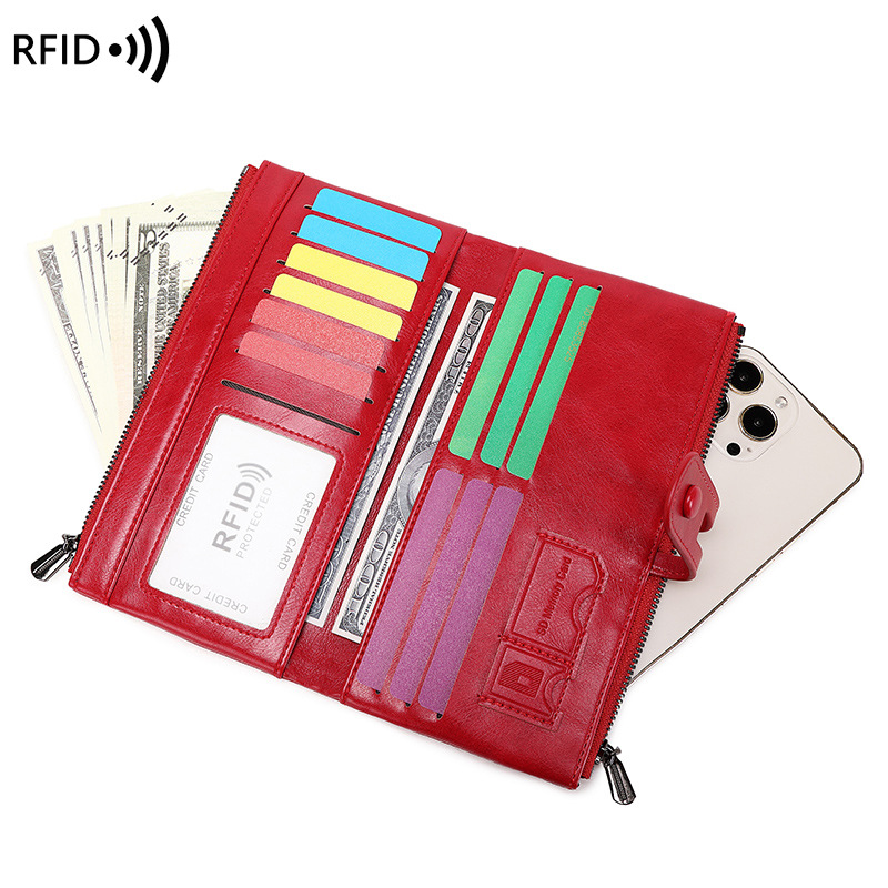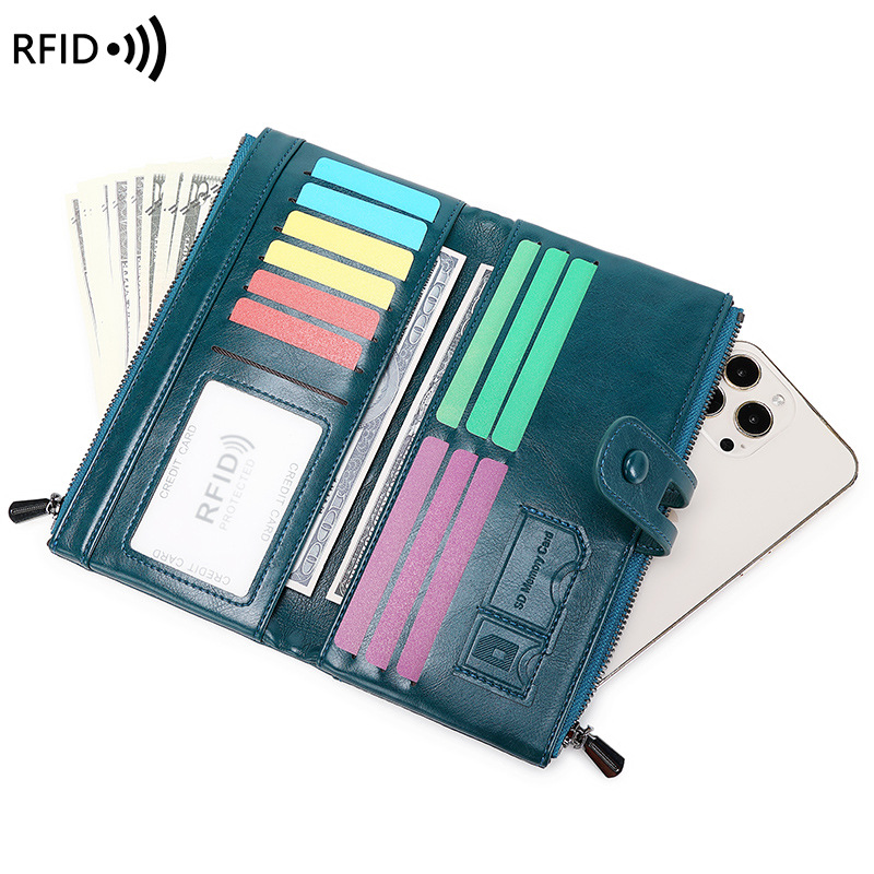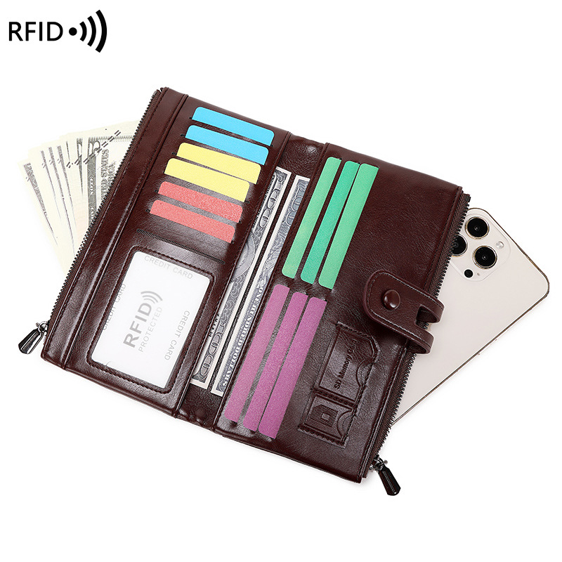 국경 간 수출 지갑 대용량 멀티 카드 버클 코인 지갑 복고풍 간단한 긴 지갑 여성용 RFID 핸드백스토어 가기
