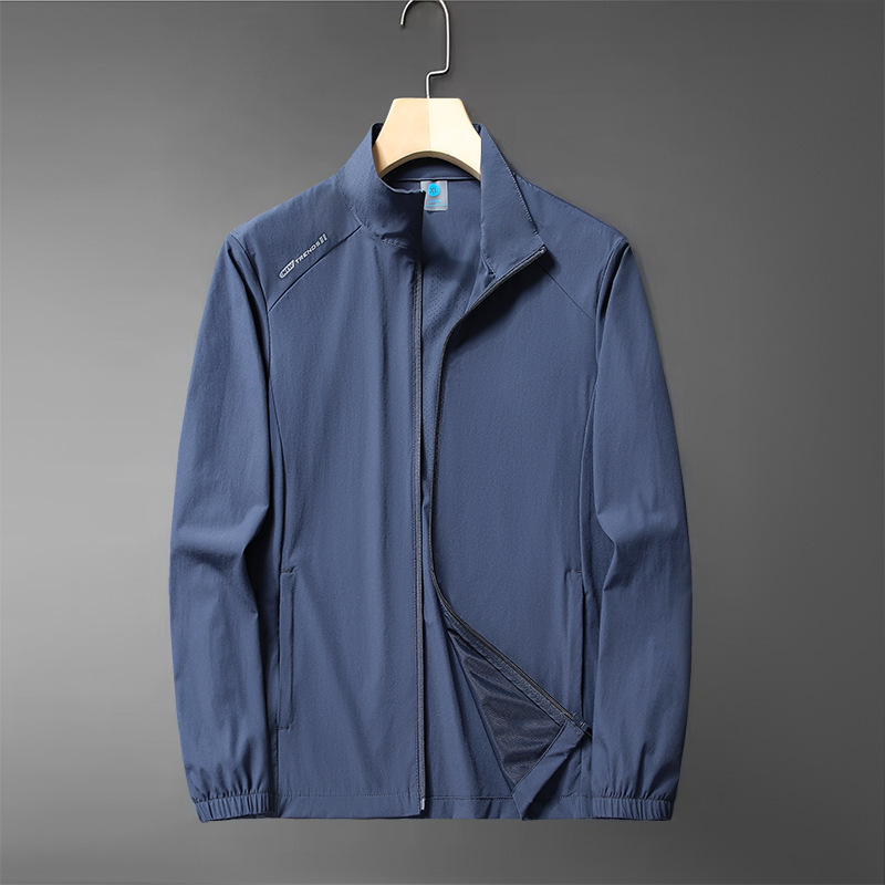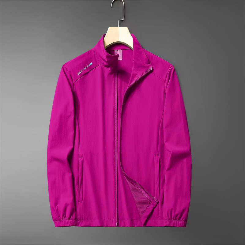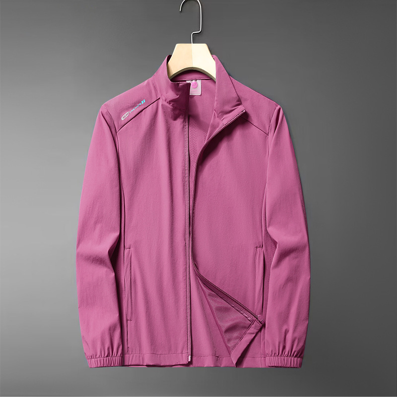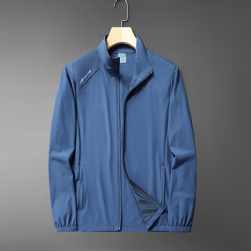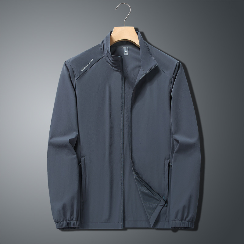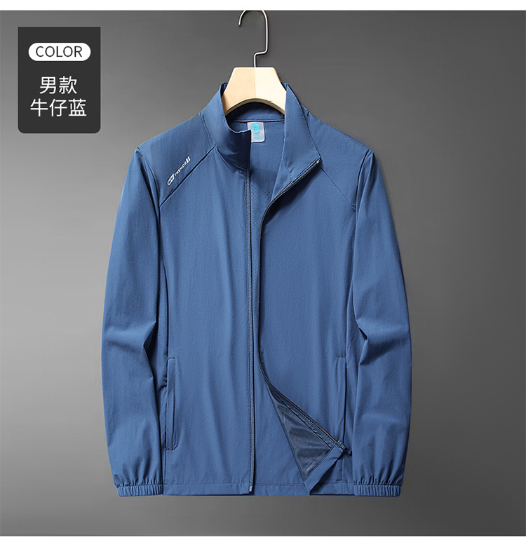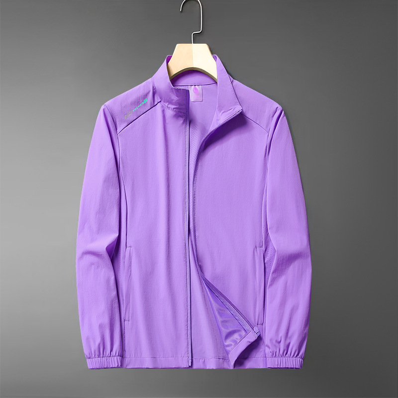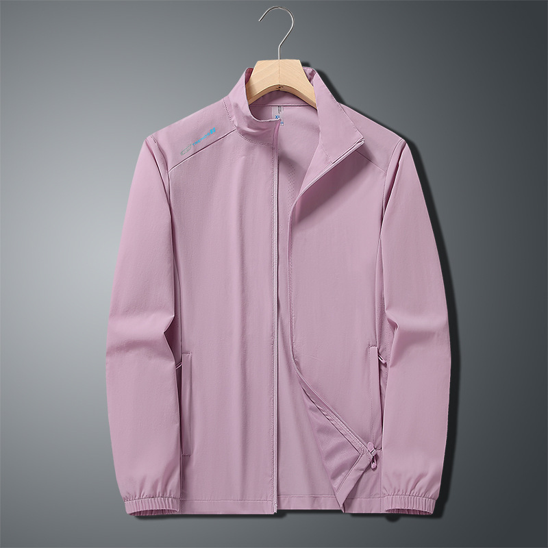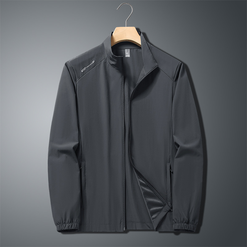 무료 배송 스탠드 칼라 자외선 차단 의류 여름 새로운 얼음 실크 얼음 느낌 가볍고 통기성이 뛰어난 얇은 코트 야외 등산 자외선 차단