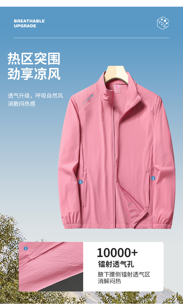 무료 배송 스탠드 칼라 자외선 차단 의류 여름 새로운 얼음 실크 얼음 느낌 가볍고 통기성이 뛰어난 얇은 코트 야외 등산 자외선 차단스토어 가기