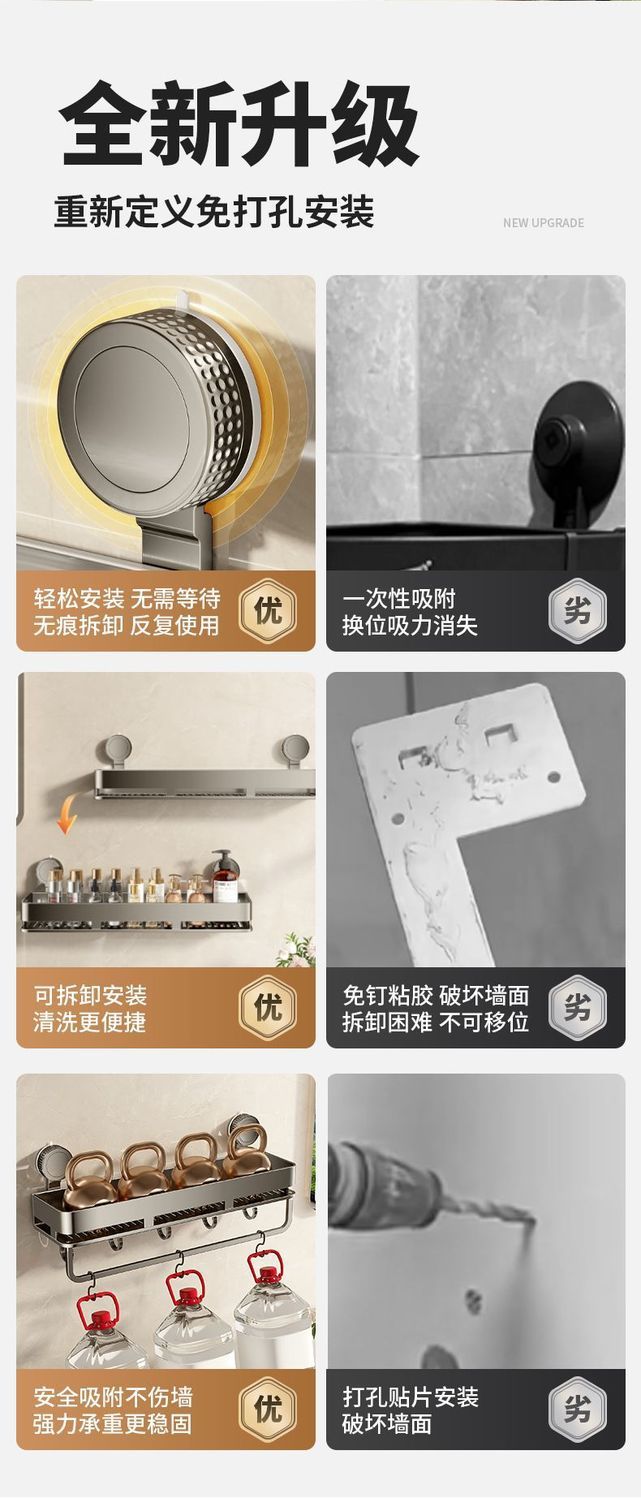 • 막대와 후크가 있는 흡입 컵 더블 레이어 60cm 건 그레이