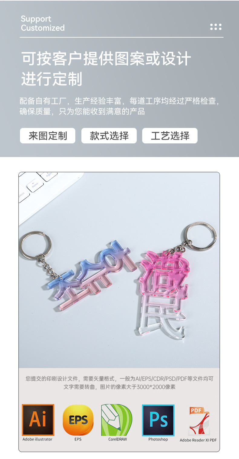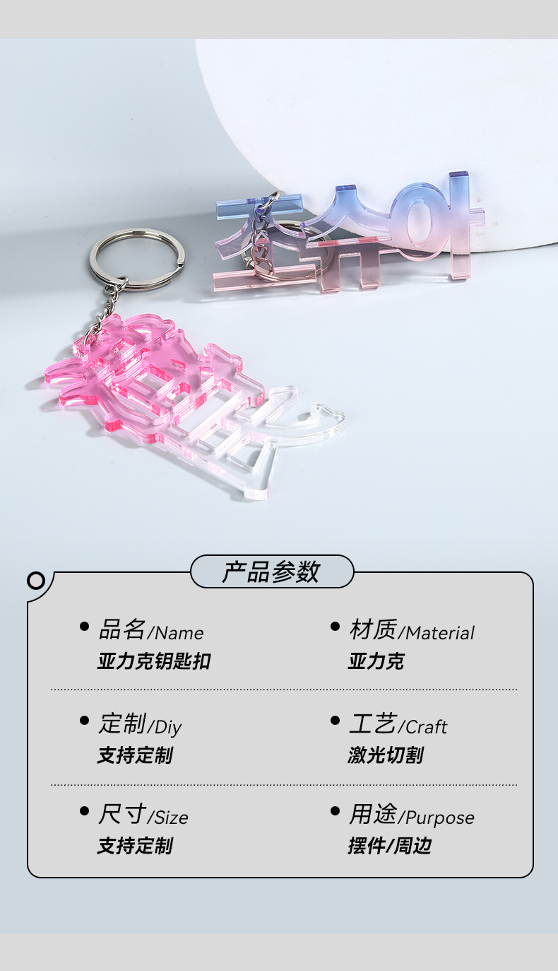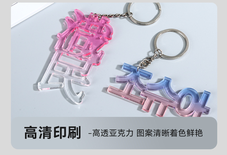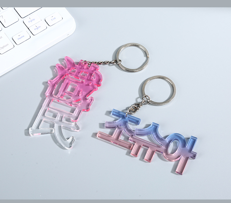 아크릴 키 체인 사용자 정의 그라디언트 고르지 않은 텍스트 펜던트 새로운 작은 빨간 책 컬러 창 배낭 작은 매달려 단일 문자스토어 가기
