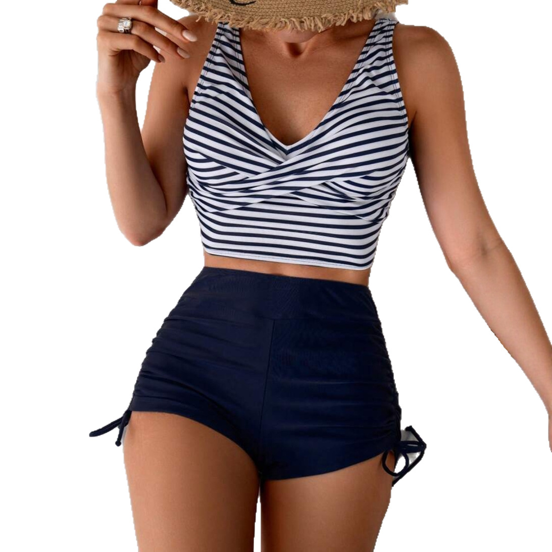 2025 신상 유럽 및 미국 스타일 속건 타이트 크로스백 섹시 하이웨이스트 드로스트링 사각팬티 레이싱 스플릿 수영복 여성용스토어 가기