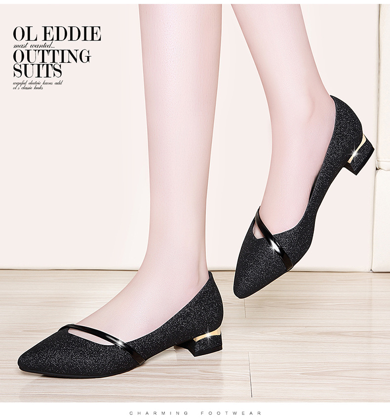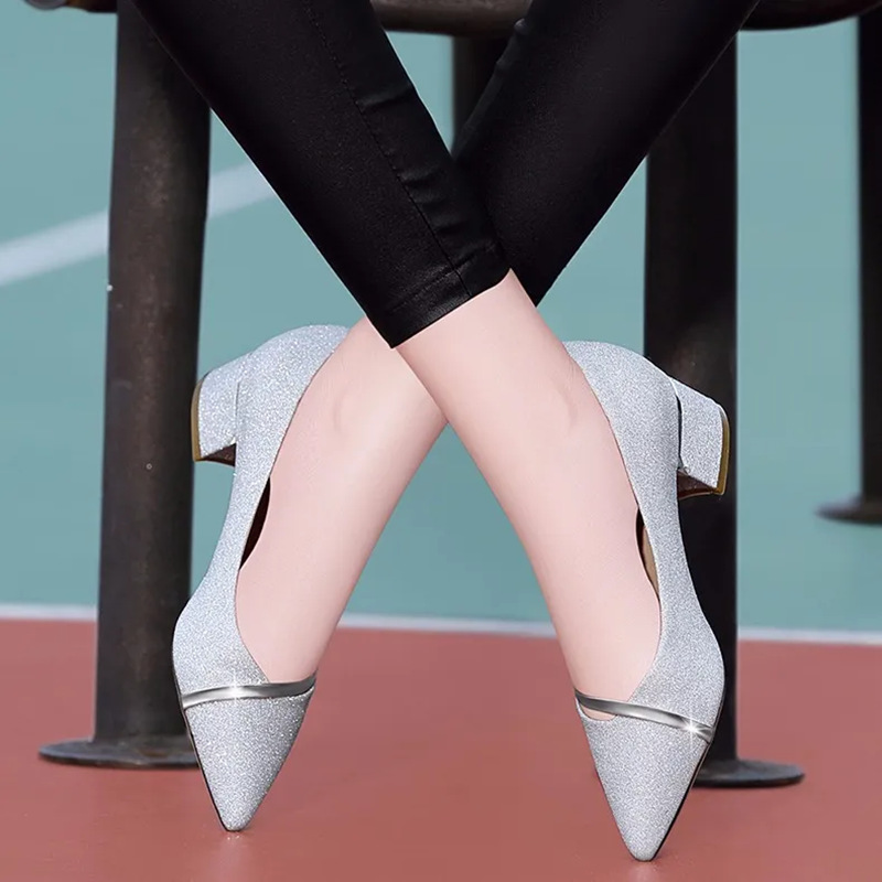 유럽과 미국의 패셔너블한 두꺼운 굽의 뾰족한 앞코 얕은 가죽 신발, 통근용 다용도 로퍼, 2025년 여름 신상 신발 재고 있음스토어 가기
