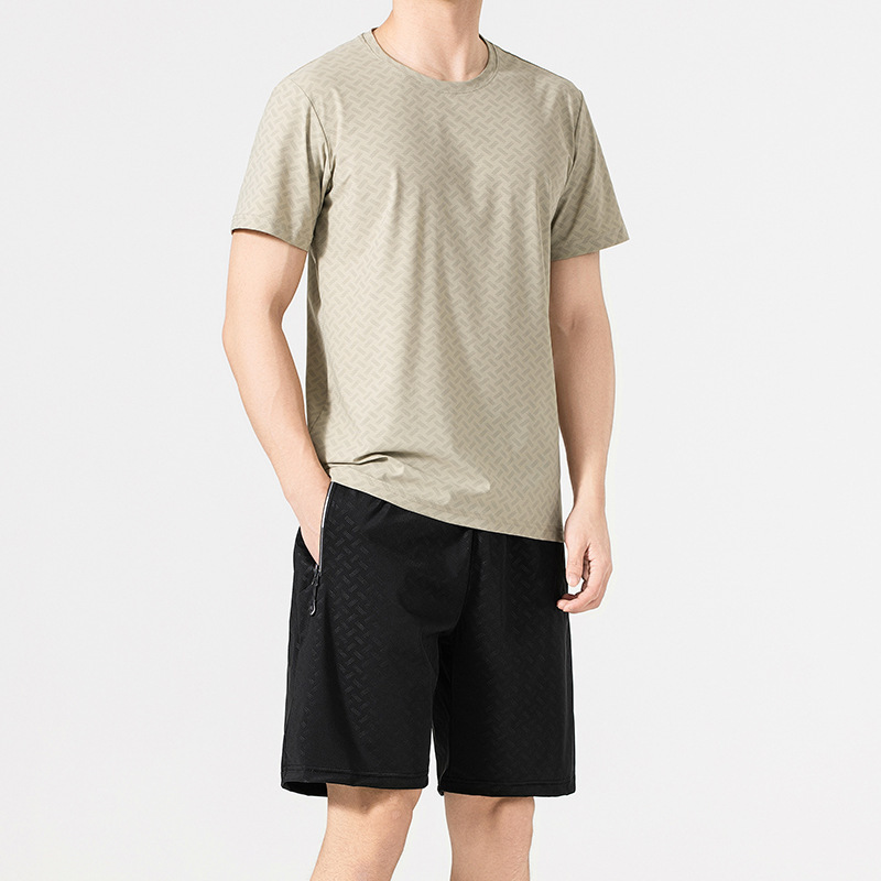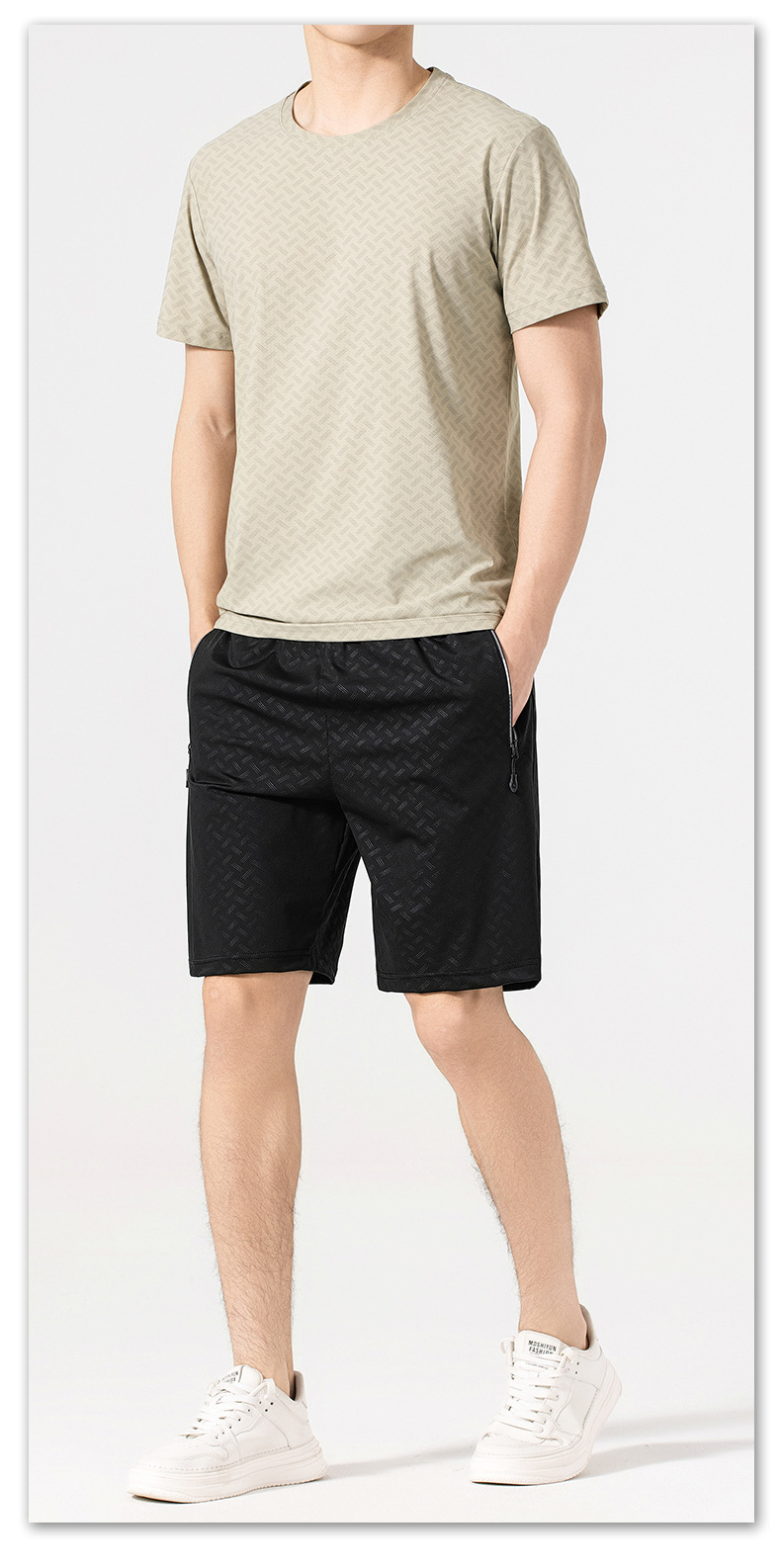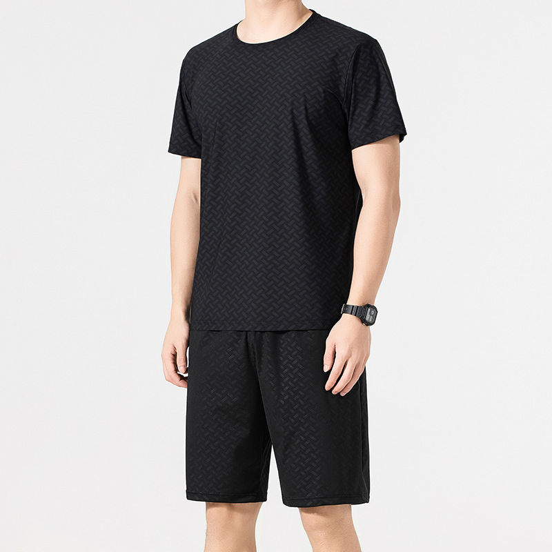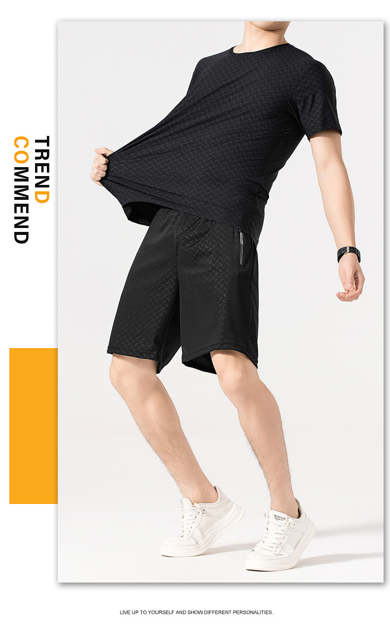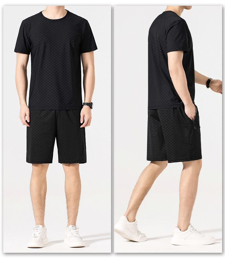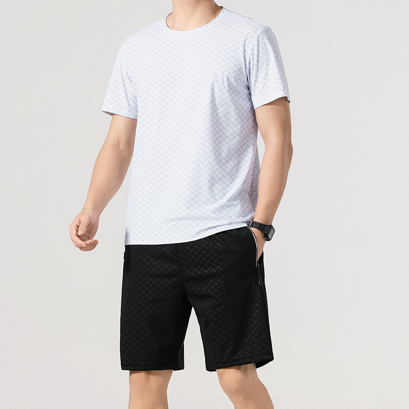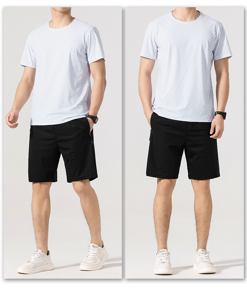 무료 배송 아이스 실크 캐주얼 정장 남성 2025 여름 트렌디 프린트 반팔 티셔츠 반팔 반바지 스포츠 2