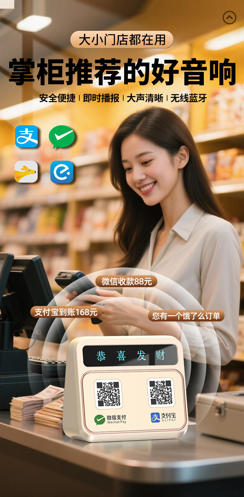 WeChat 결제 알림 스피커 QR 코드 결제 코드 음성 방송기 Alipay 무선 Bluetooth 결제 스피커스토어 가기