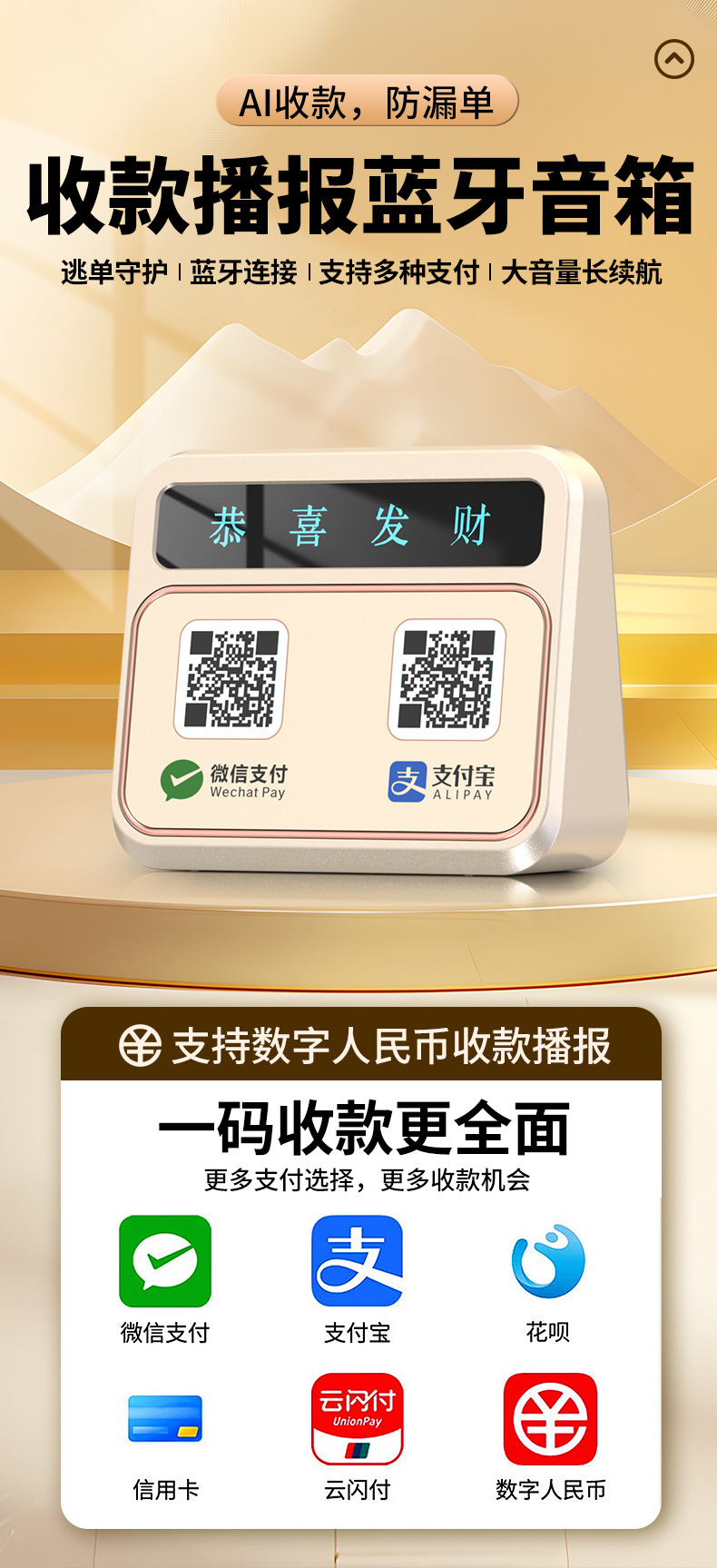 WeChat 결제 알림 스피커 QR 코드 결제 코드 음성 방송기 Alipay 무선 Bluetooth 결제 스피커