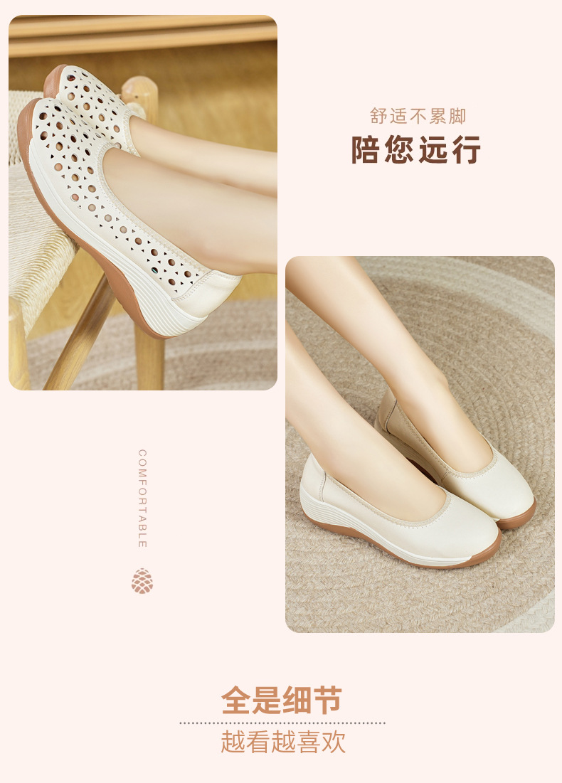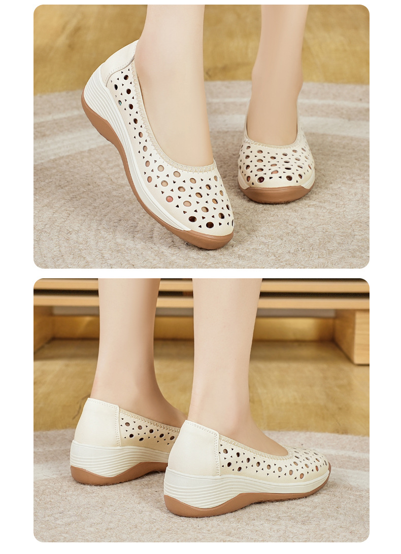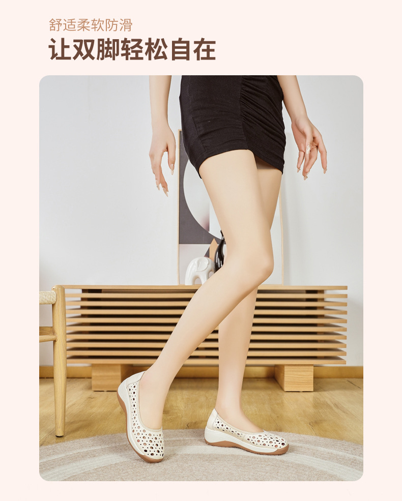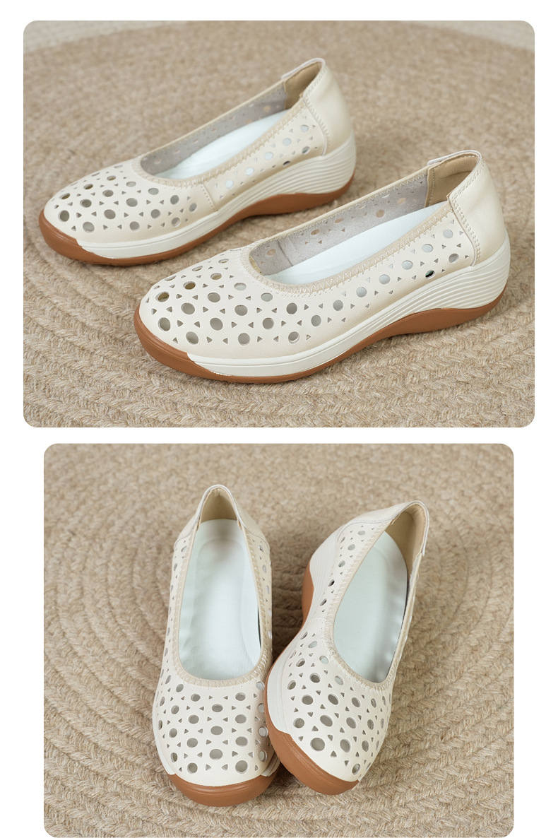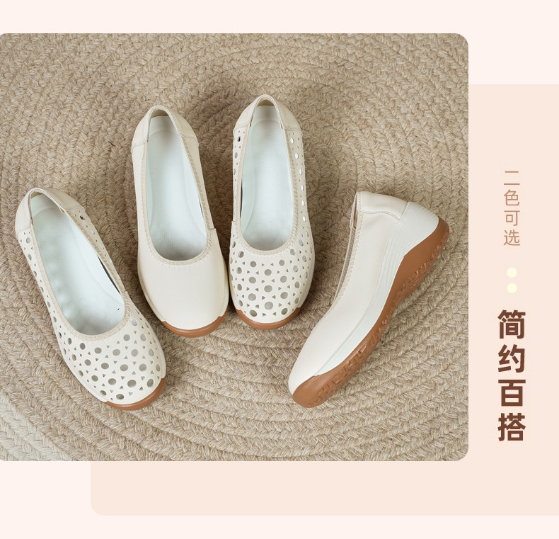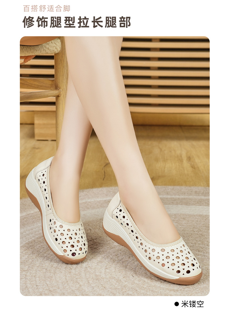 2025 여름 스타일 여성용 중공 게으른 신발, 부드러운 밑창 메쉬 슬립온, 통기성이 좋은 작은 가죽 신발, 여름 엄마 신발스토어 가기