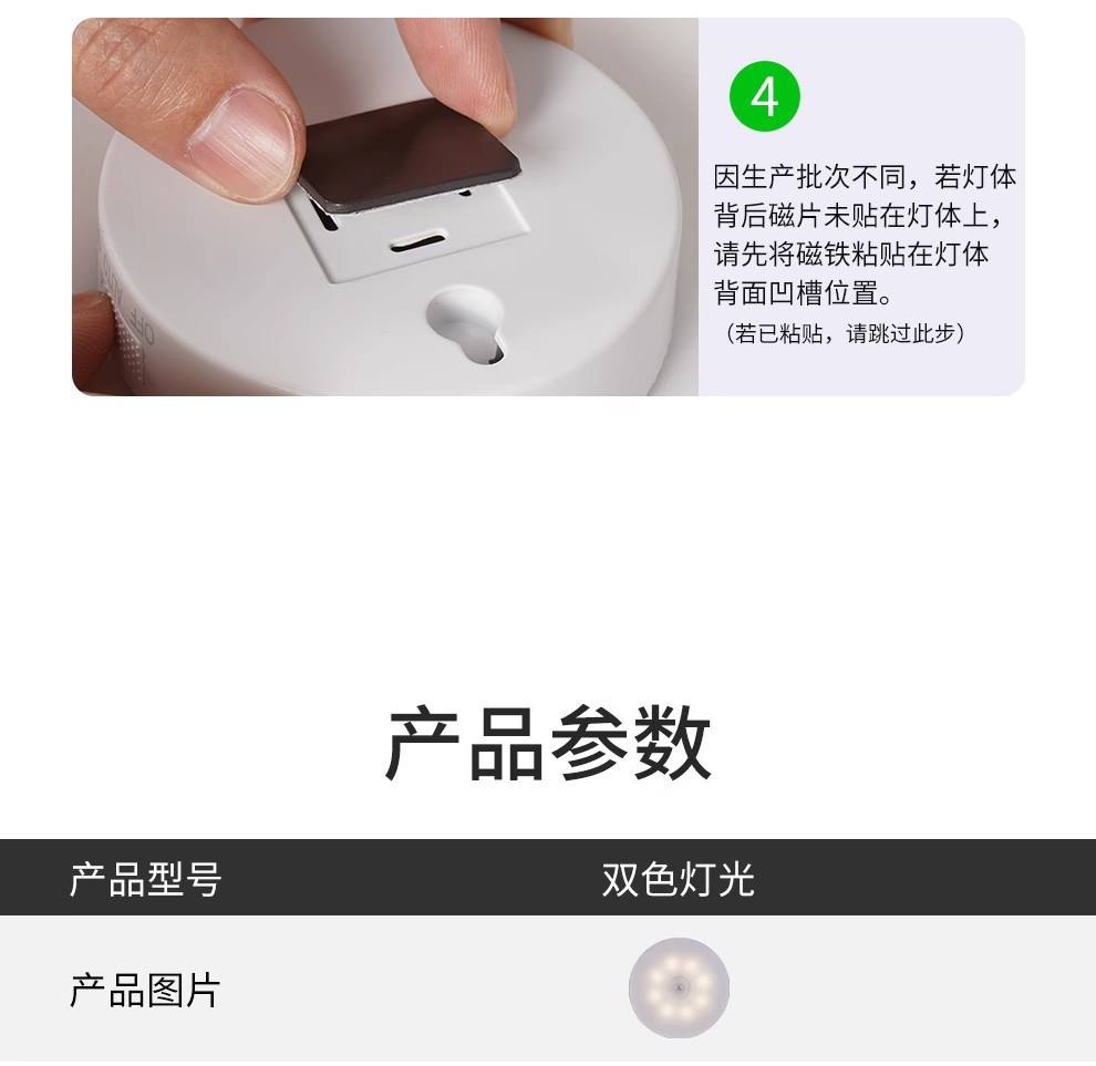 • 어두운 자동 감지 모델 - 백색광/따뜻한 조명 + 버튼 스위치 - 상시 켜짐 모드 없음