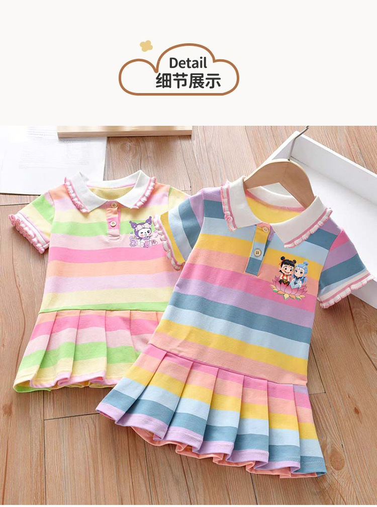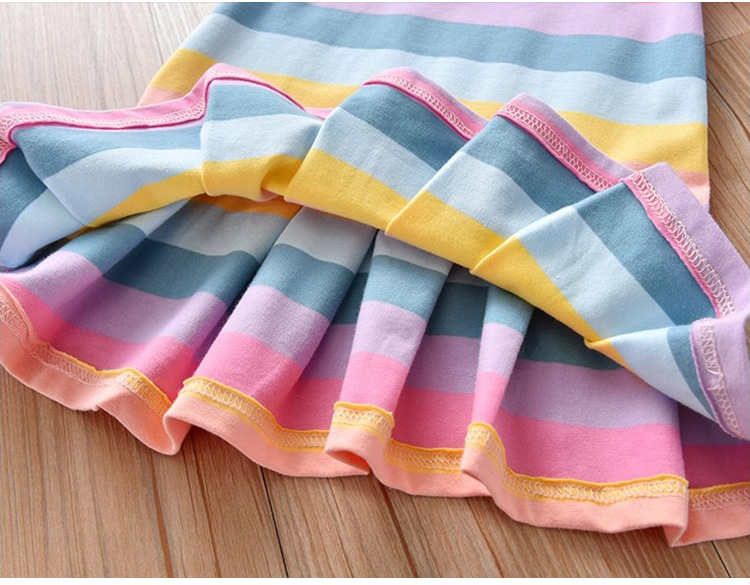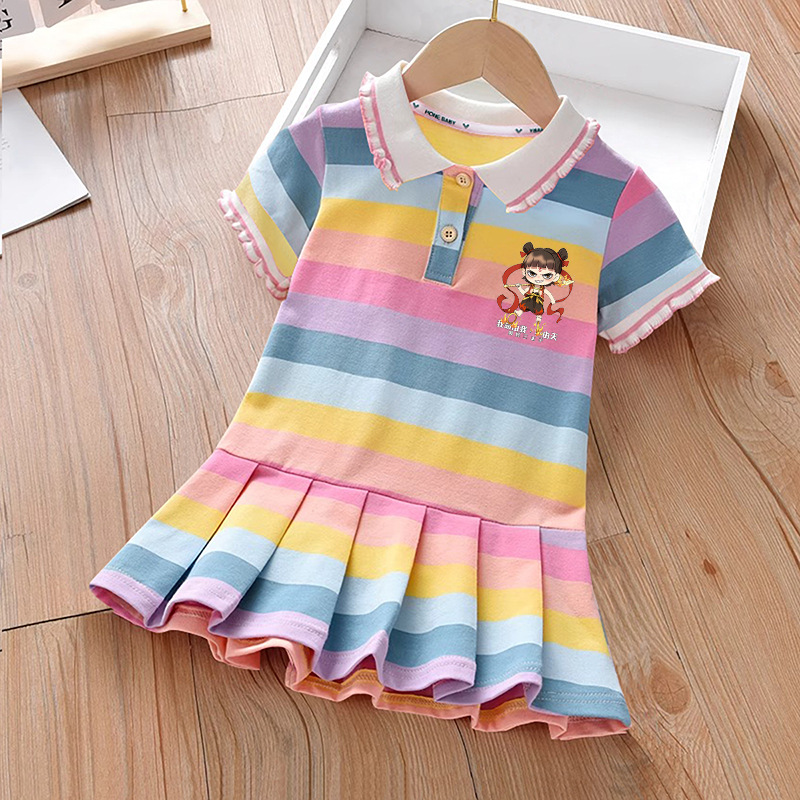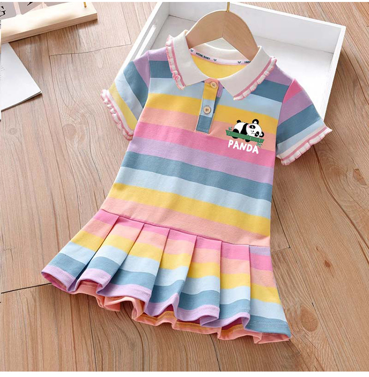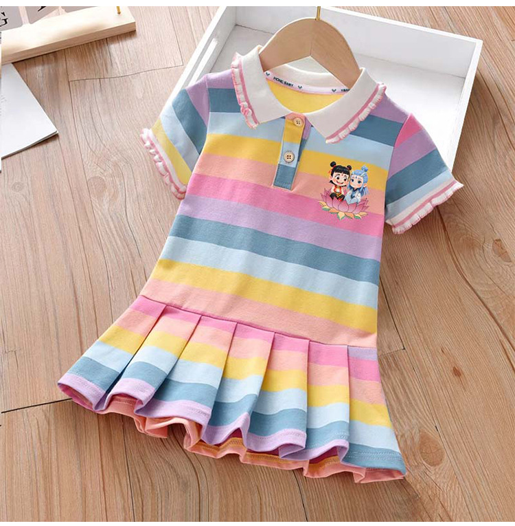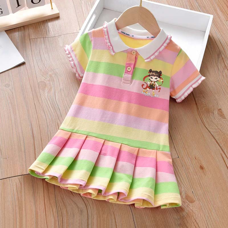 다채로운 줄무늬 소녀 만화 드레스 2025 여름 새로운 얇은 통기성 중대형 어린이 드레스 스포츠 편안한 짧은 치마스토어 가기