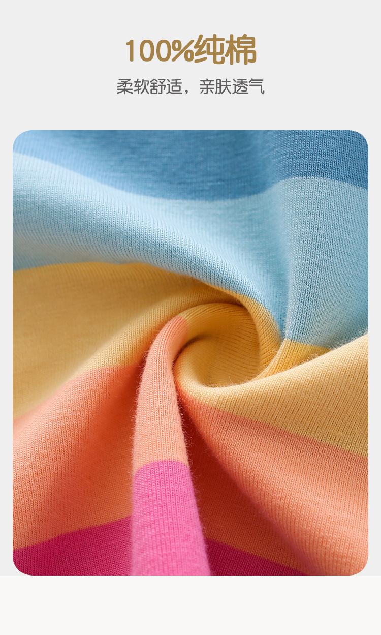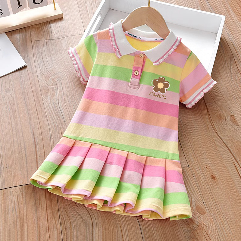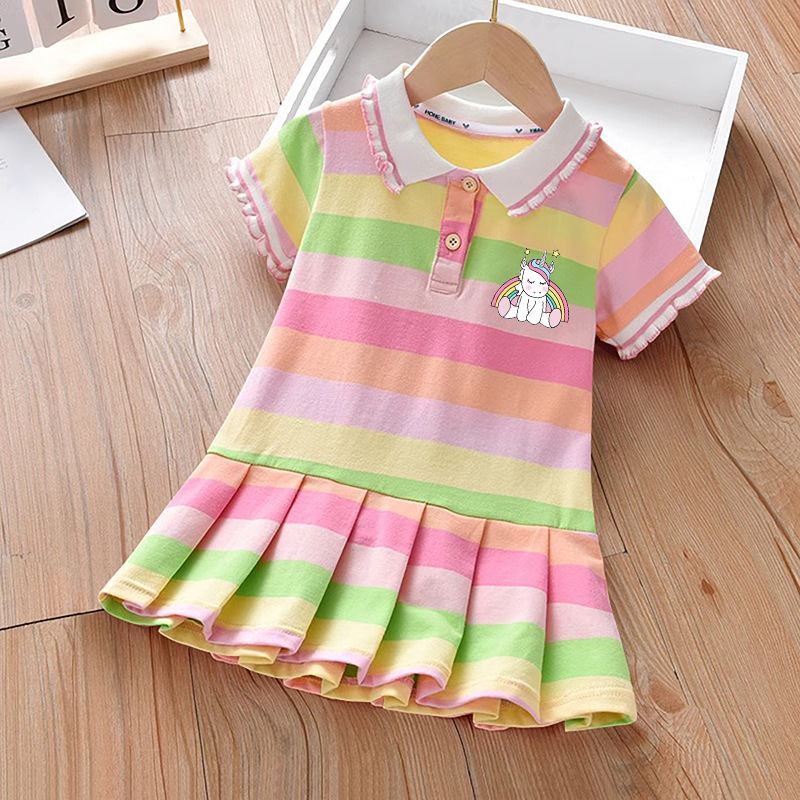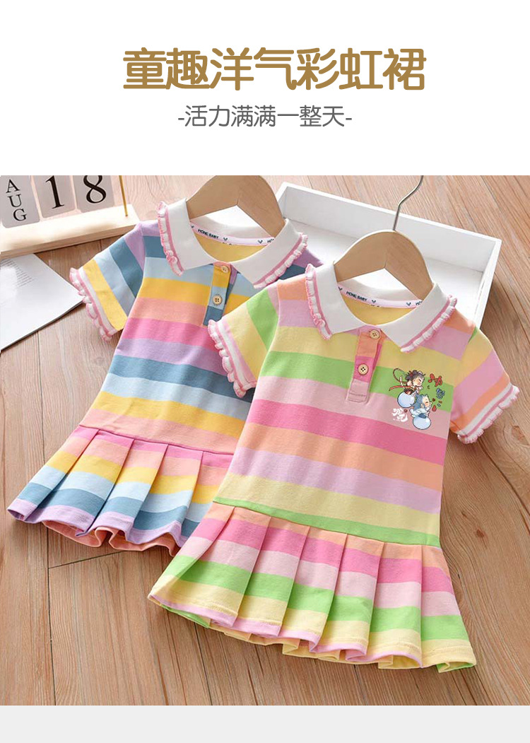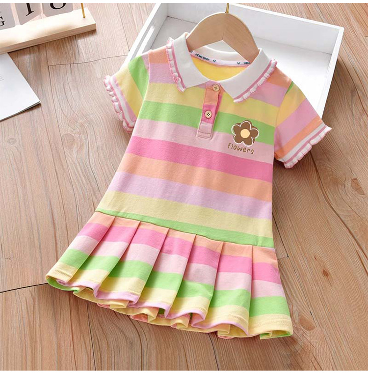 다채로운 줄무늬 소녀 만화 드레스 2025 여름 새로운 얇은 통기성 중대형 어린이 드레스 스포츠 편안한 짧은 치마스토어 가기
